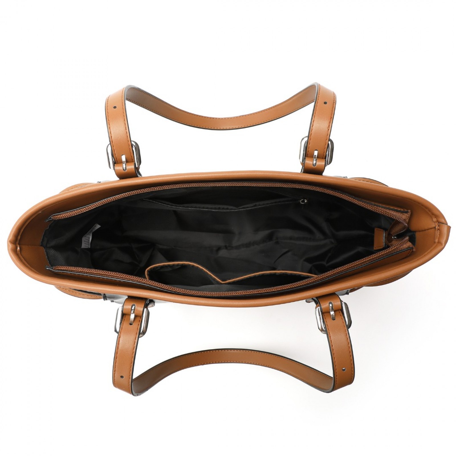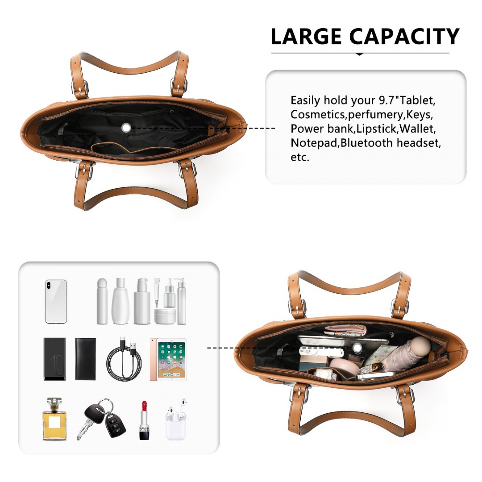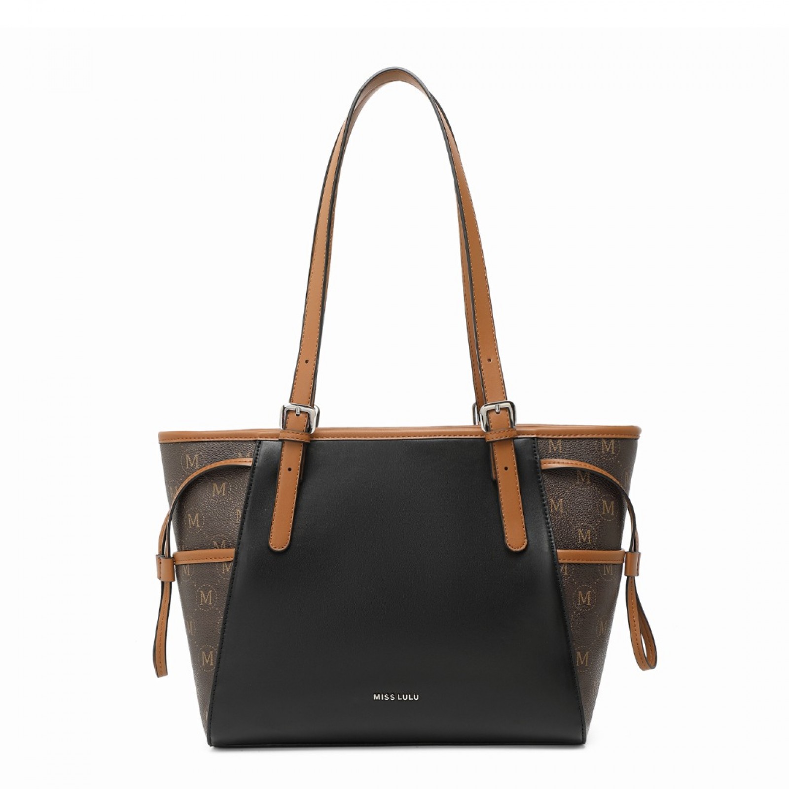 LG2322 - Miss Lulu Elegant Tote Bag With Monogram Pattern - Black And Brown