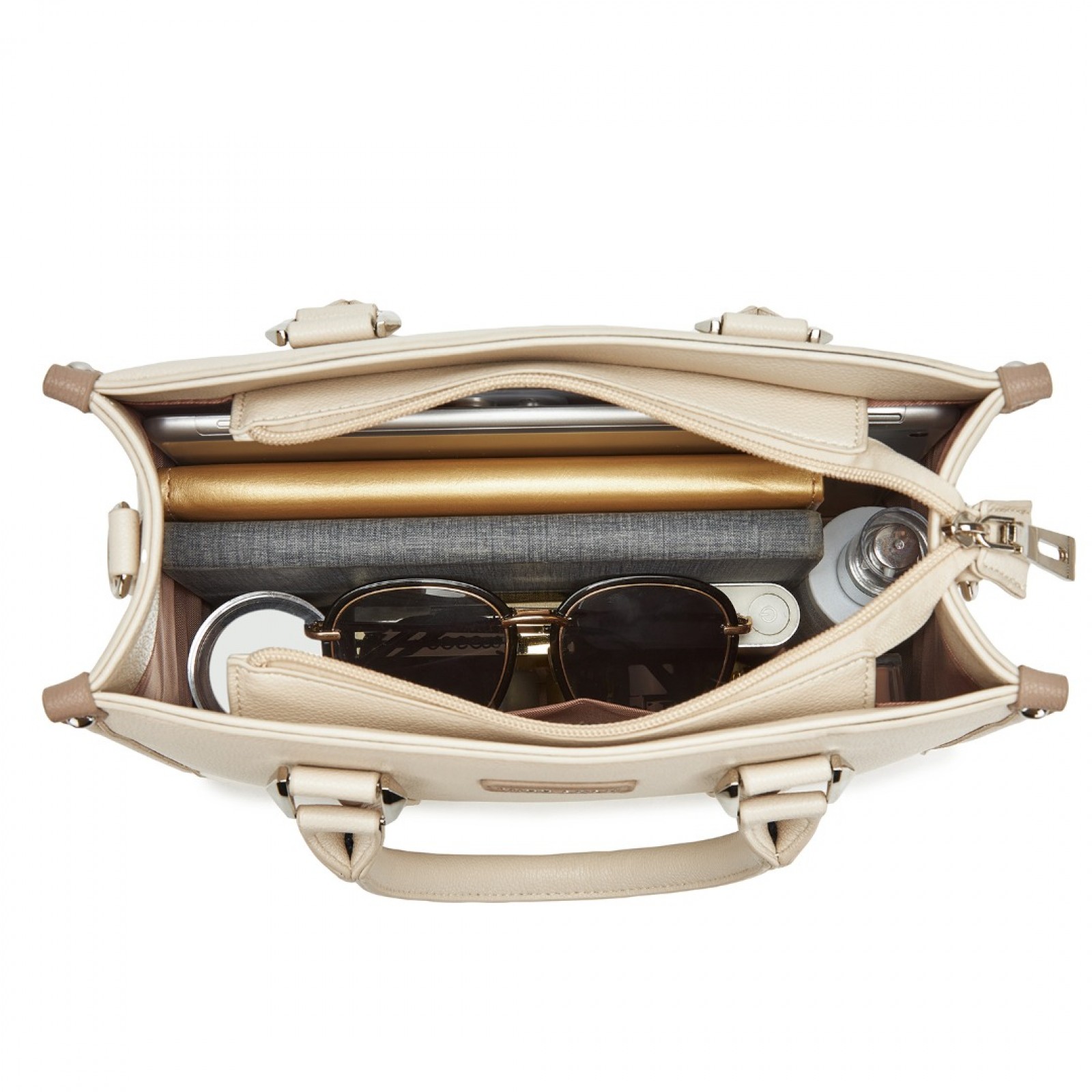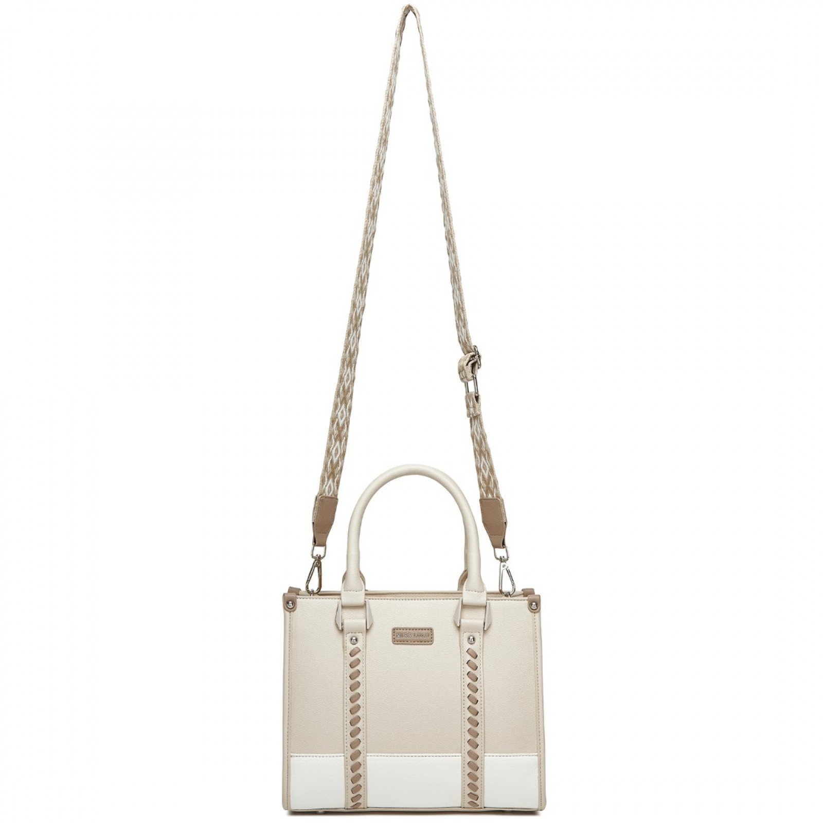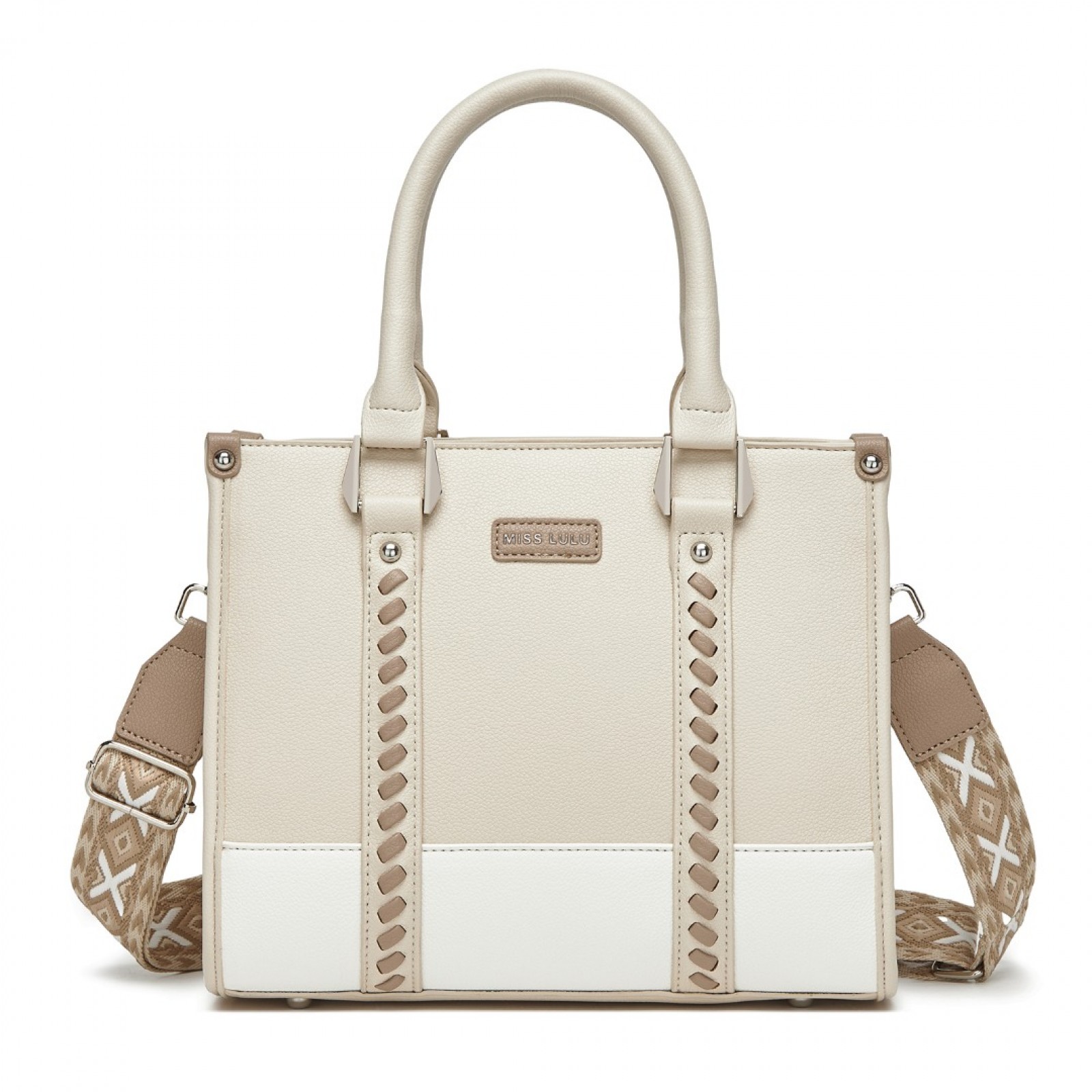 HBM2462 - Miss Lulu PU Leather Graceful Spacious Tote Bag with Woven Trim and Detachable Ethnic Strap - Beige