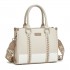 HBM2462 - Miss Lulu PU Leather Graceful Spacious Tote Bag with Woven Trim and Detachable Ethnic Strap - Khaki