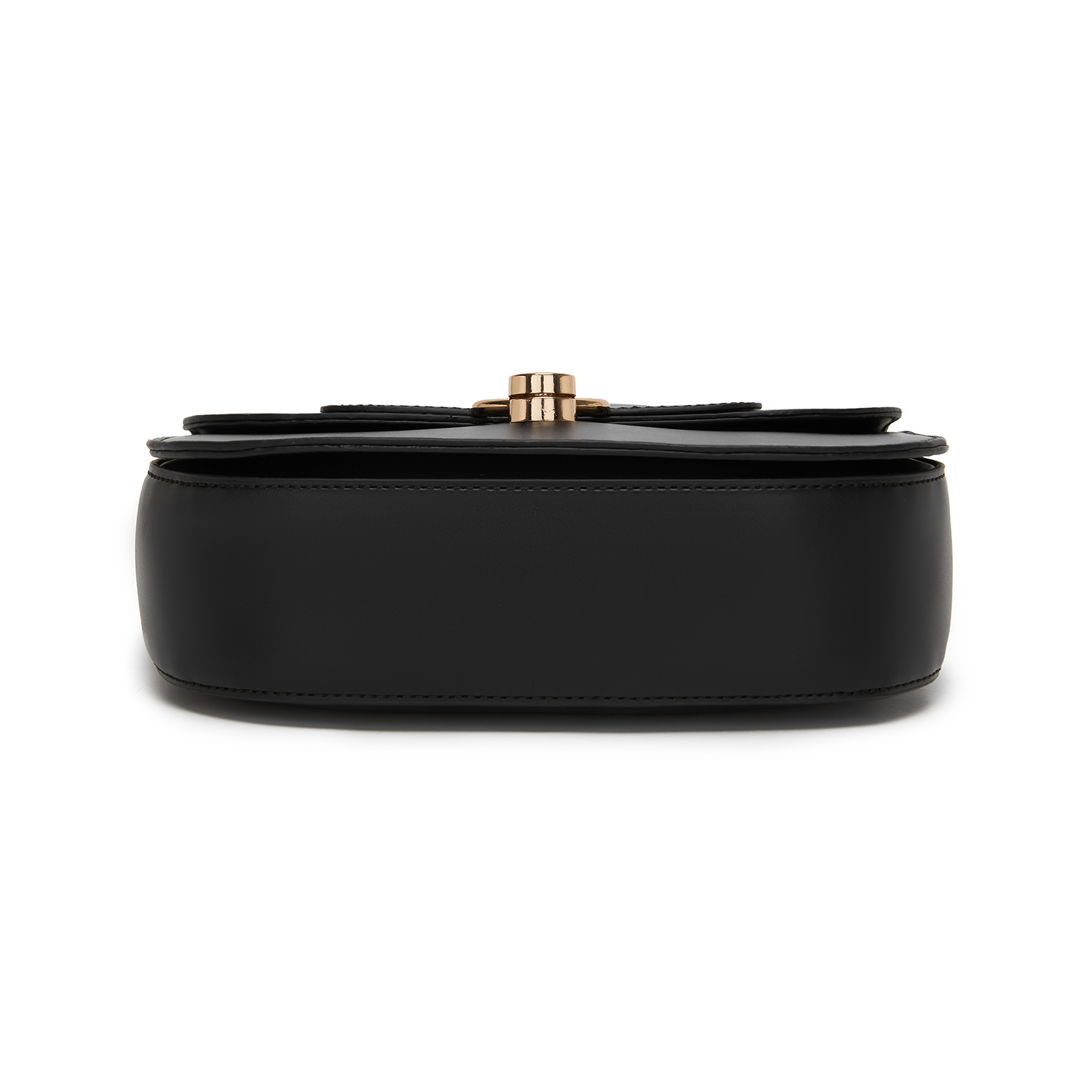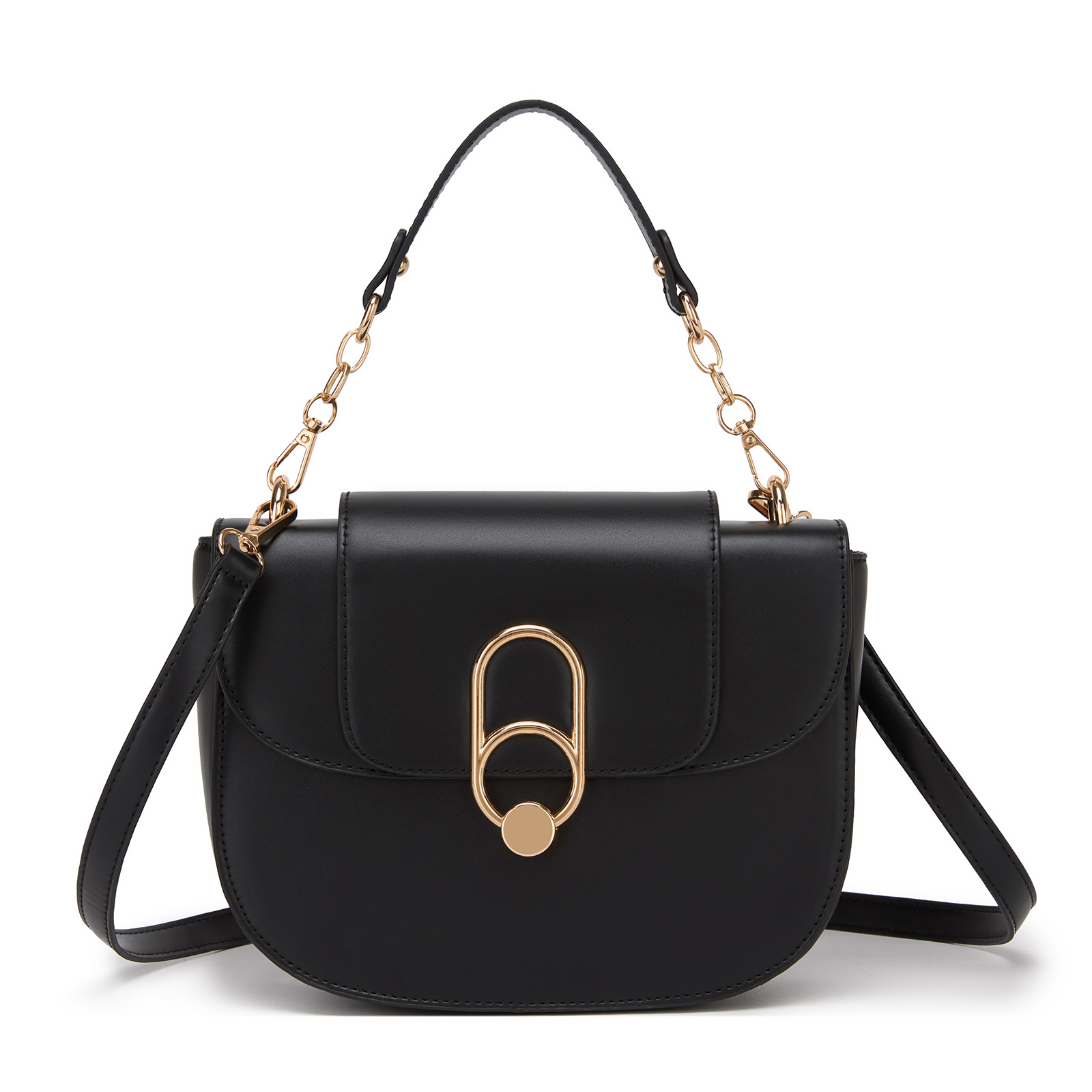 HBM2514 - Miss Lulu Stylish PU Saddle Bag with Chain-Accent Top Handle & Adjustable Strap - Black
