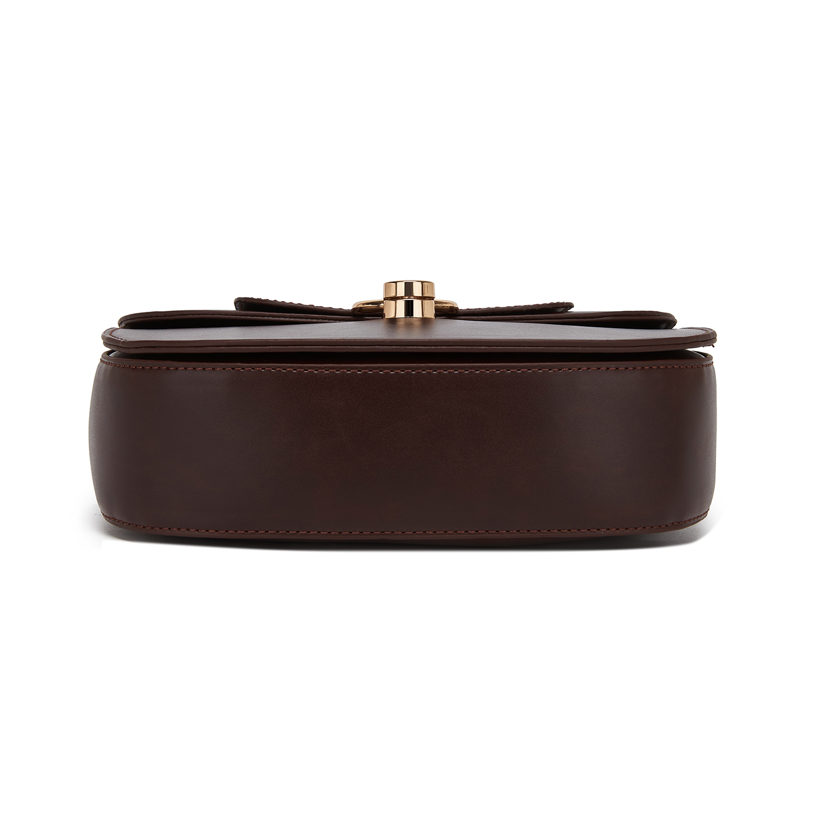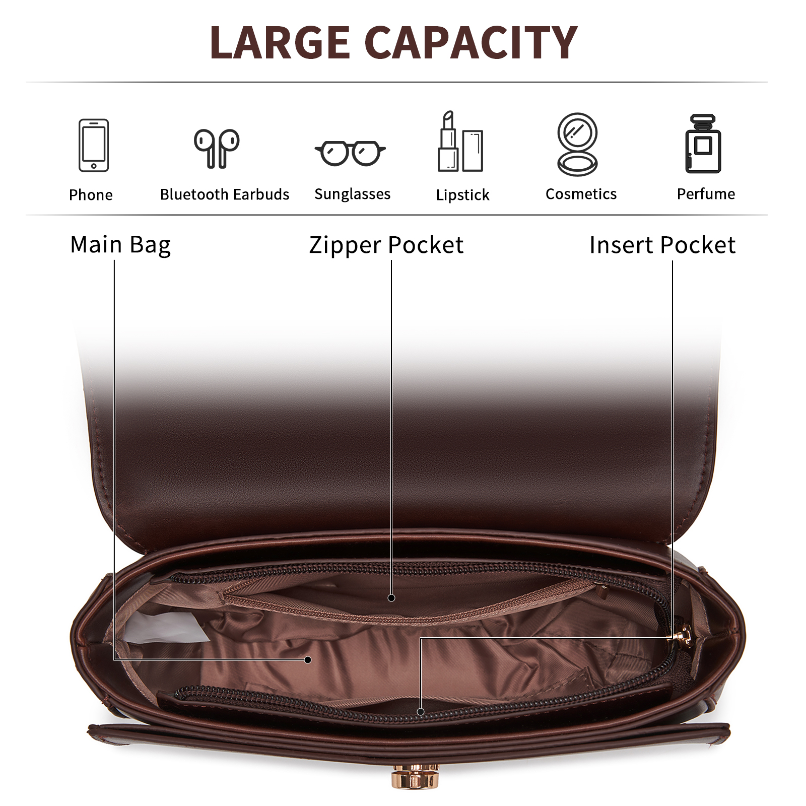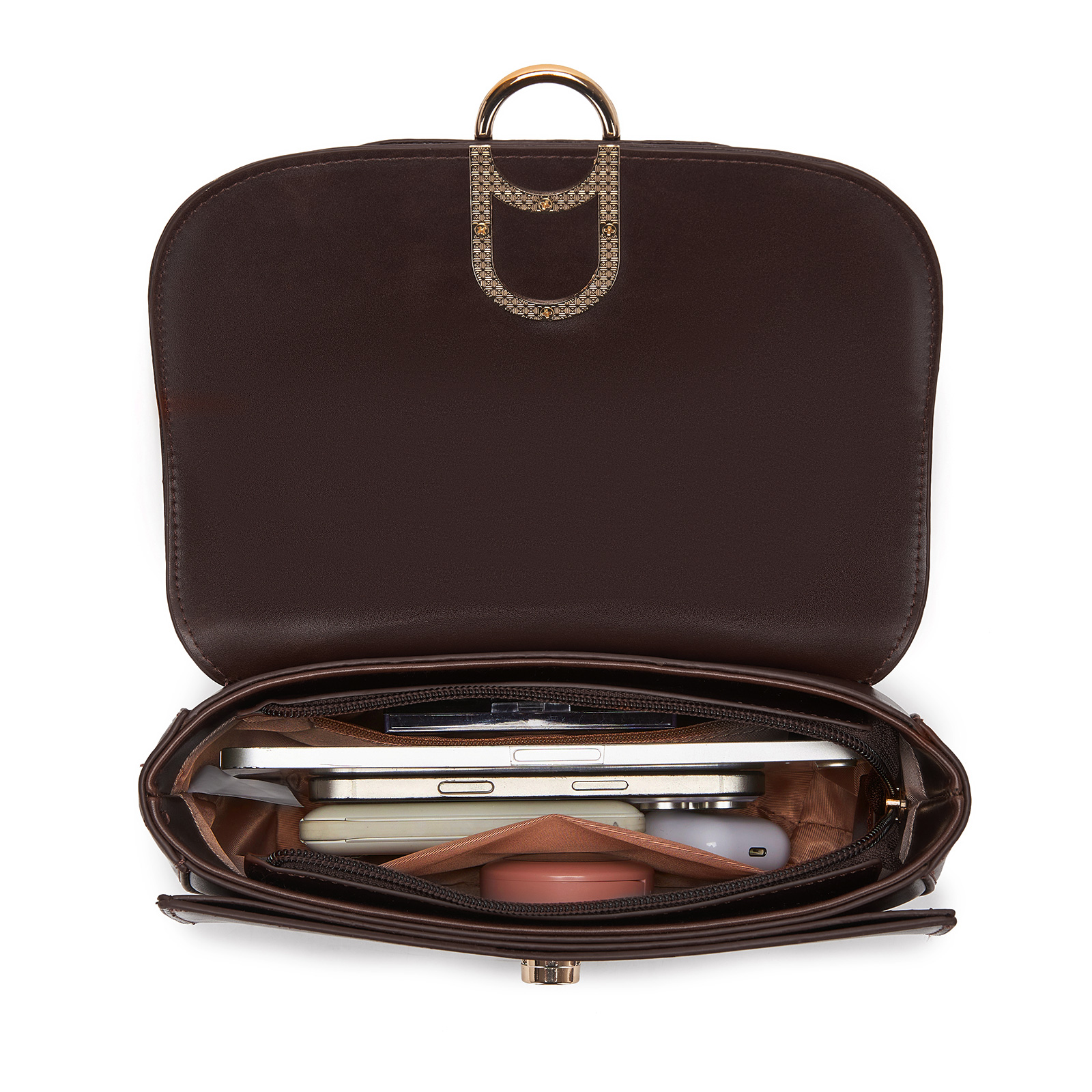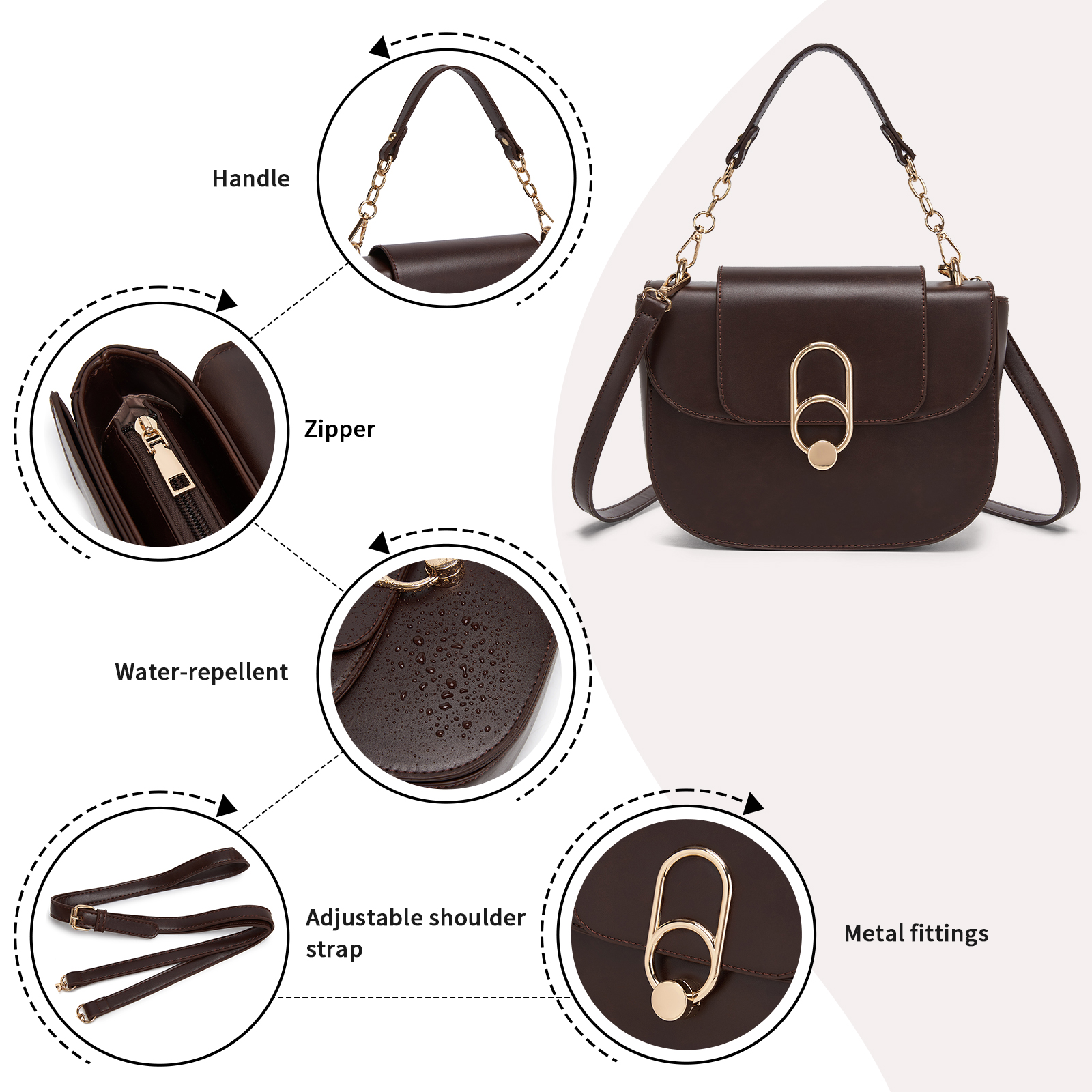 HBM2514 - Miss Lulu Stylish PU Saddle Bag with Chain-Accent Top Handle & Adjustable Strap - Coffee