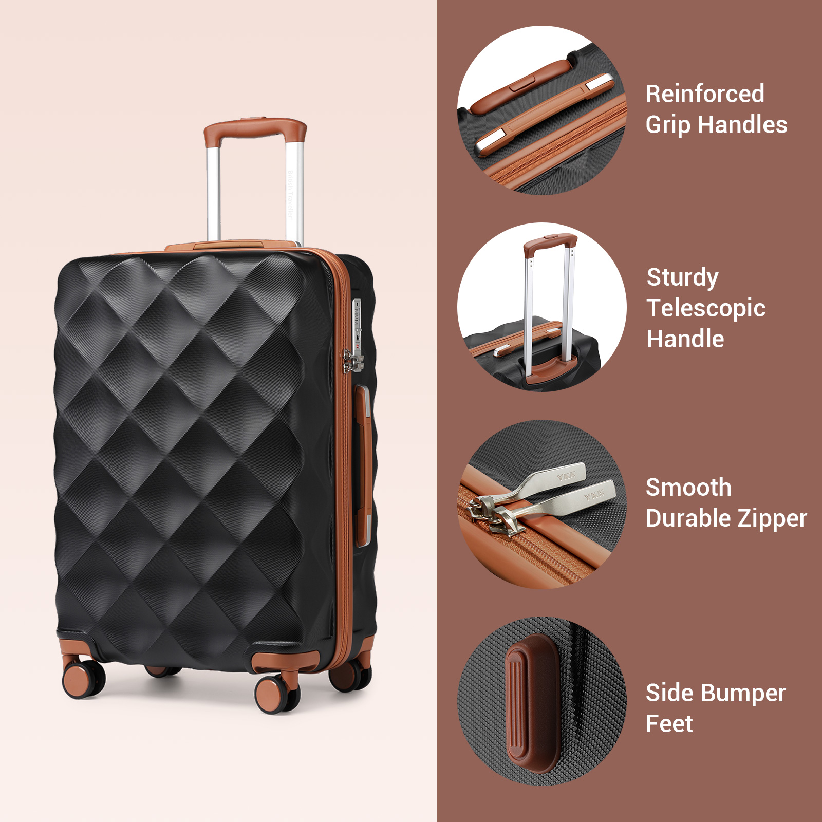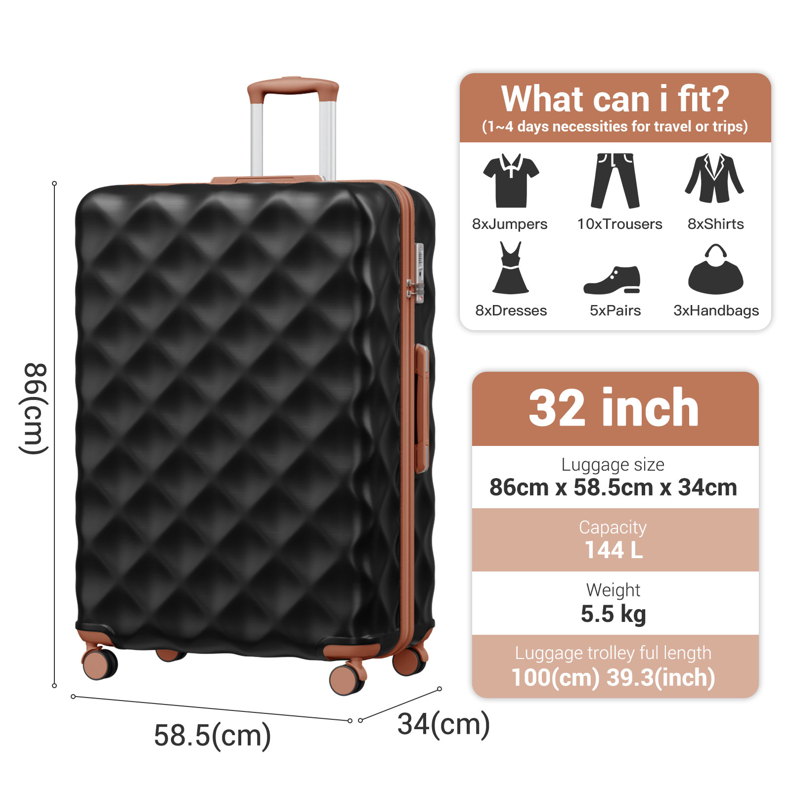 K2395L - British Traveller 32 Inch Extra-Large Diamond Texture ABS+PC Hard-Shell Spinner Suitcase with Telescopic Handle - Black and Brown