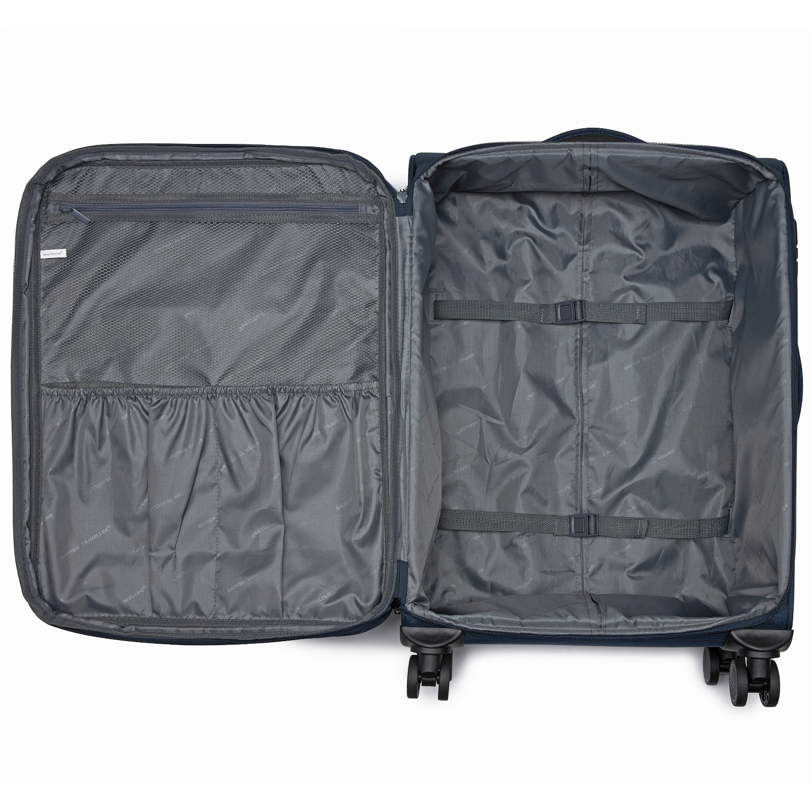 KSB2582 - British Traveller 24-Inch Expandable Softshell Suitcase with TSA Lock, Silent Spinner Wheels & Laptop Compartment - Navy