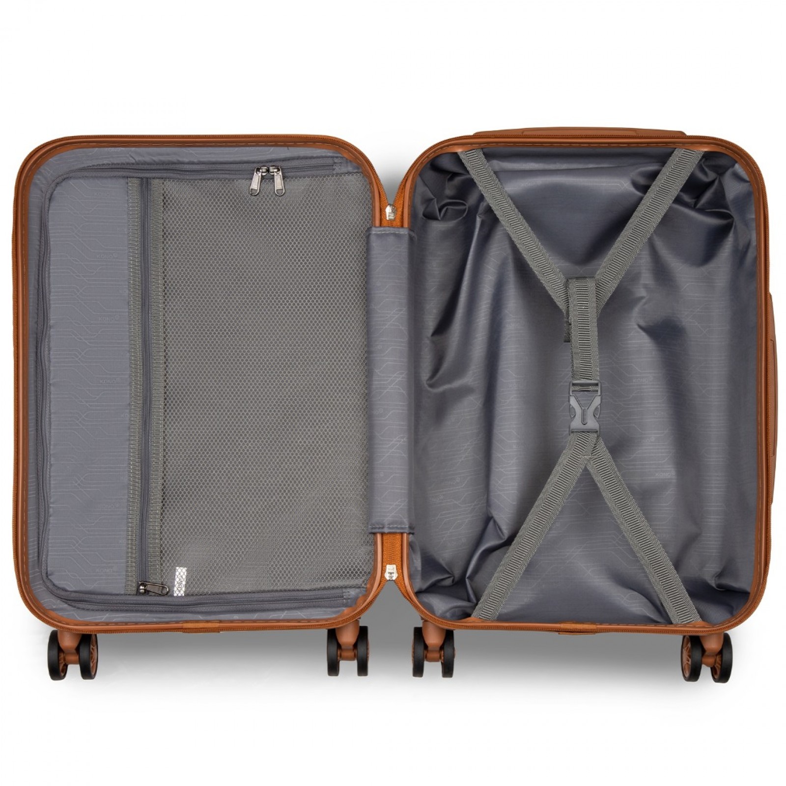 Constructed from durable ABS and PC materials, this suitcase offers resilience and durability against the impacts of travel.