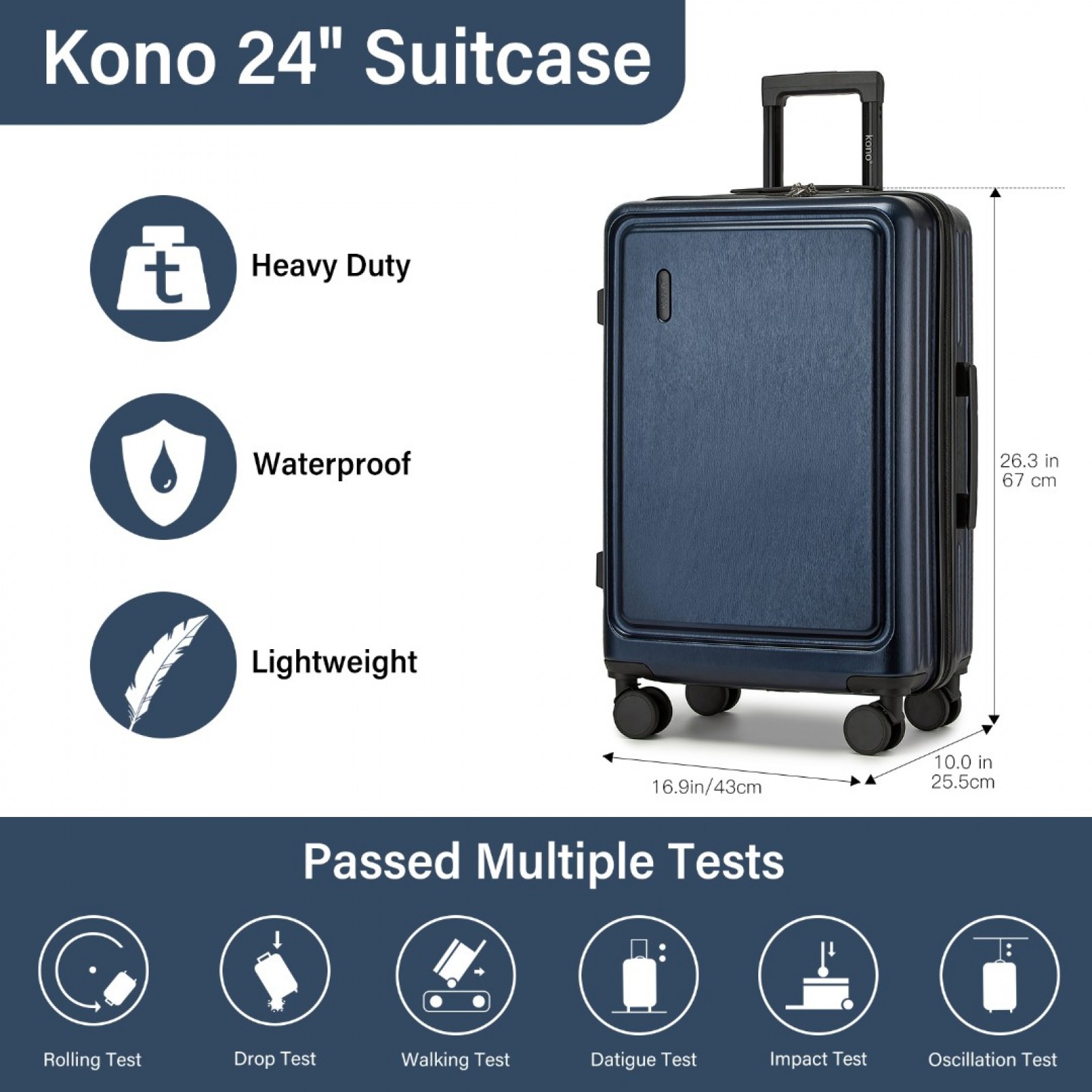 KSK2493 - Kono Durable 24 Inch ABS+PC Hardshell Suitcase with TSA Lock Lightweight Travel Luggage with 360° Spinner Wheels - Navy