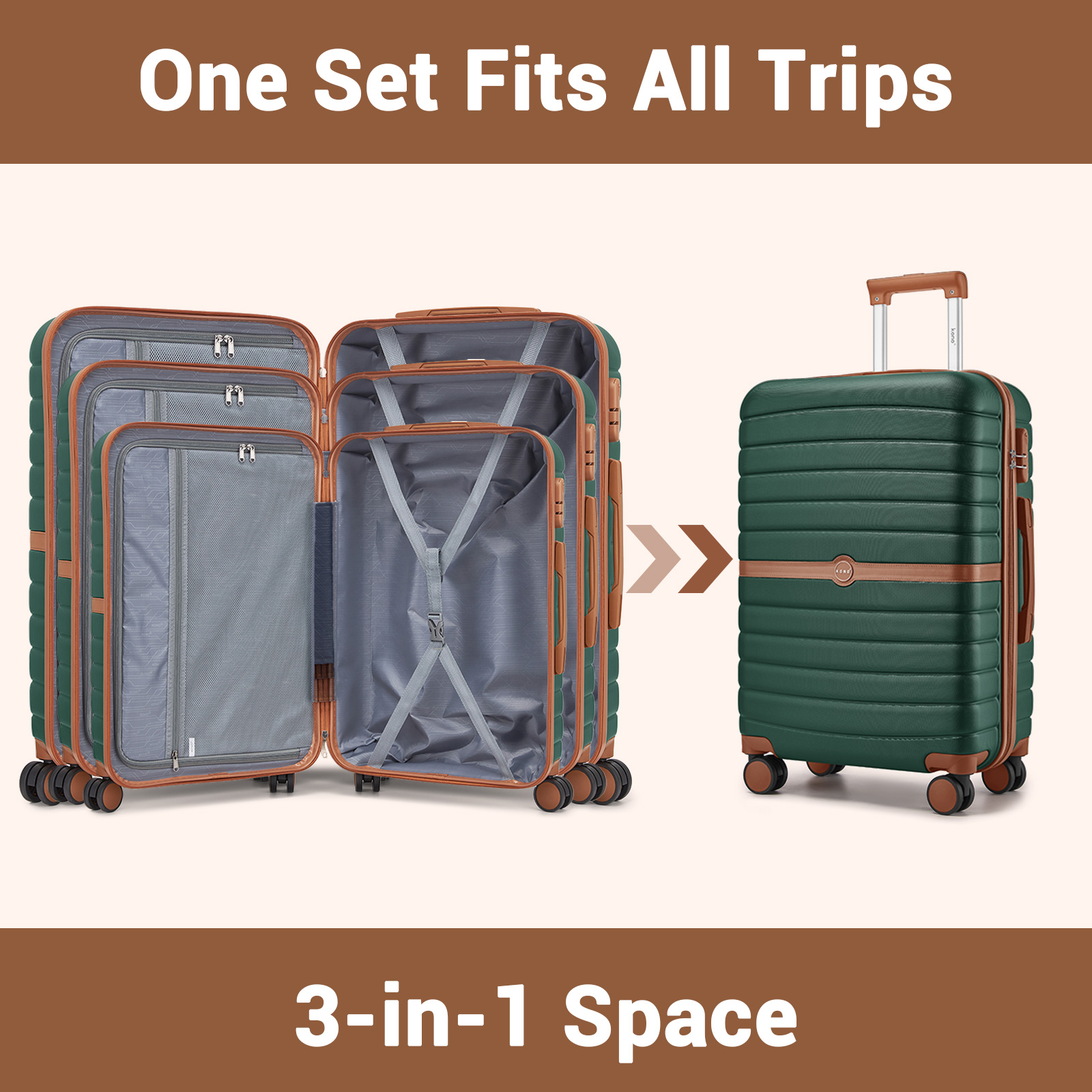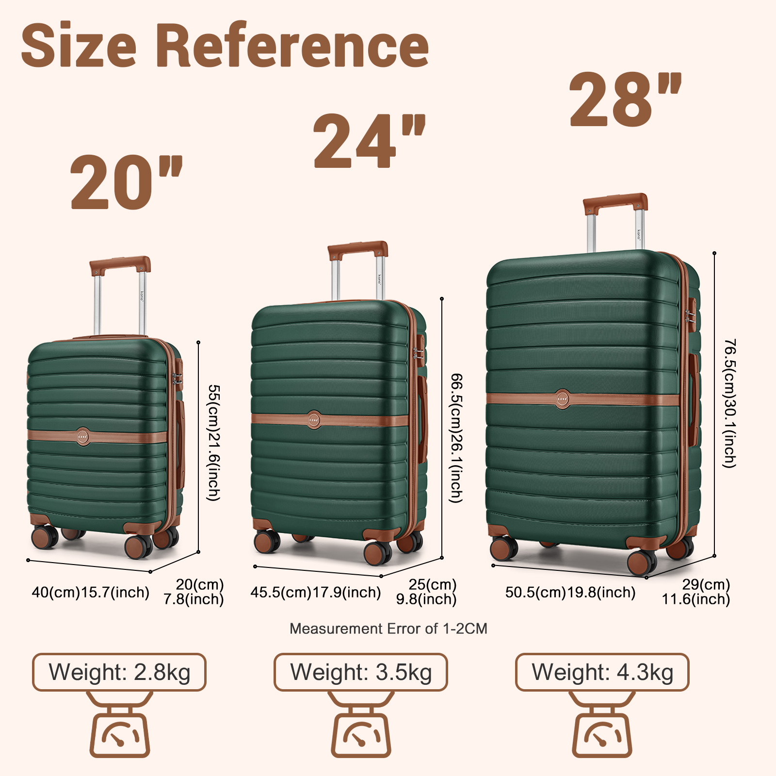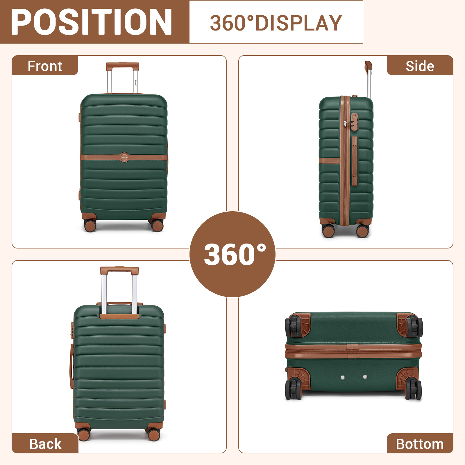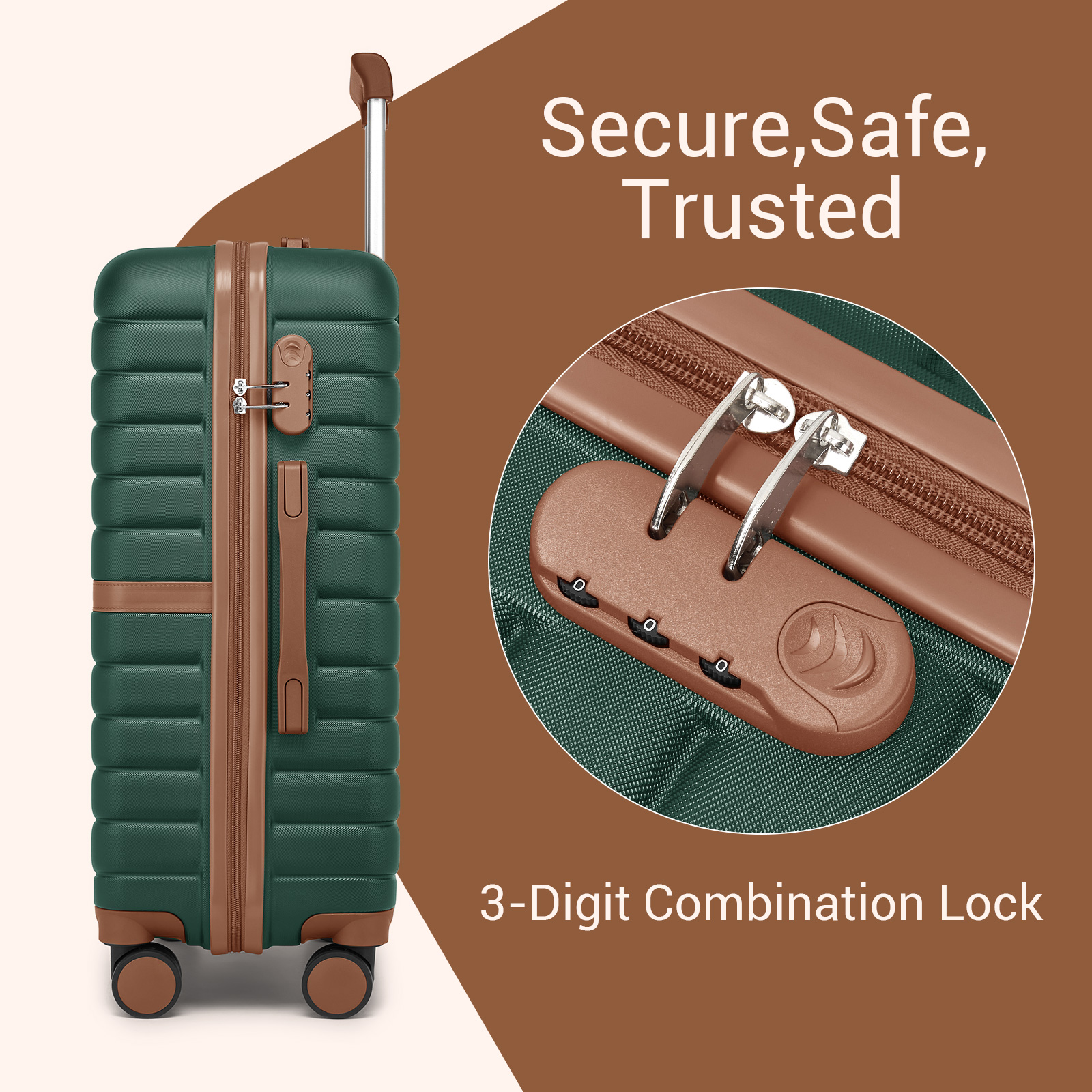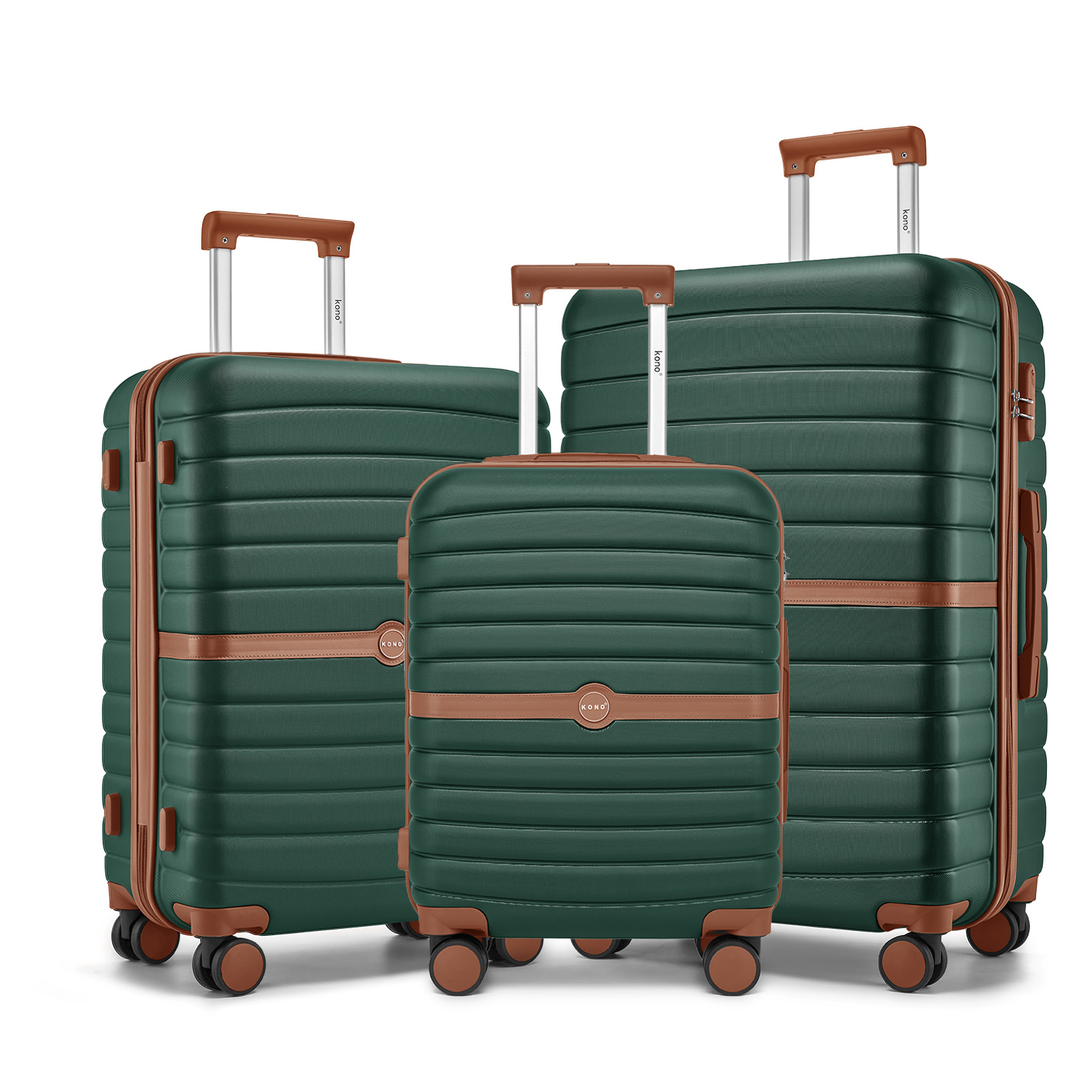 KSK2592 - Kono ABS+PC Striped Design with Colour-Block Details 3-Piece Hardshell Luggage Set with Spinner Wheels - Dark Green and Brown