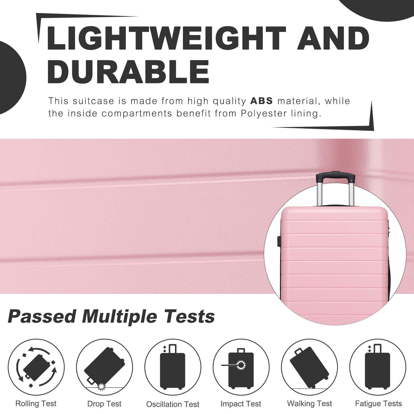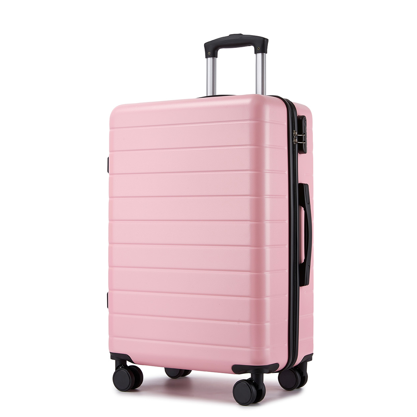 KSN2691 - 24 Inch Checked Luggage, Durable ABS Hard Shell Suitcase with 360 Silent Spinner Wheels & Secure Combination Lock - Pink