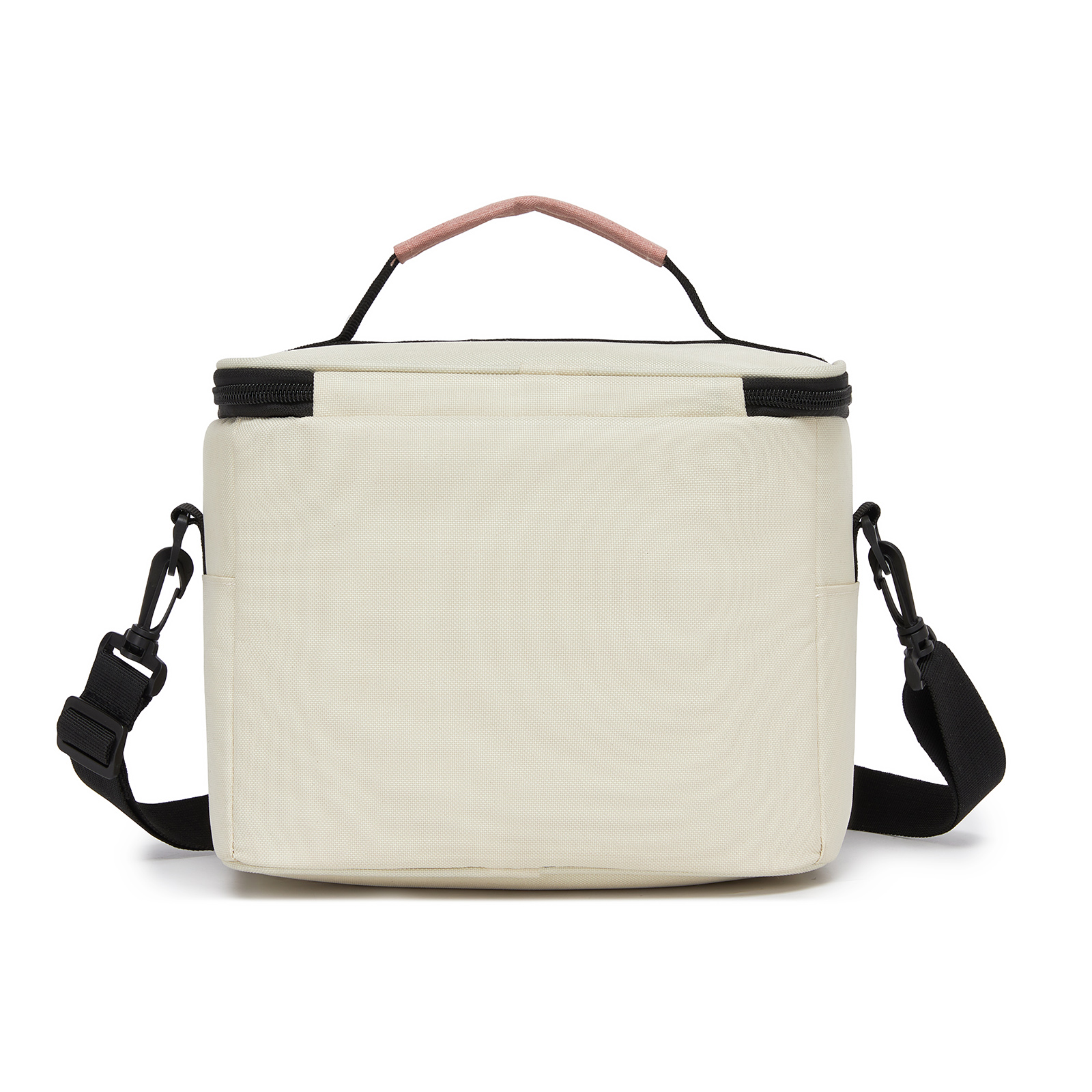 LBK2534 - Kono Insulated Lunch Bag-Water-Resistant 4-Layer Food Container, Leak-Proof, Portable with Adjustable Strap - Beige and Pink