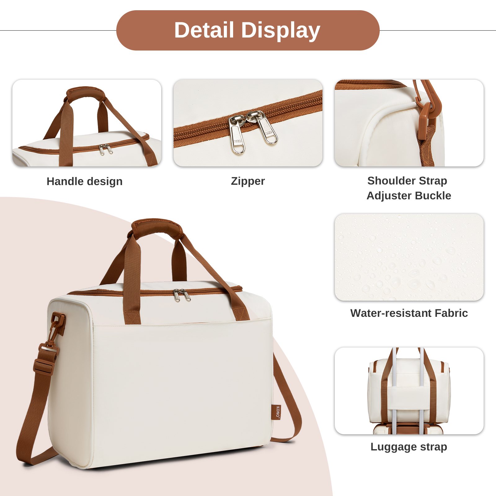 TVK2521 - Kono Compact and Lightweight 40×30×20 Personal-Item Travel Bag - U-Zip Wide Opening And Trolley Sleeve - Cream