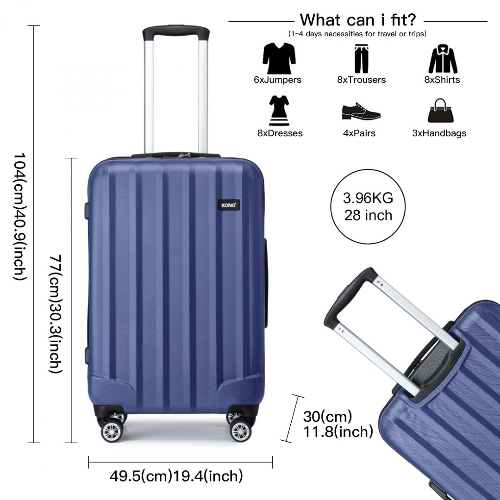 K1773-1L - Kono 28 Inch Striped ABS+PC Hard Shell Luggage with 360-Degree Spinner Wheels - Navy