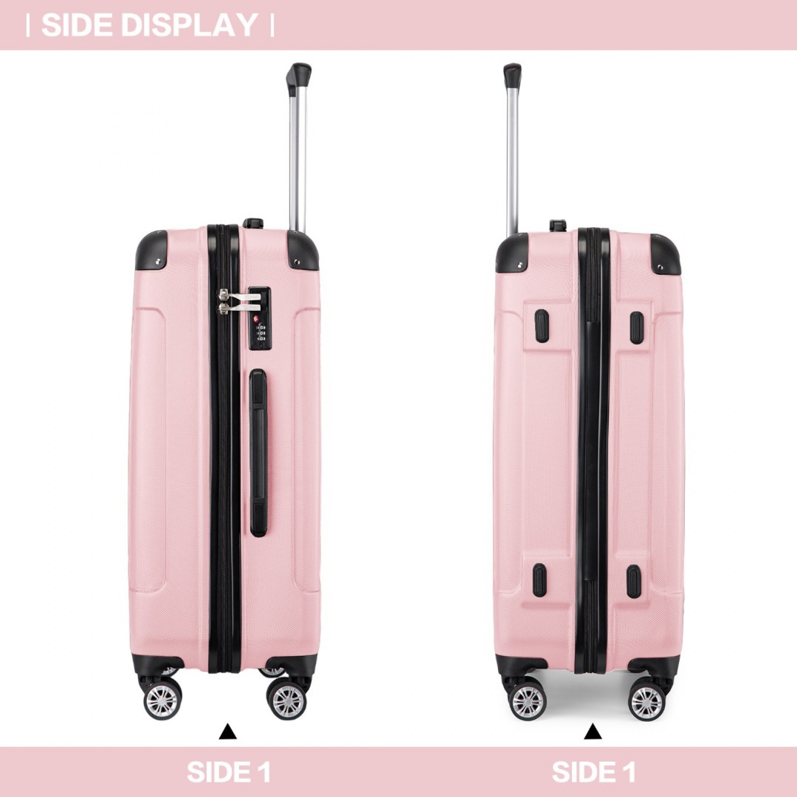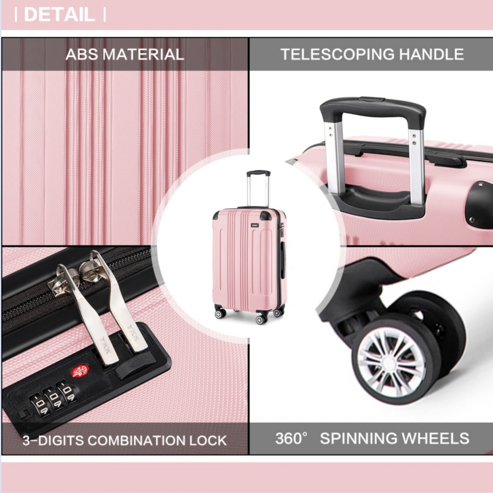 K1777-1L - Kono 19/24/28 Inch 3 Piece Set ABS Lightweight Compact Hard Shell Travel Luggage - Pink