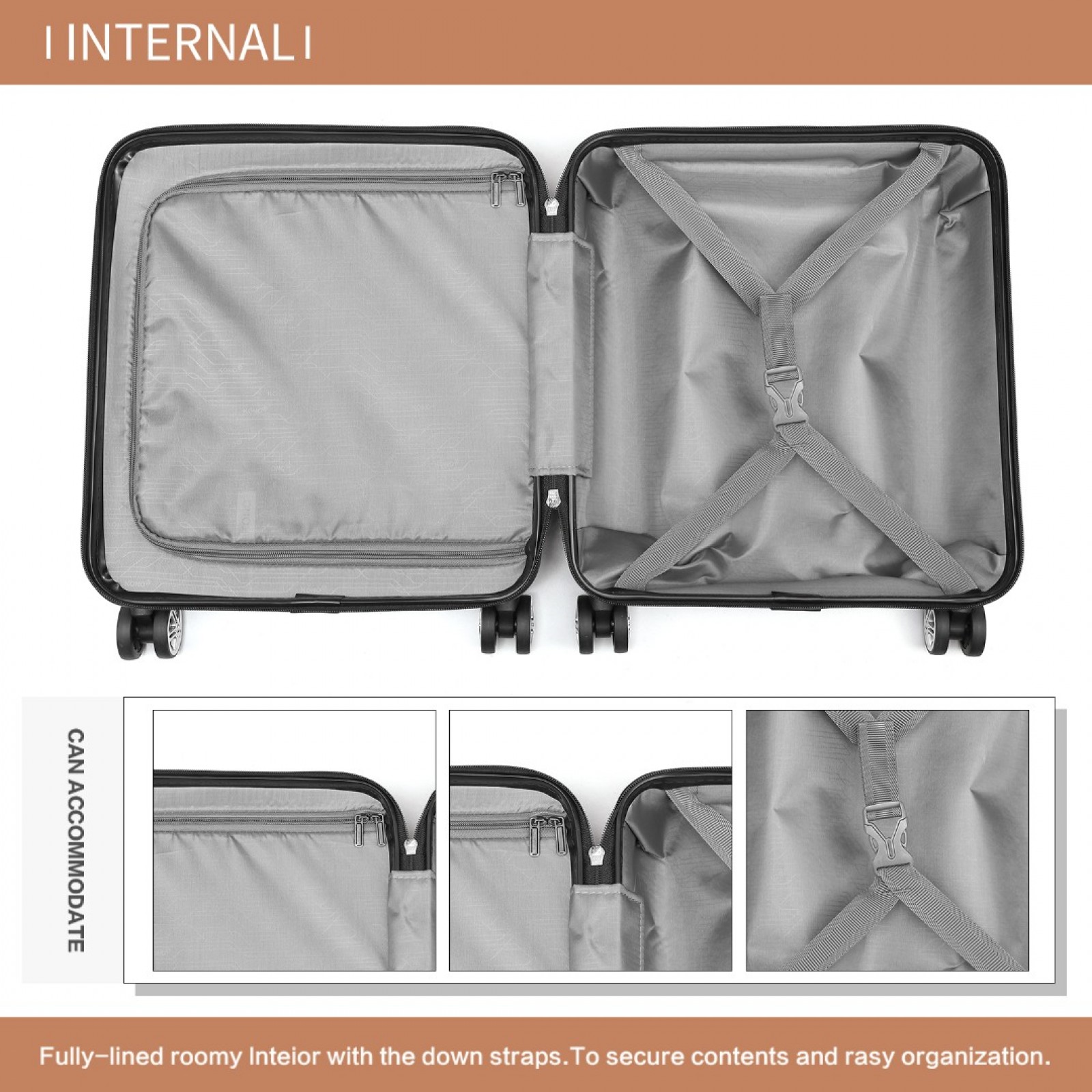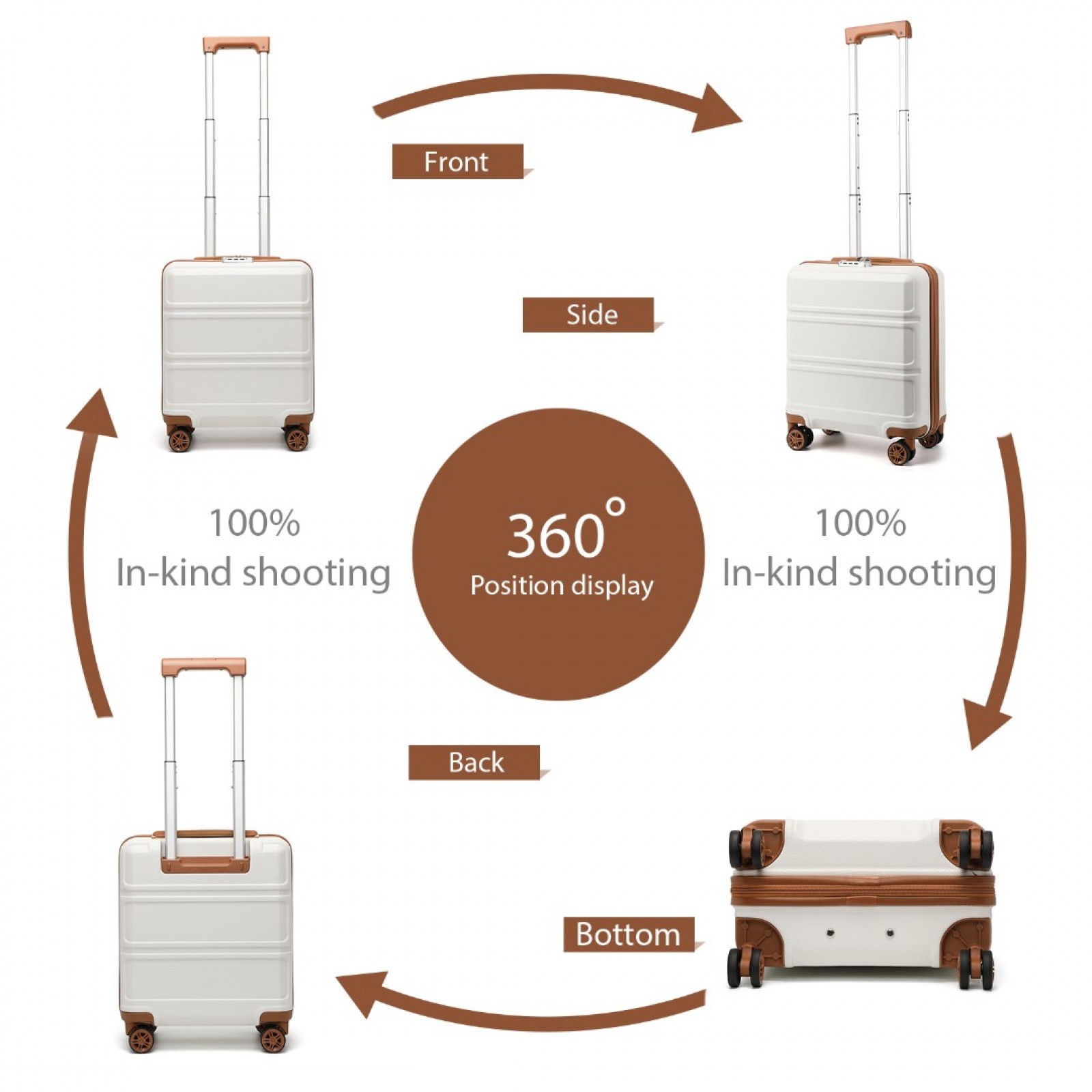 K1871-1L - Kono ABS 16 Inch Sculpted Horizontal Design Cabin Luggage - Cream