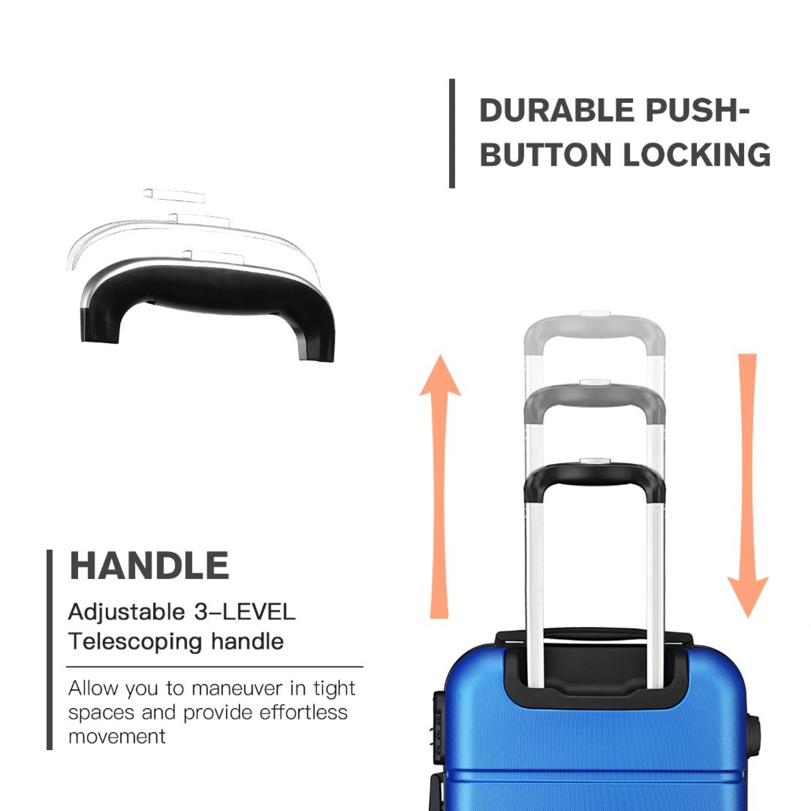 K1995L - Kono Hard Shell ABS Carry On Suitcase 20 Inch - Navy