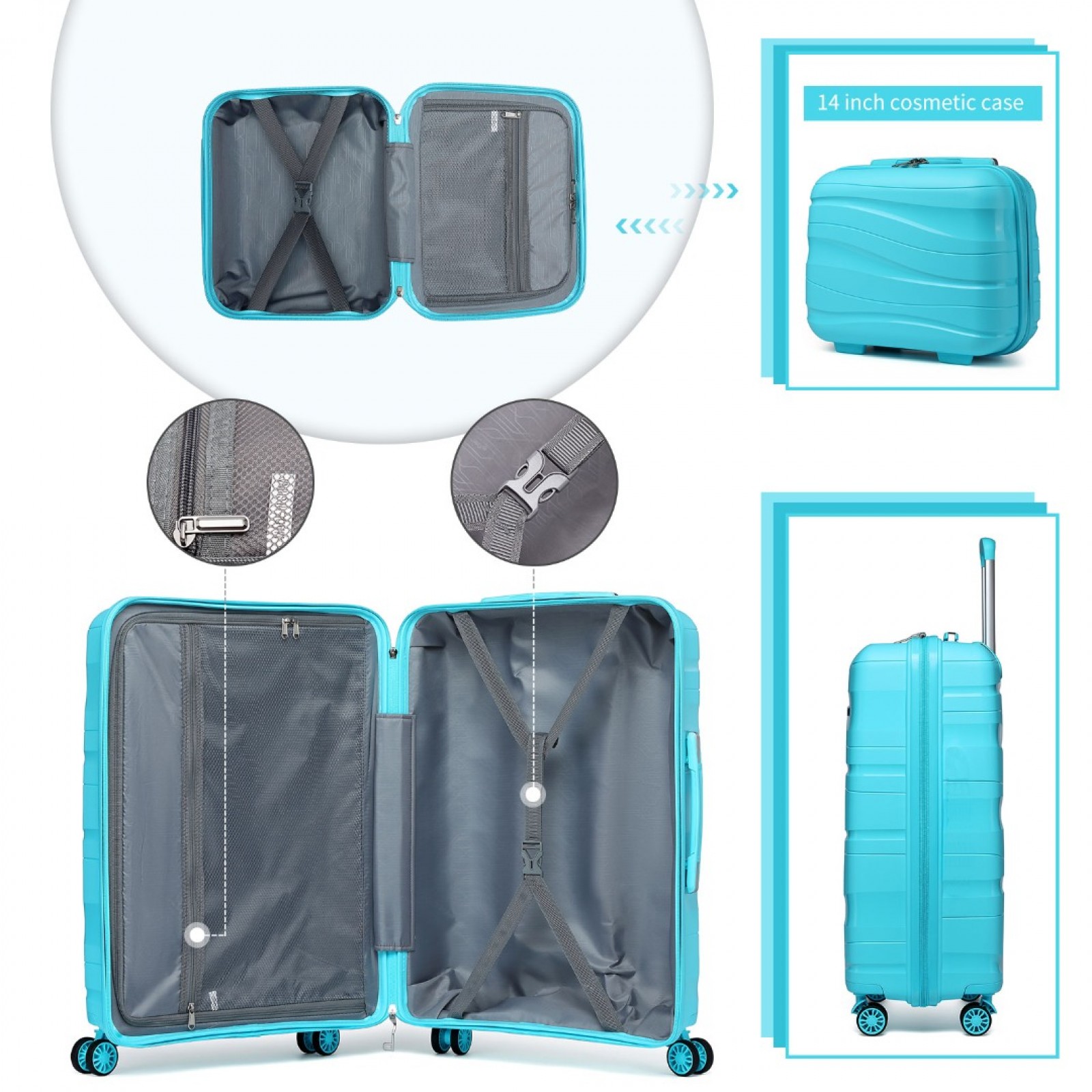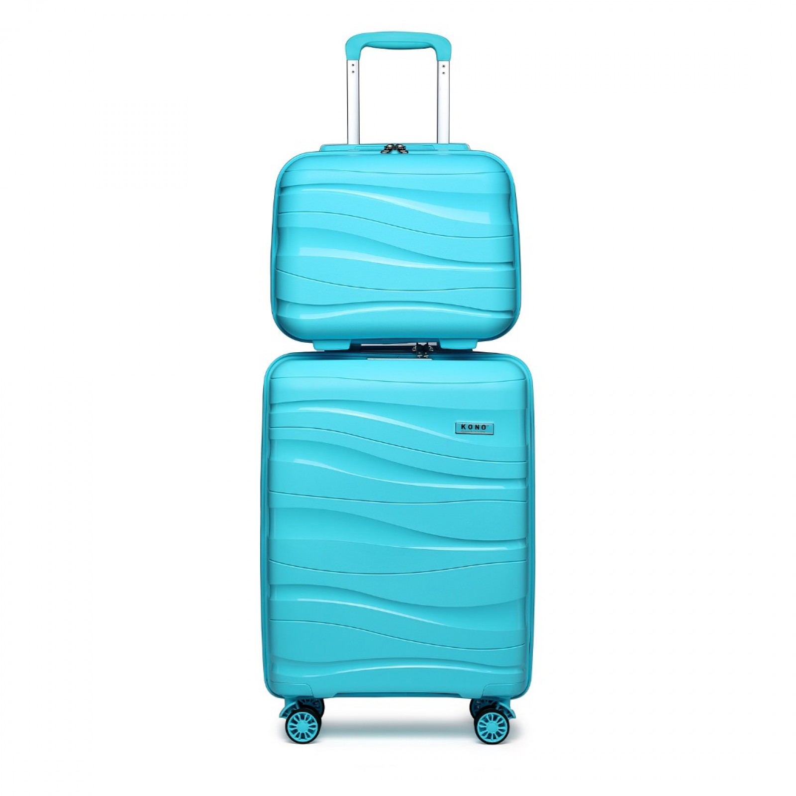 K2094L - Kono 14/20 Inch Lightweight Polypropylene Hard Shell 2 Piece Suitcase Set With TSA Lock And Vanity Case - Blue