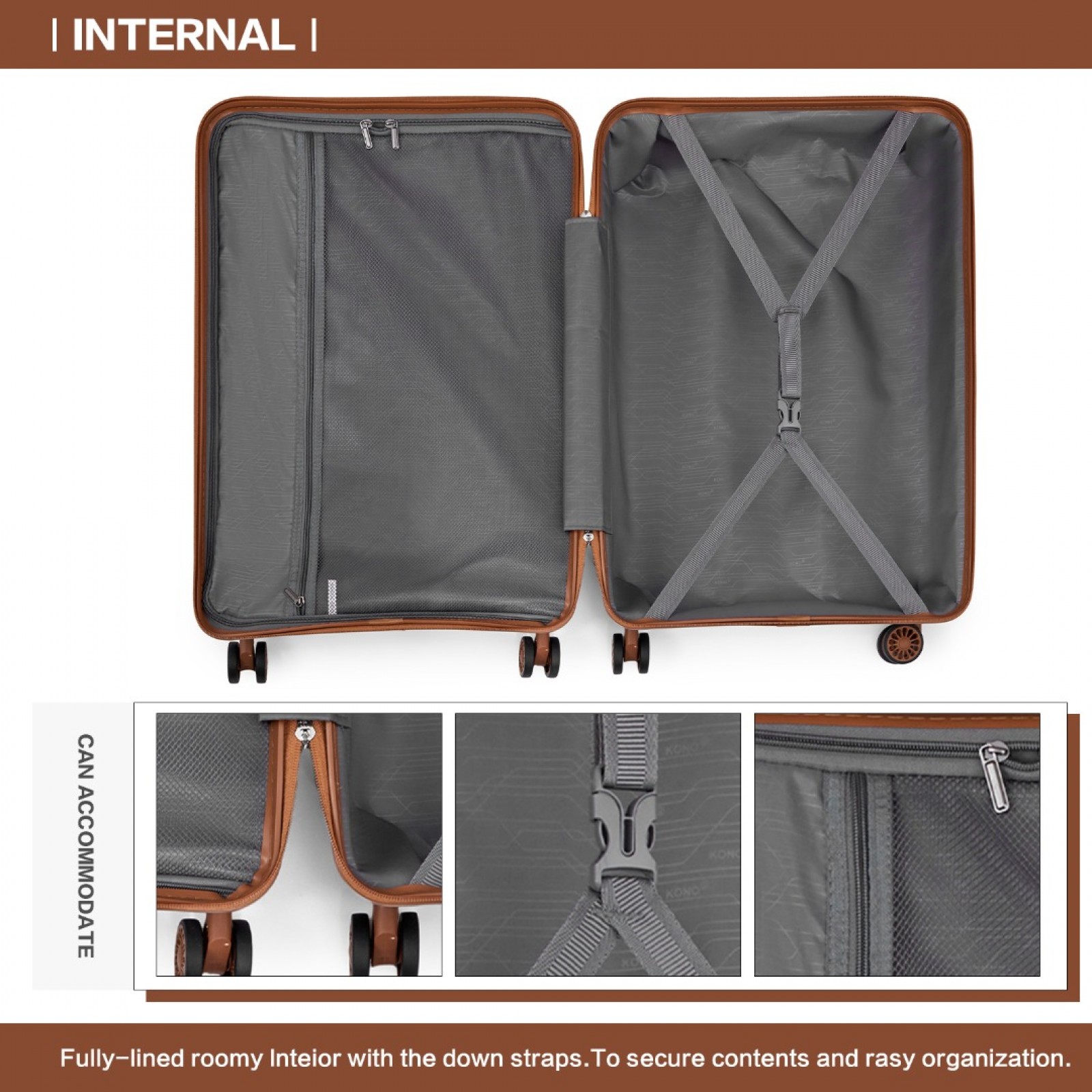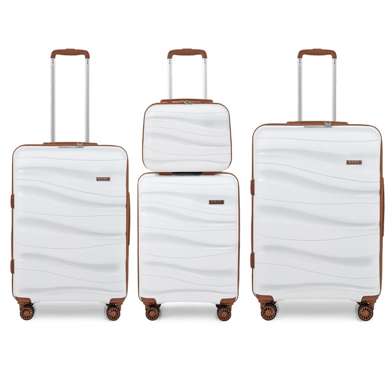 K2094L - Kono Lightweight Polypropylene Hard Shell 4 Piece Suitcase Set With TSA Lock And Vanity Case - Cream