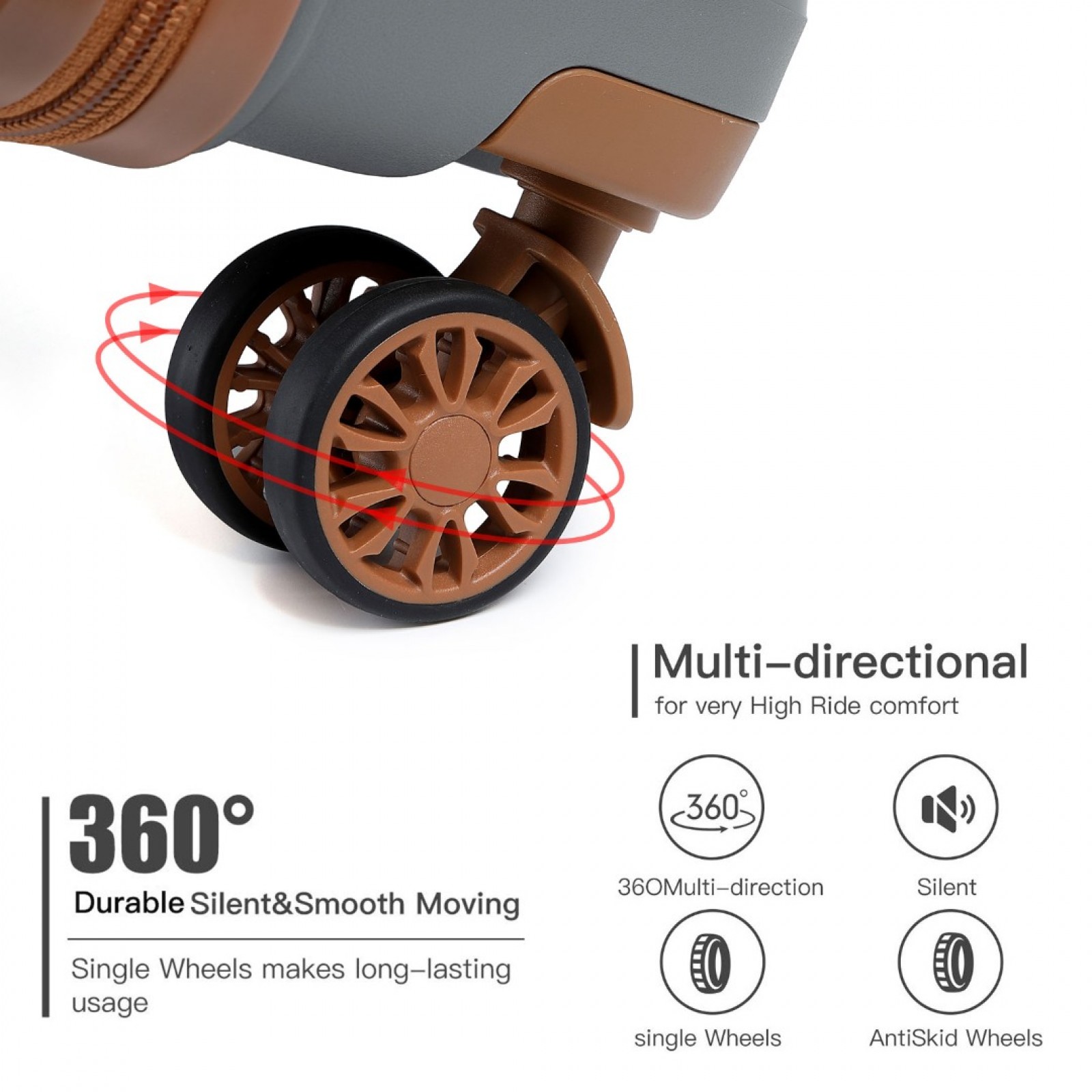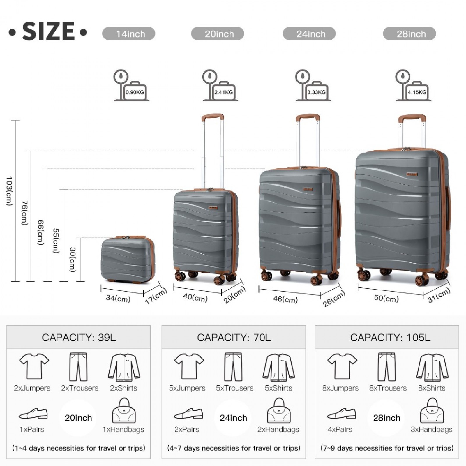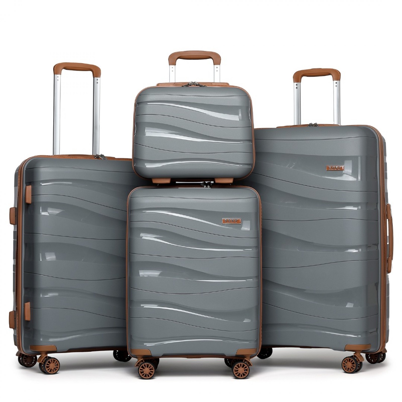 K2094L - Kono Lightweight Polypropylene Hard Shell 4 Piece Suitcase Set With TSA Lock And Vanity Case - Grey And Brown
