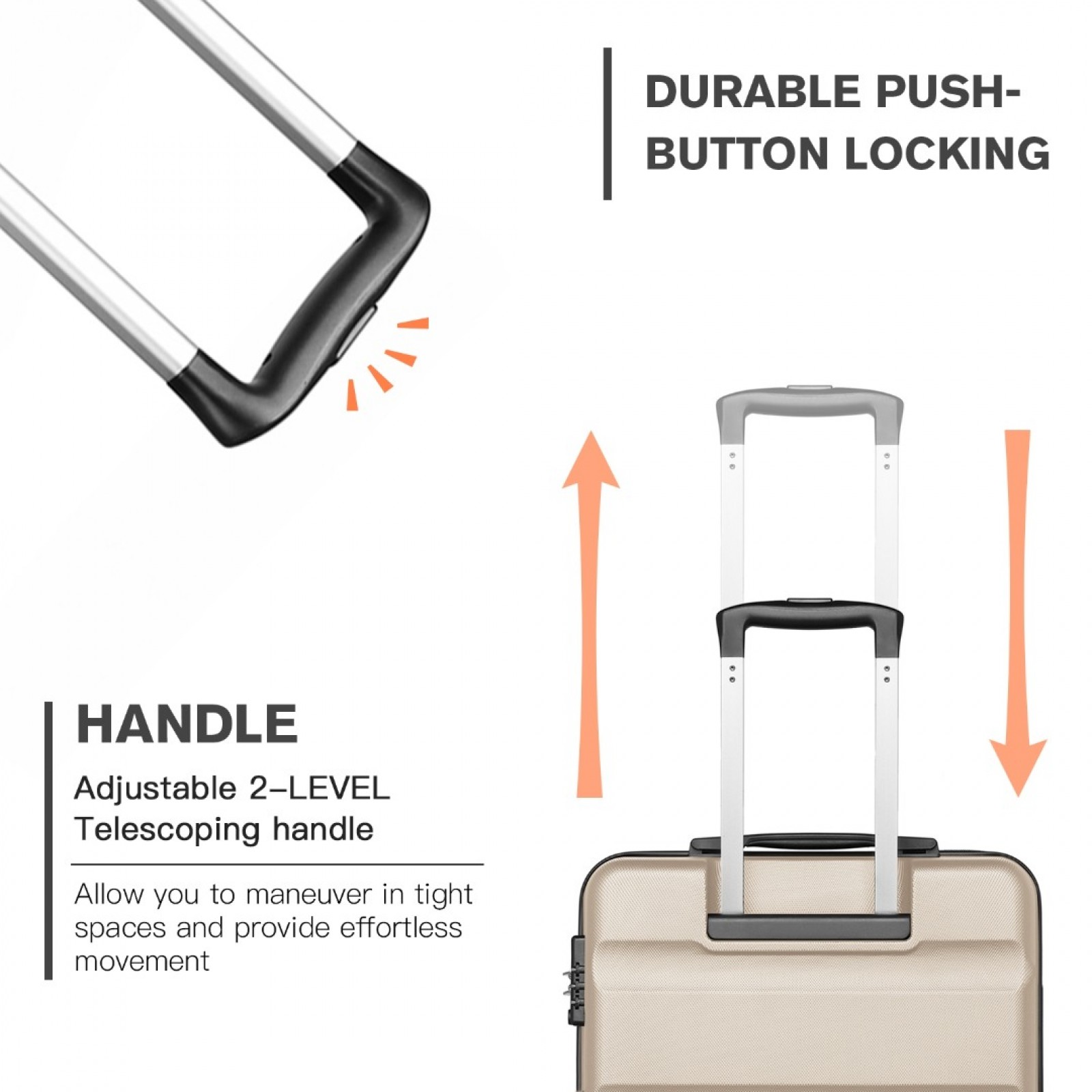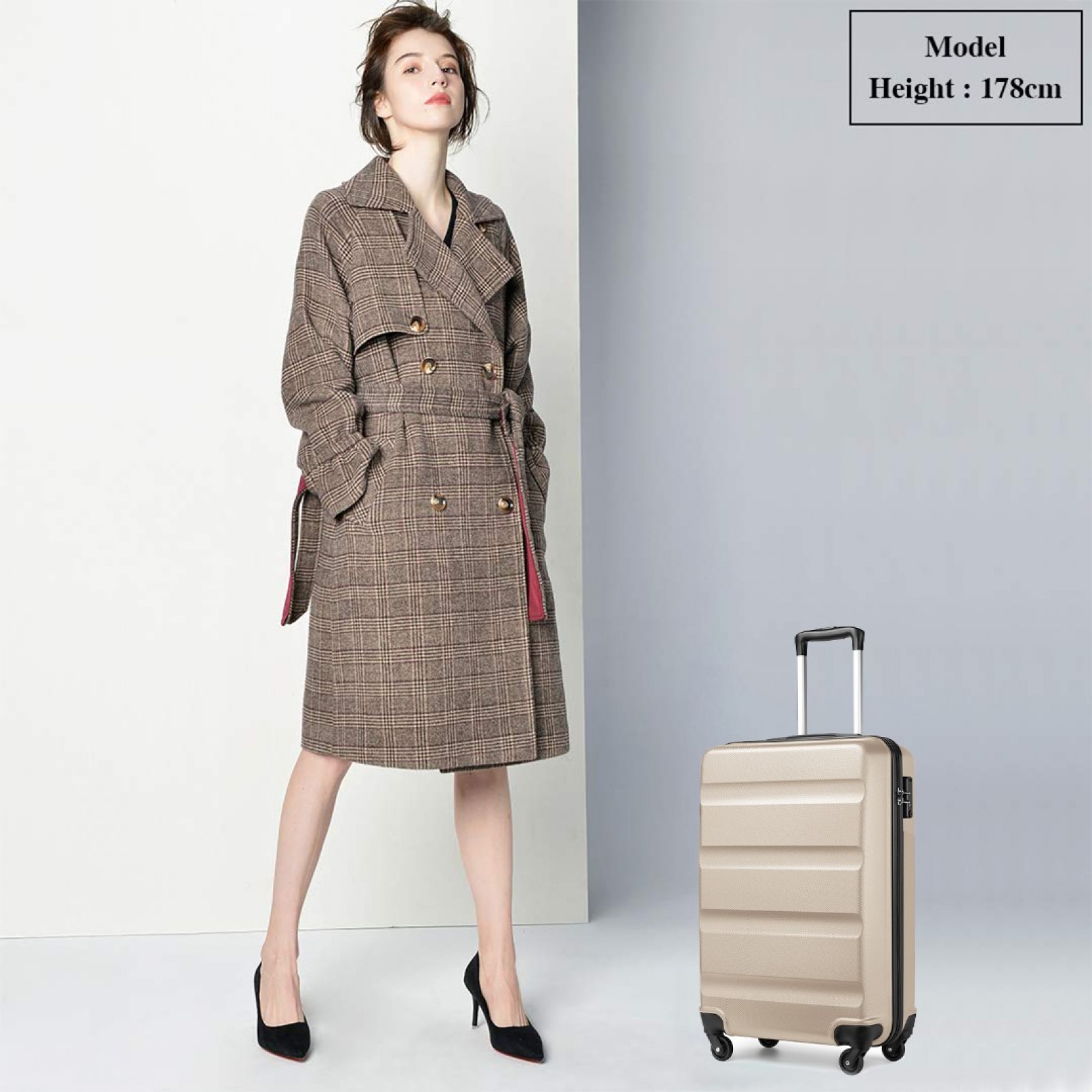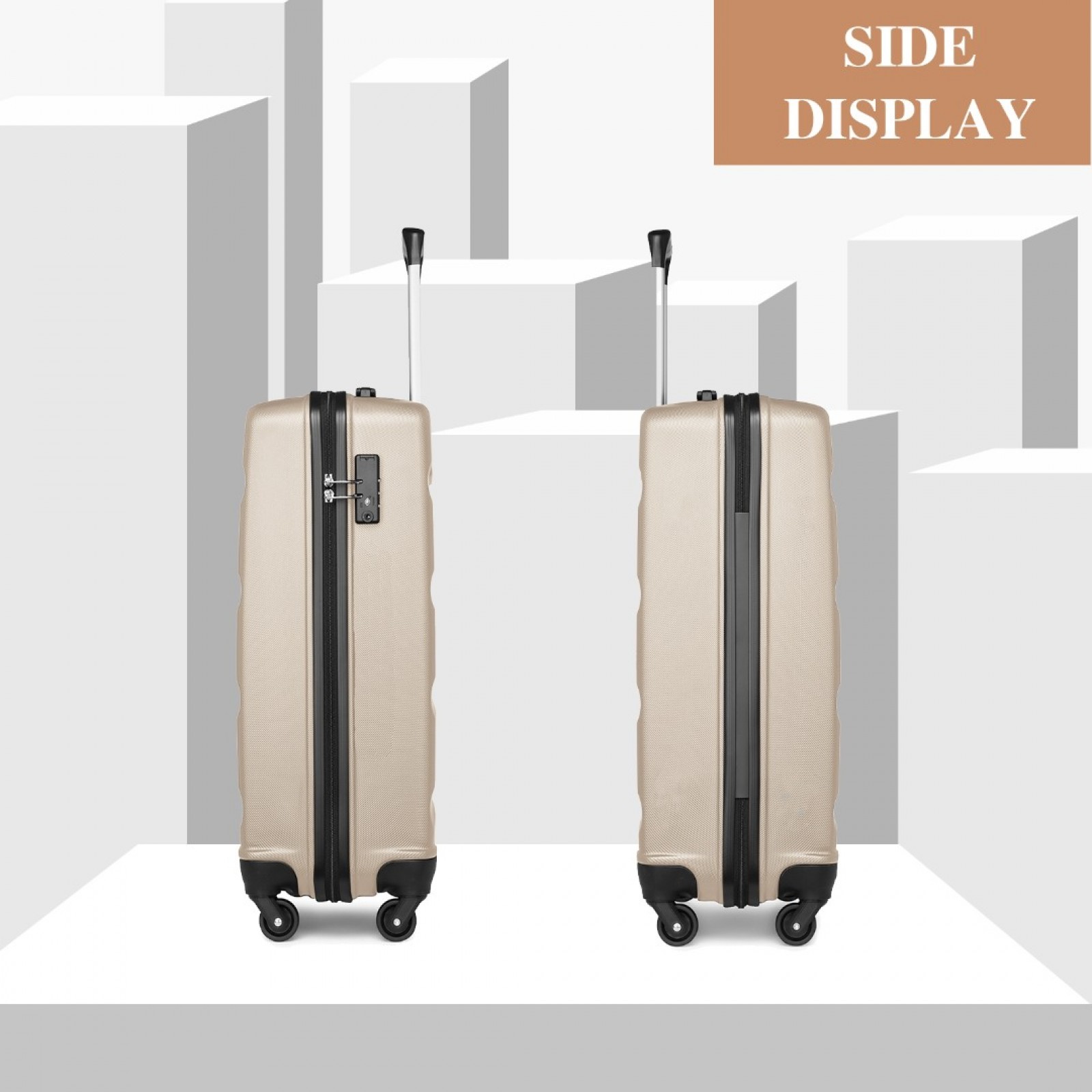 K2191L - Kono 19 Inch Cabin Size Carry On Suitcase - Streamlined Lightweight ABS Hardshell with Secure TSA Lock - Gold