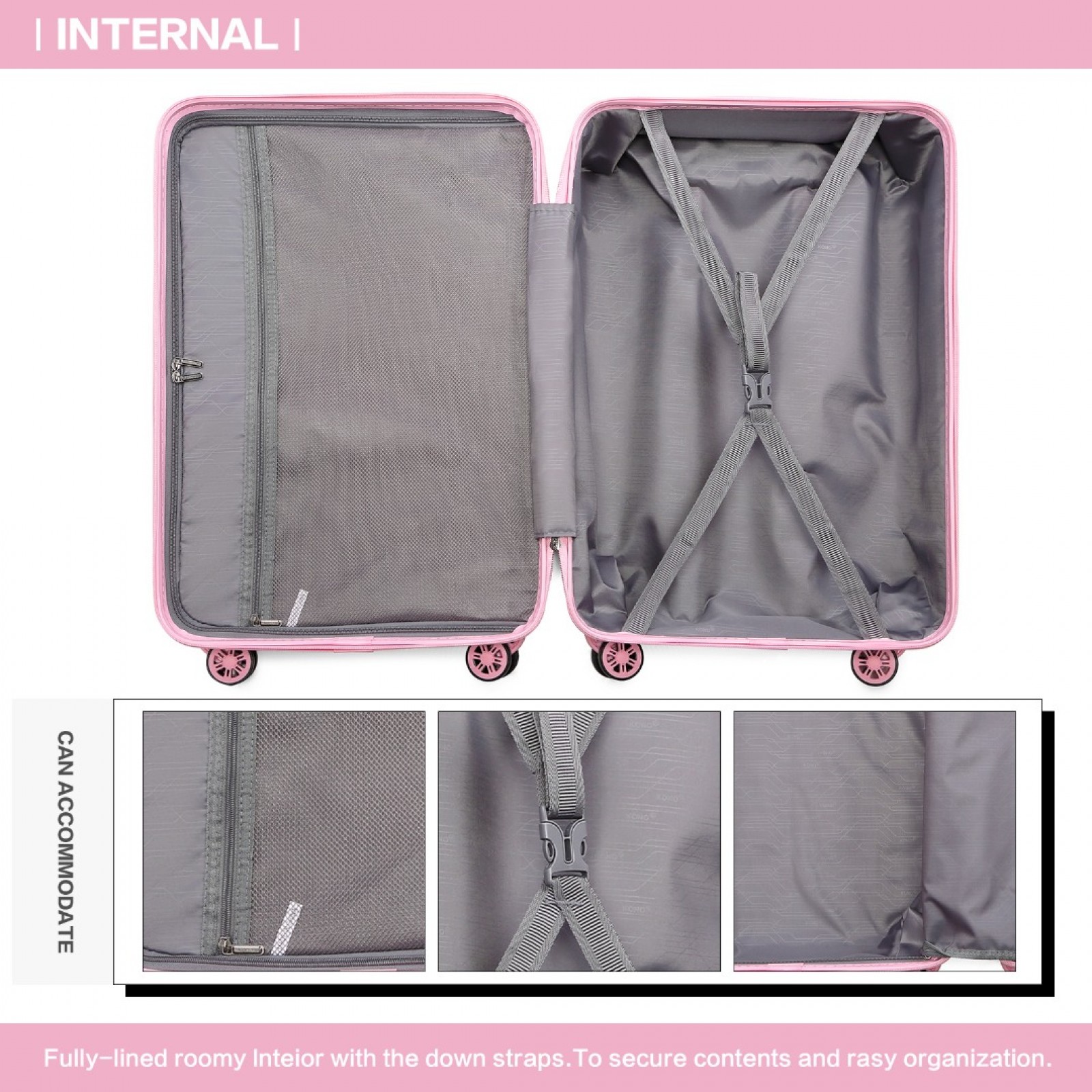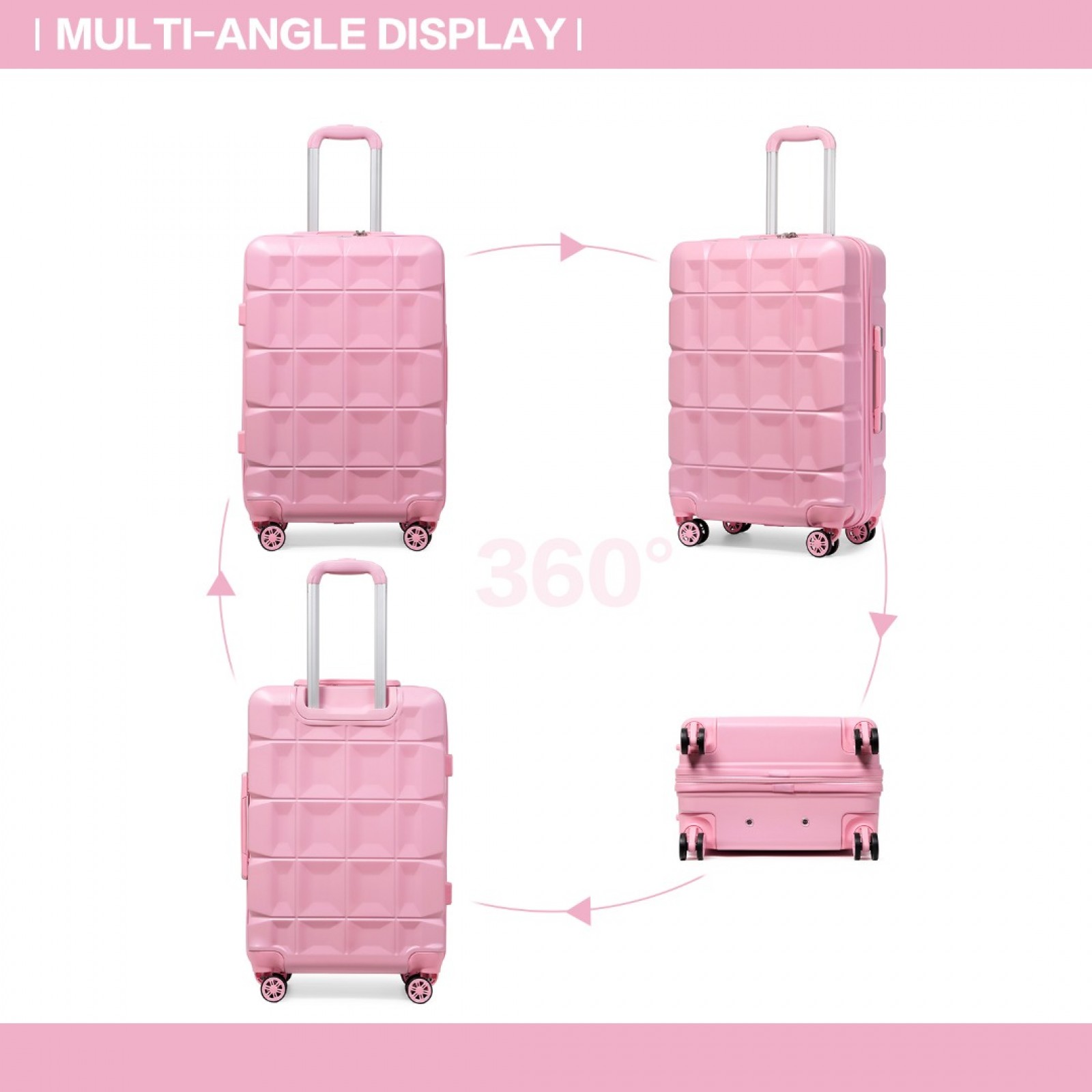 K2292L - Kono 24 Inch Lightweight Hard Shell ABS Suitcase With TSA Lock - Pink