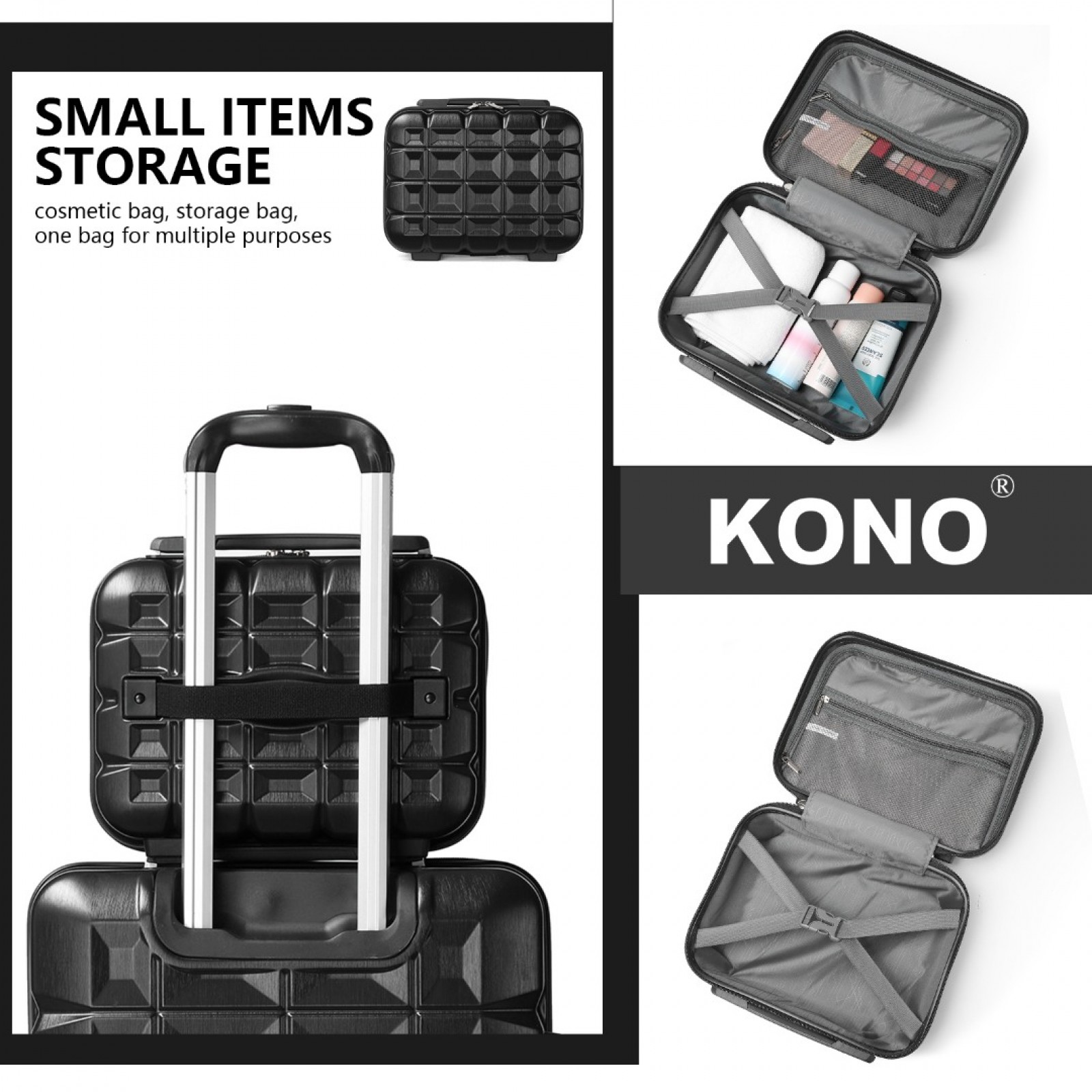 K2292L - Kono Lightweight Hard Shell ABS Suitcase With TSA Lock And Vanity Case 4 Piece Set - Black