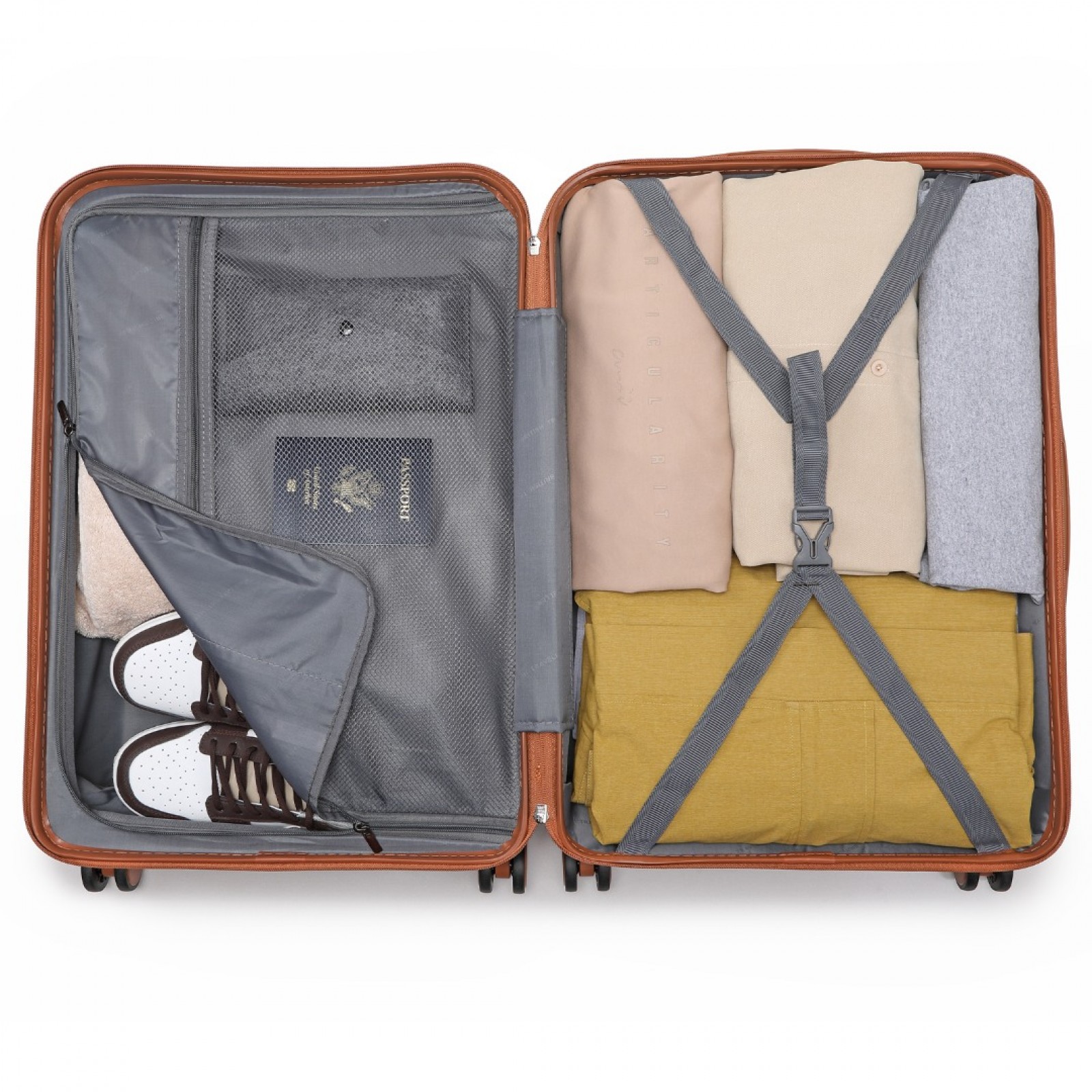 K2391L - British Traveller 20 Inch Durable Polycarbonate and ABS Hard Shell Suitcase With TSA Lock - Grey And Brown