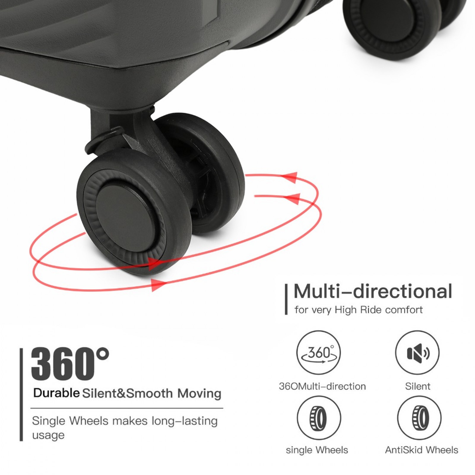 Polypropylene (PP) is an idea material for aviation luggage. It can withstand large drops and falls and is bomb-proof with very high durability. The polypropylene will rebound immediately after collision with another object and provides excellent protection for your luggage.
