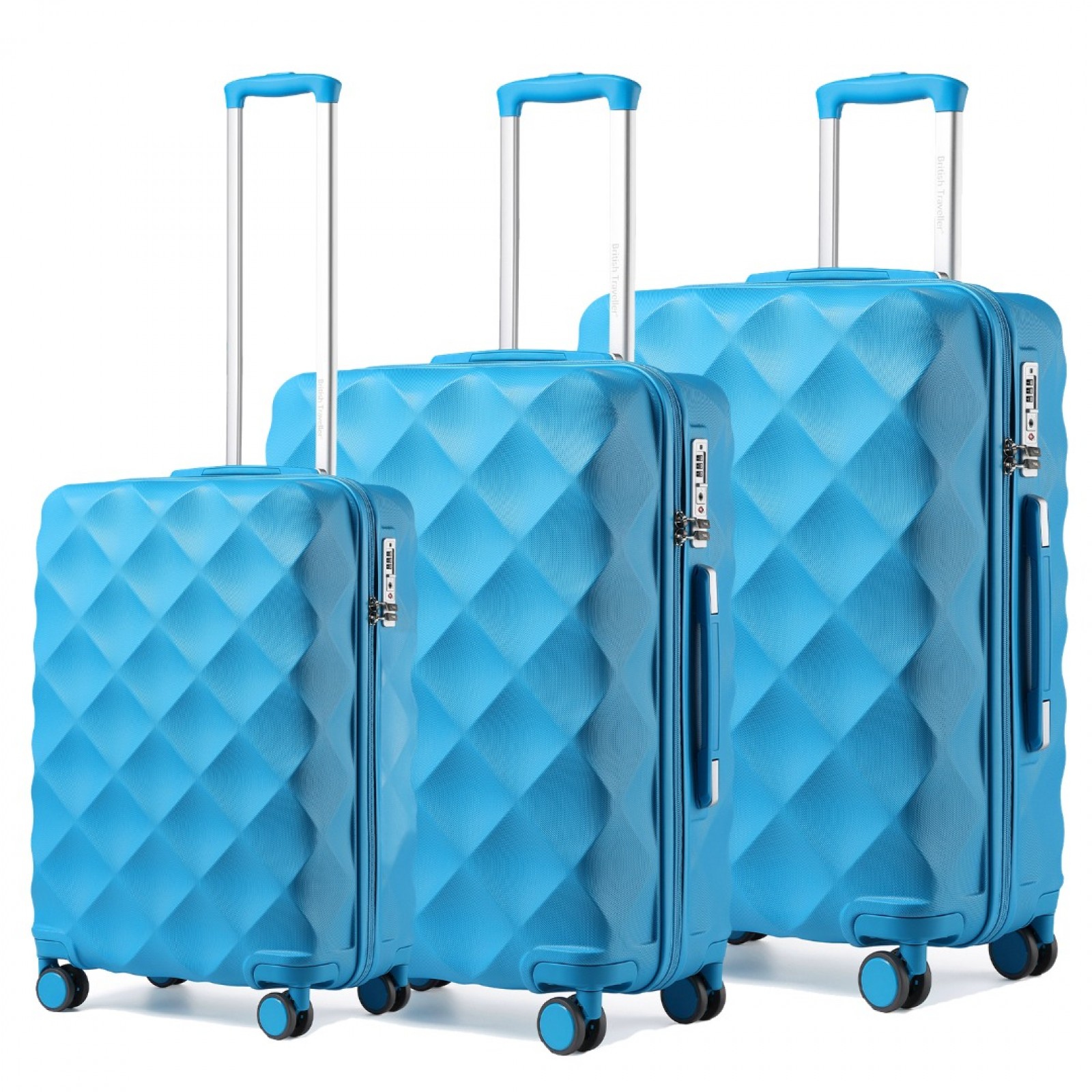 K2395L - British Traveller Ultralight ABS And Polycarbonate Bumpy Diamond 3 Pcs Luggage Set With TSA Lock - Blue