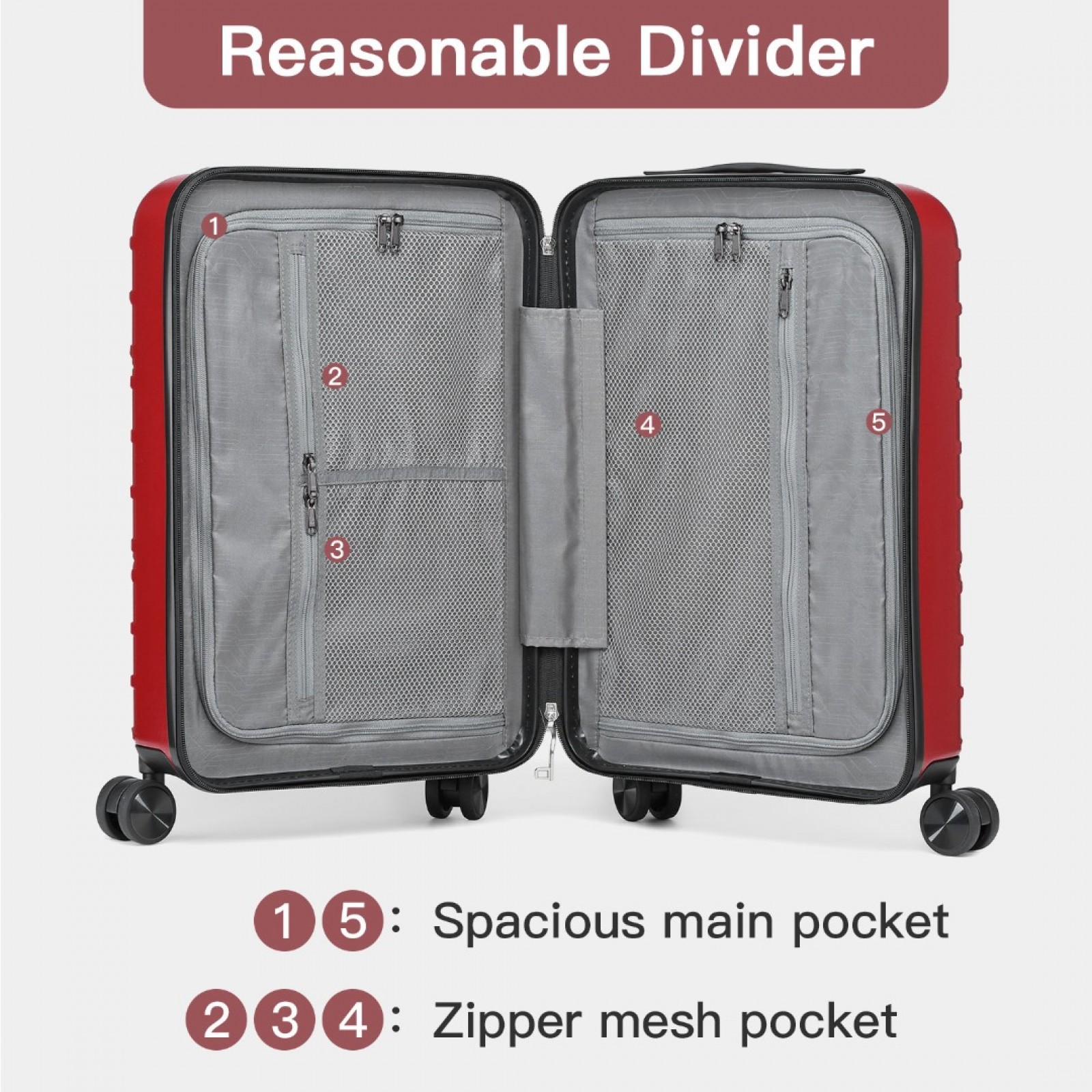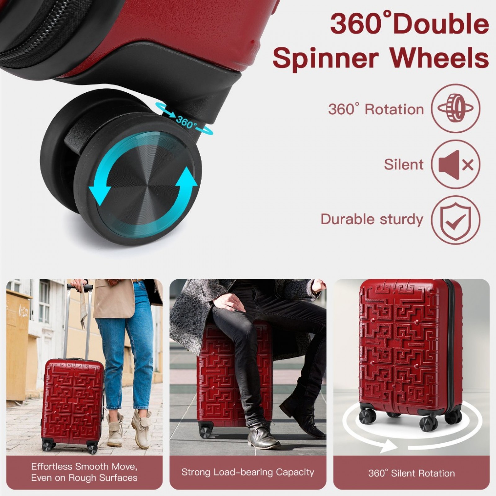 K2396L - Supercase Stylish 20 Inch Carry-On Polypropylene Hardshell Suitcase with Maze Pattern - Red