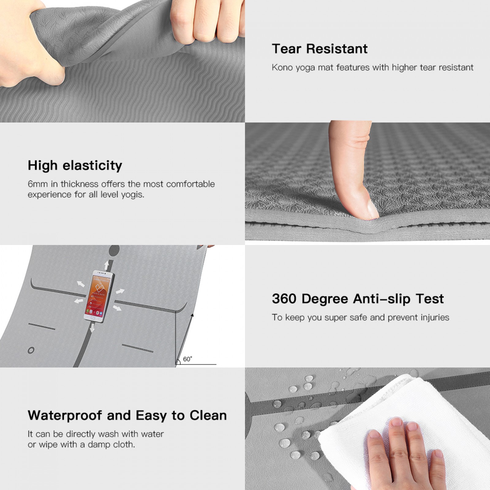 Kono TPE Non-slip Classic Yoga Mat - Grey