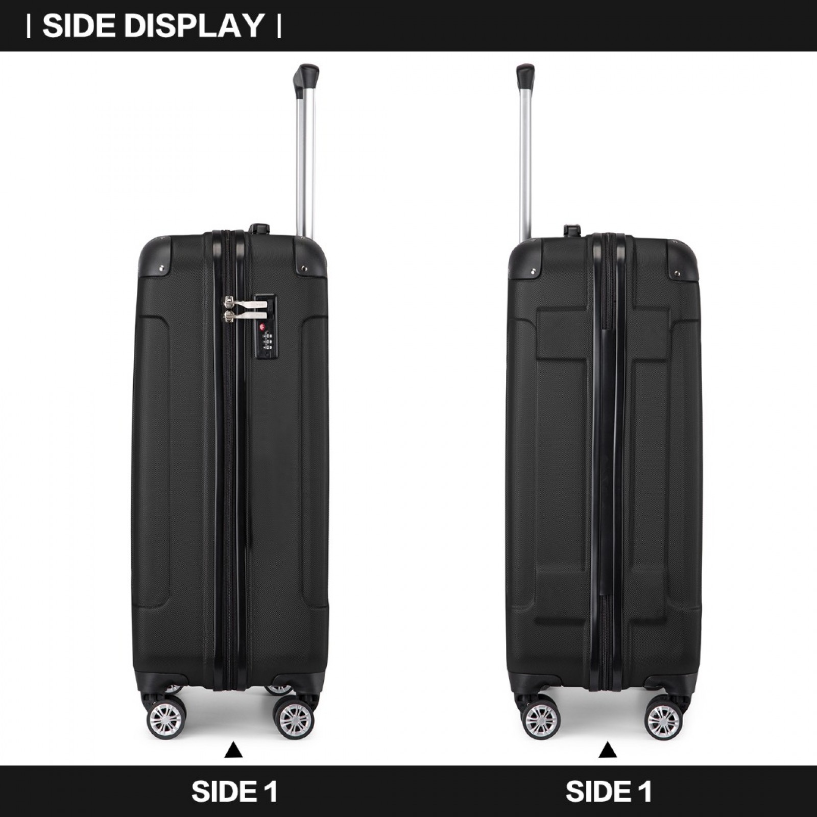 K1777-1L - Kono 19 Inch ABS Lightweight Compact Hard Shell Cabin Suitcase Travel Carry-On Luggage - Black