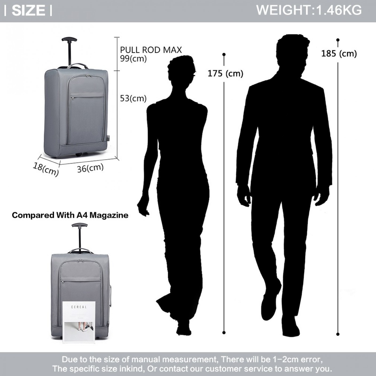 K1873-2 - Kono CABIN SIZE SOFT SHELL HAND LUGGAGE - GREY