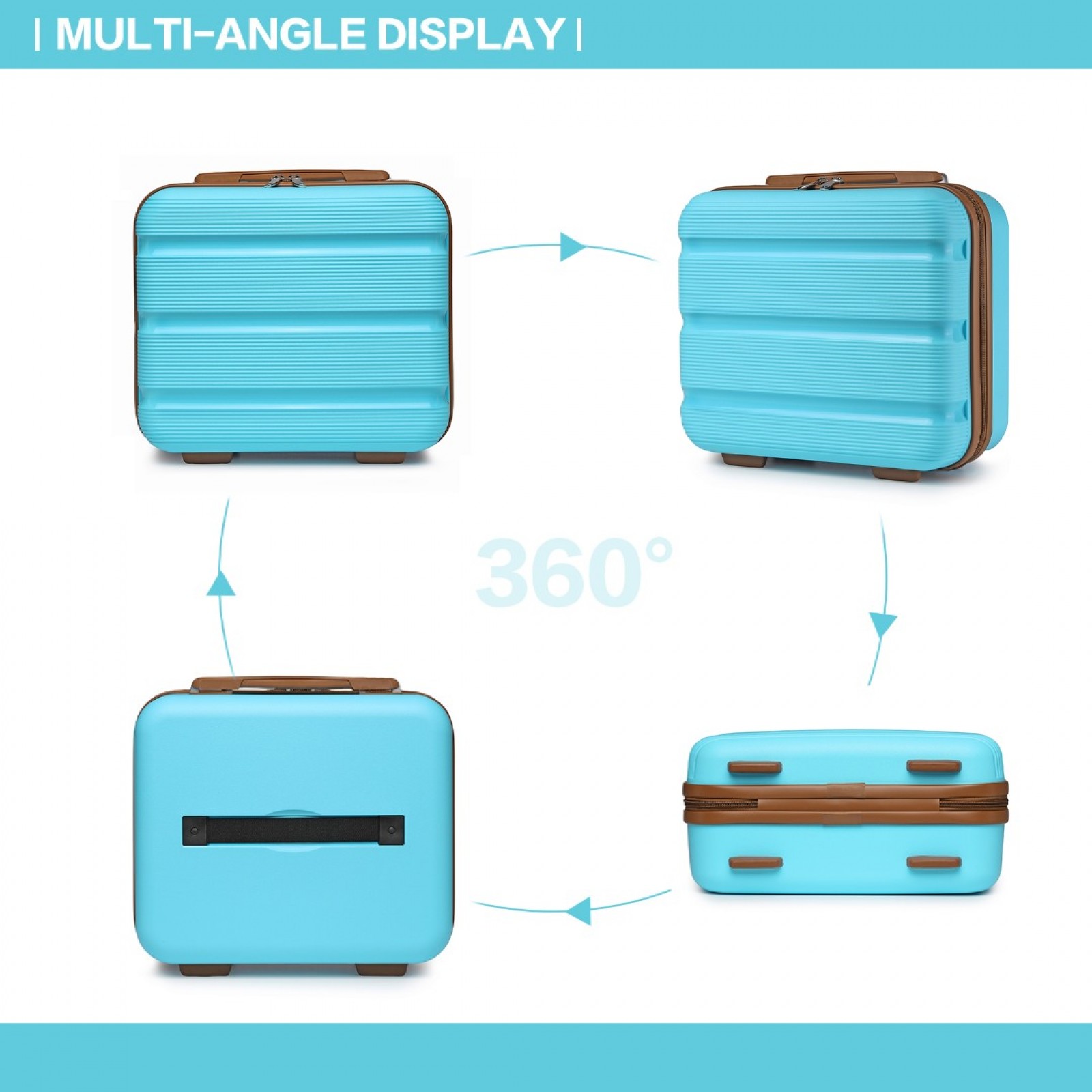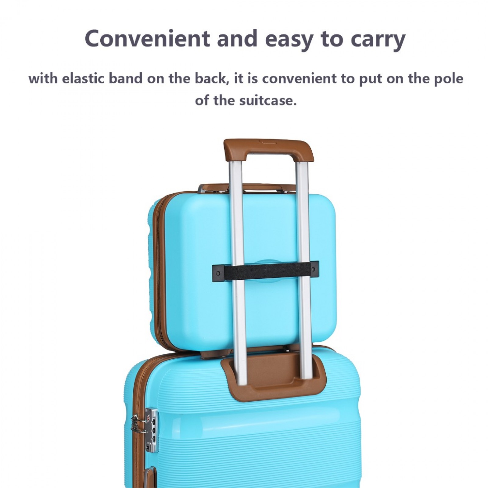 K2092L - Kono 14 Inch Bright Hard Shell PP Vanity Case - Blue and Brown