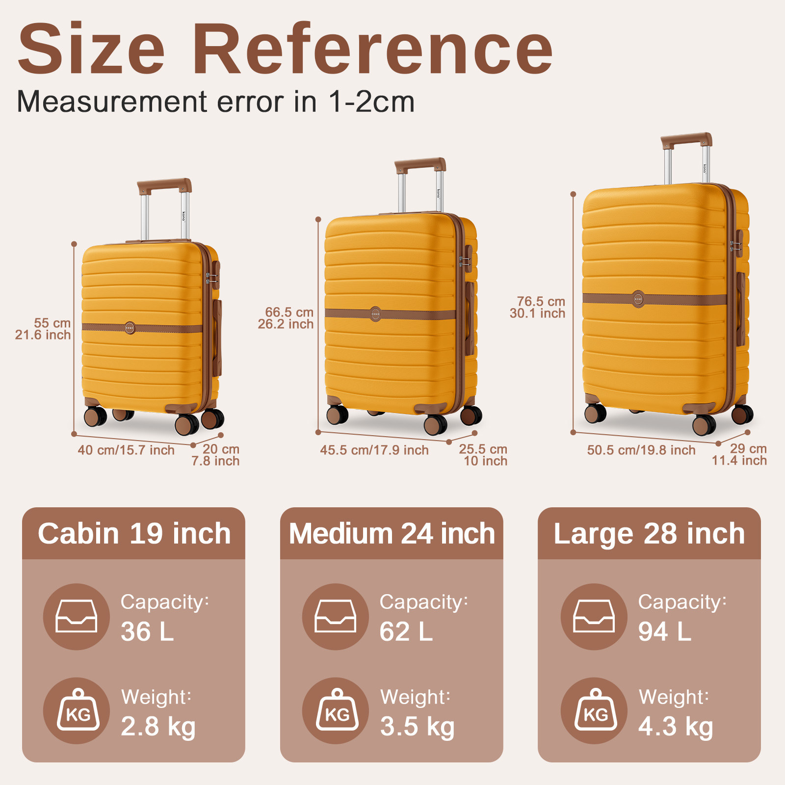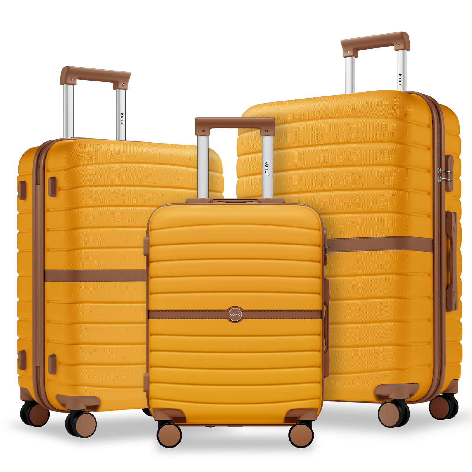 KSK2592 - Kono ABS+PC Striped Design with Colour-Block Details 3-Piece Hardshell Luggage Set with Spinner Wheels - Yellow and Brown