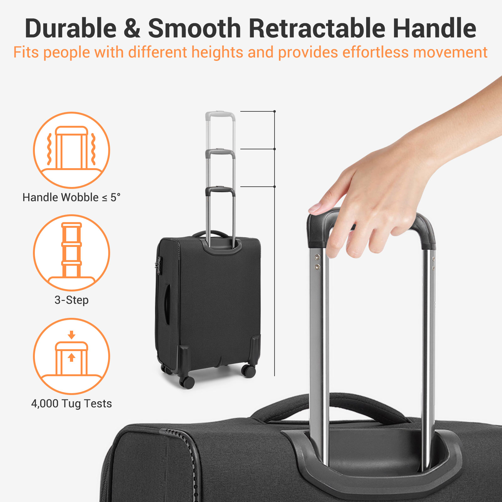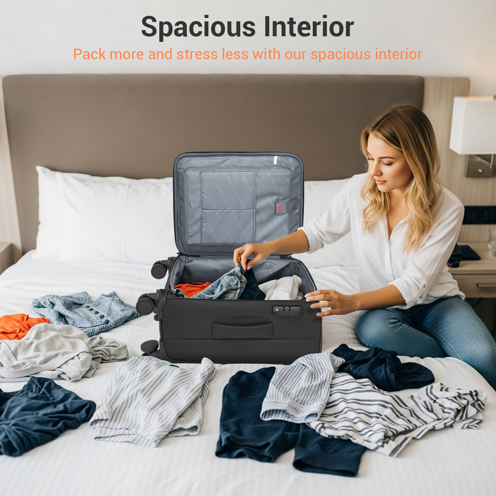 KSB2597 - British Traveller Sleek Tough 20 Inch Travel Soft-Shell Suitcase with Silent TPE Spinners, TSA Security and Laptop Sleeve - Black