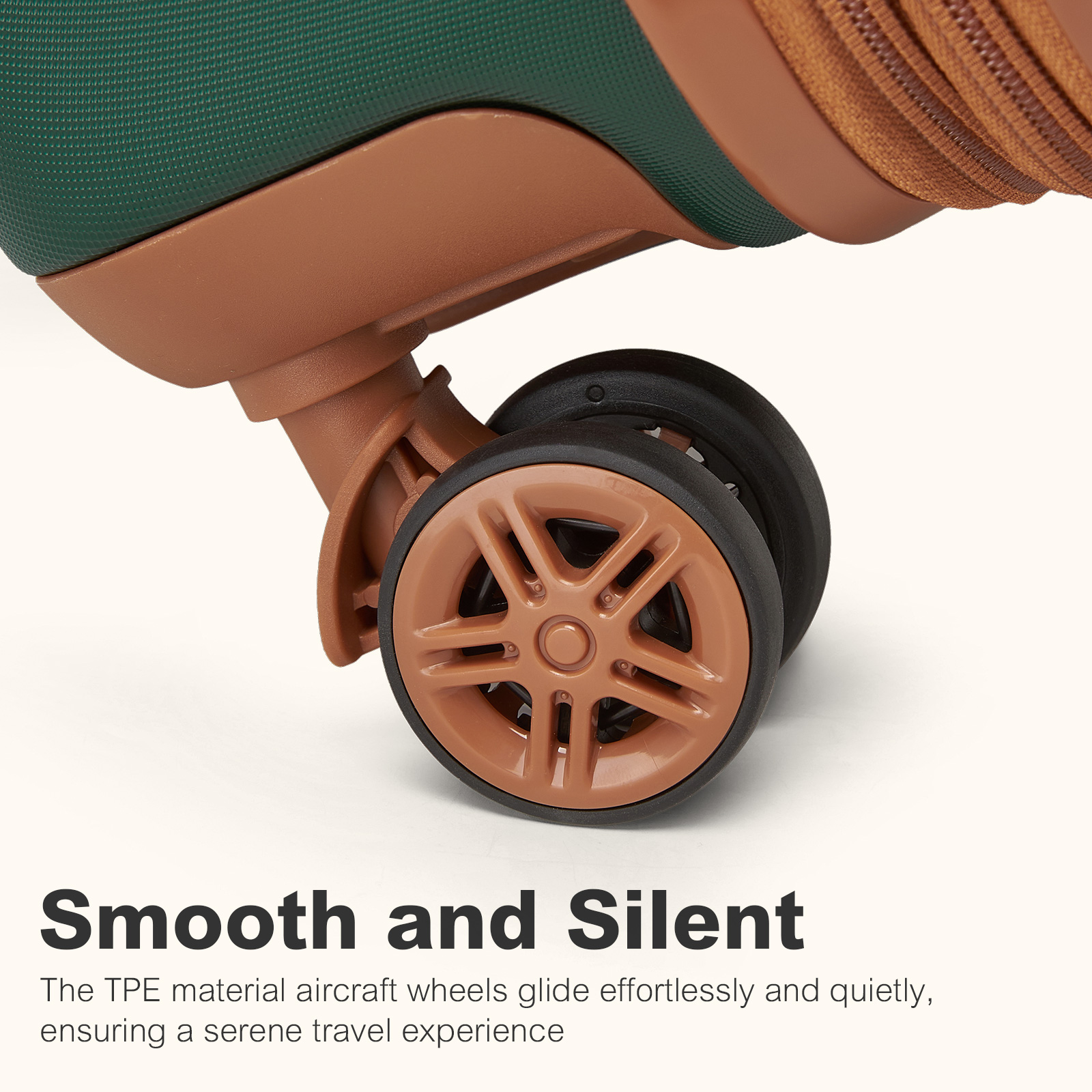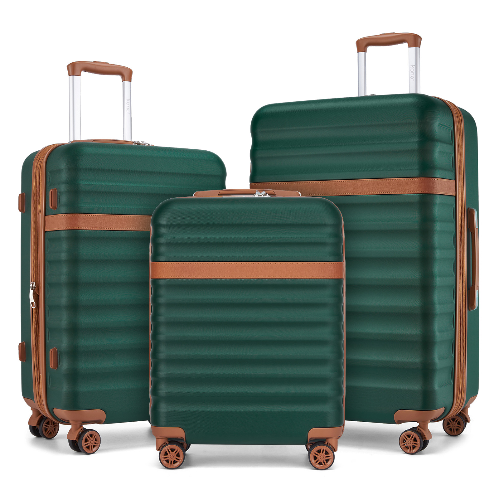 KSK2484 - Kono 3-Piece Expandable Luggage Set 20"/24"/28" Durable Hard Shell ABS+PC Suitcases with TSA Lock for Secure Travel - Green and Brown
