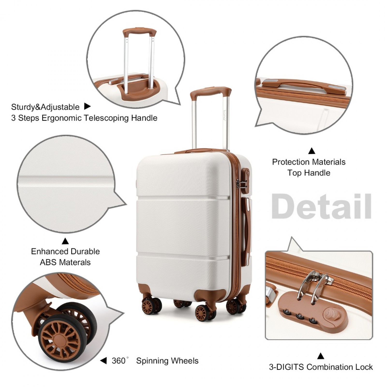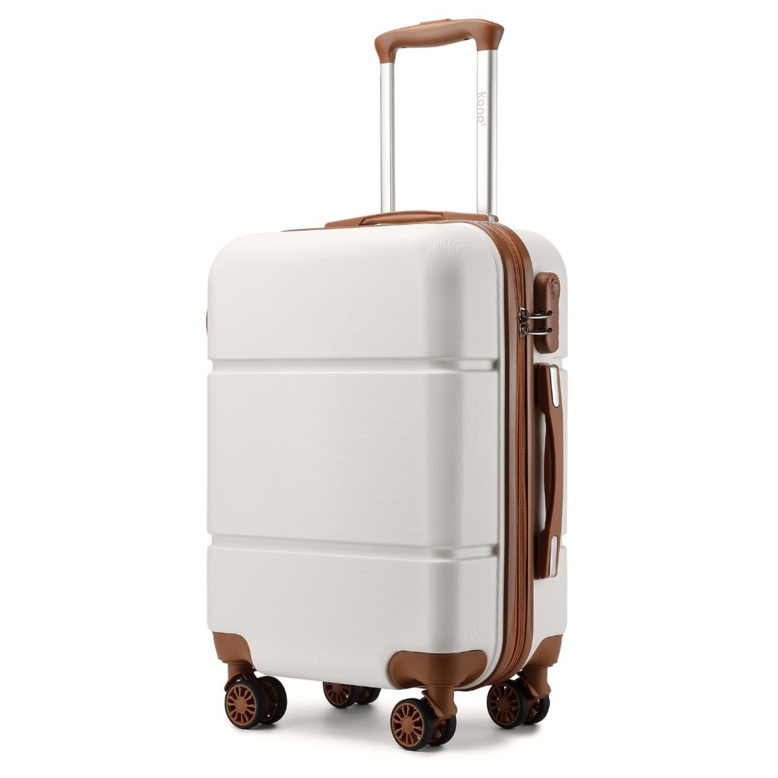 KSK2485 - Kono 20 Inch Premium ABS Cabin Carry-On Suitcase with Secure Combination Lock for Effortless Travel - Cream And Brown