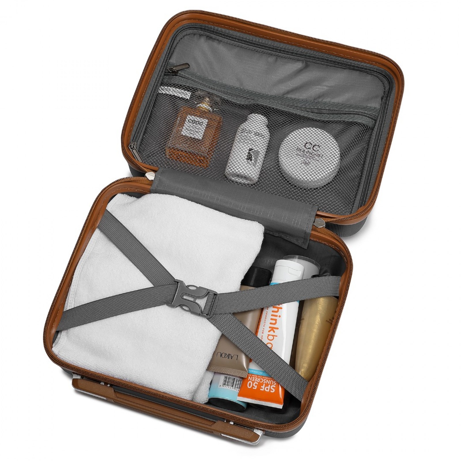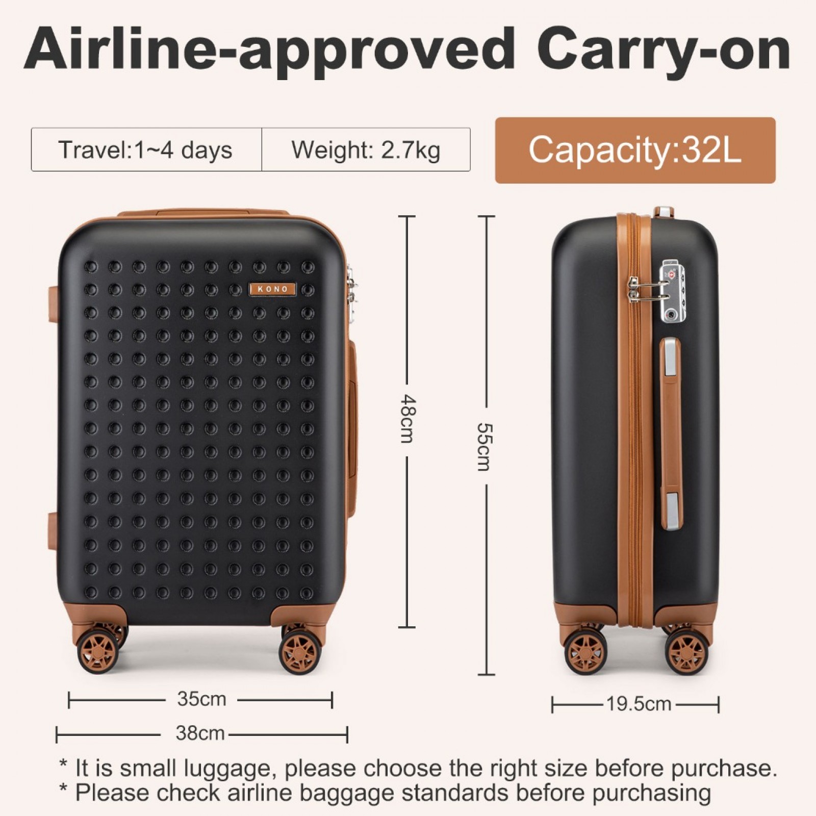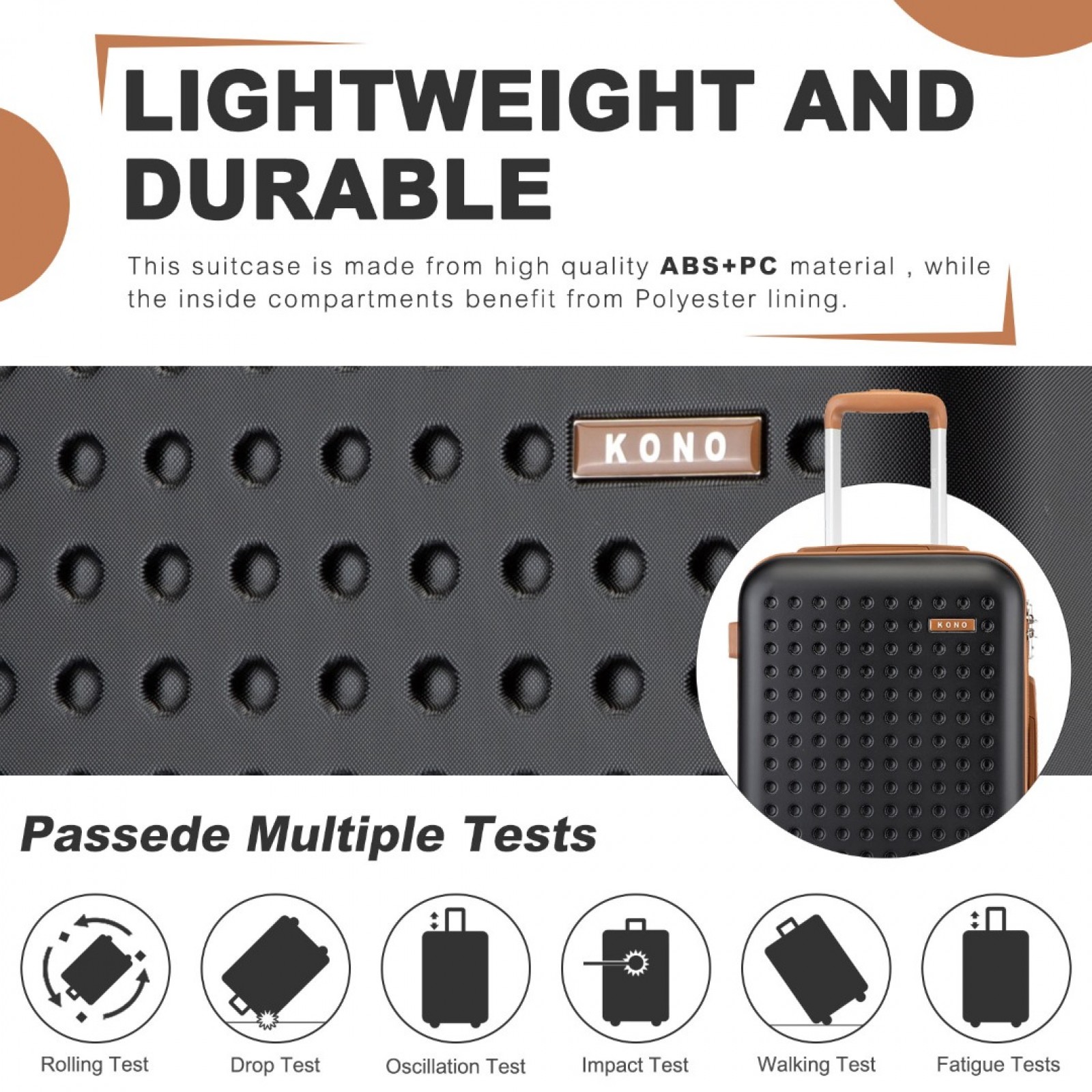KSK2486 - Kono Stylish ABS+PC Polka Dot Hard Shell Suitcase With TSA Lock And Vanity Case 4 Piece Set - Black And Brown