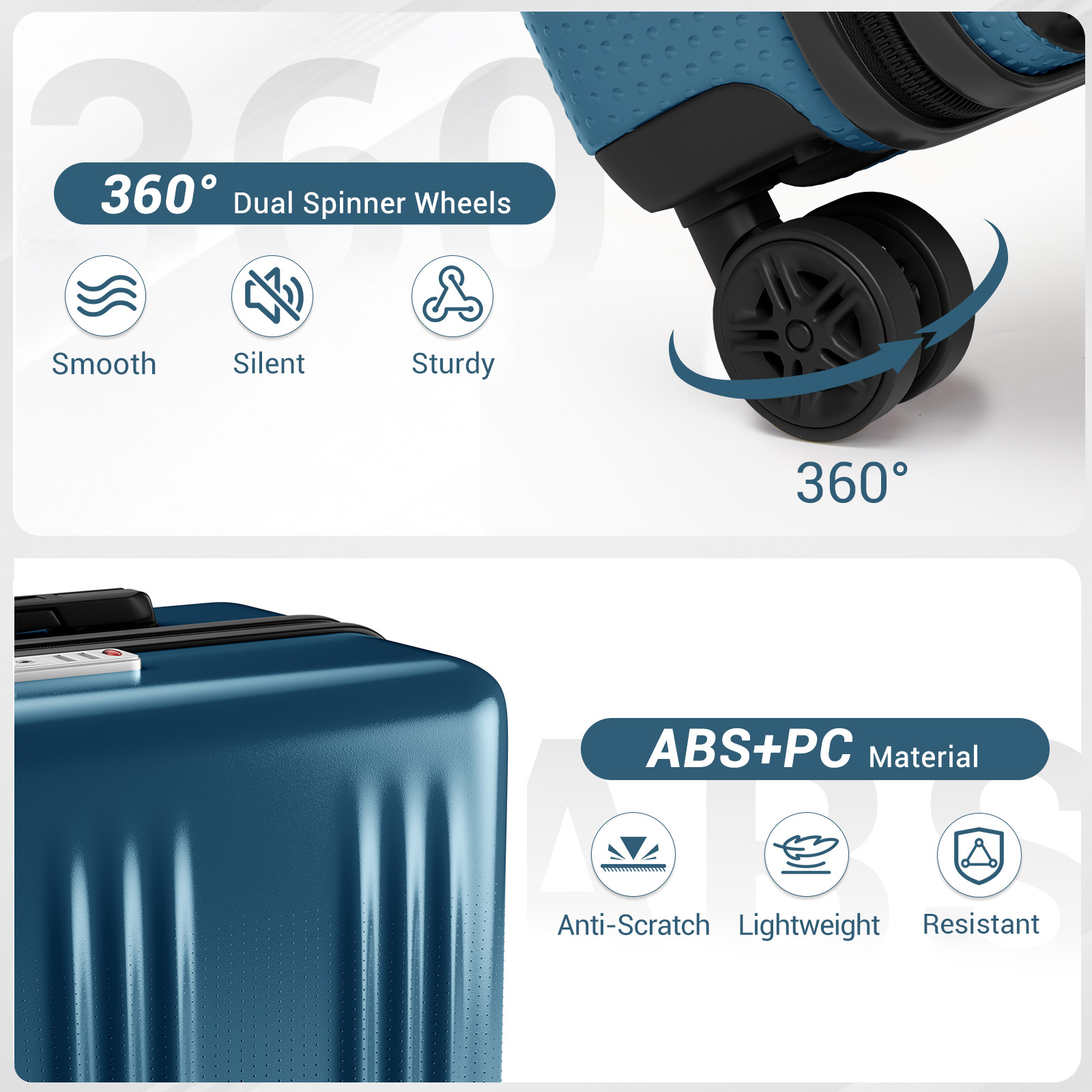 Equipped with TPE dual spinner wheels, this suitcase glides smoothly and quietly across different surfaces.