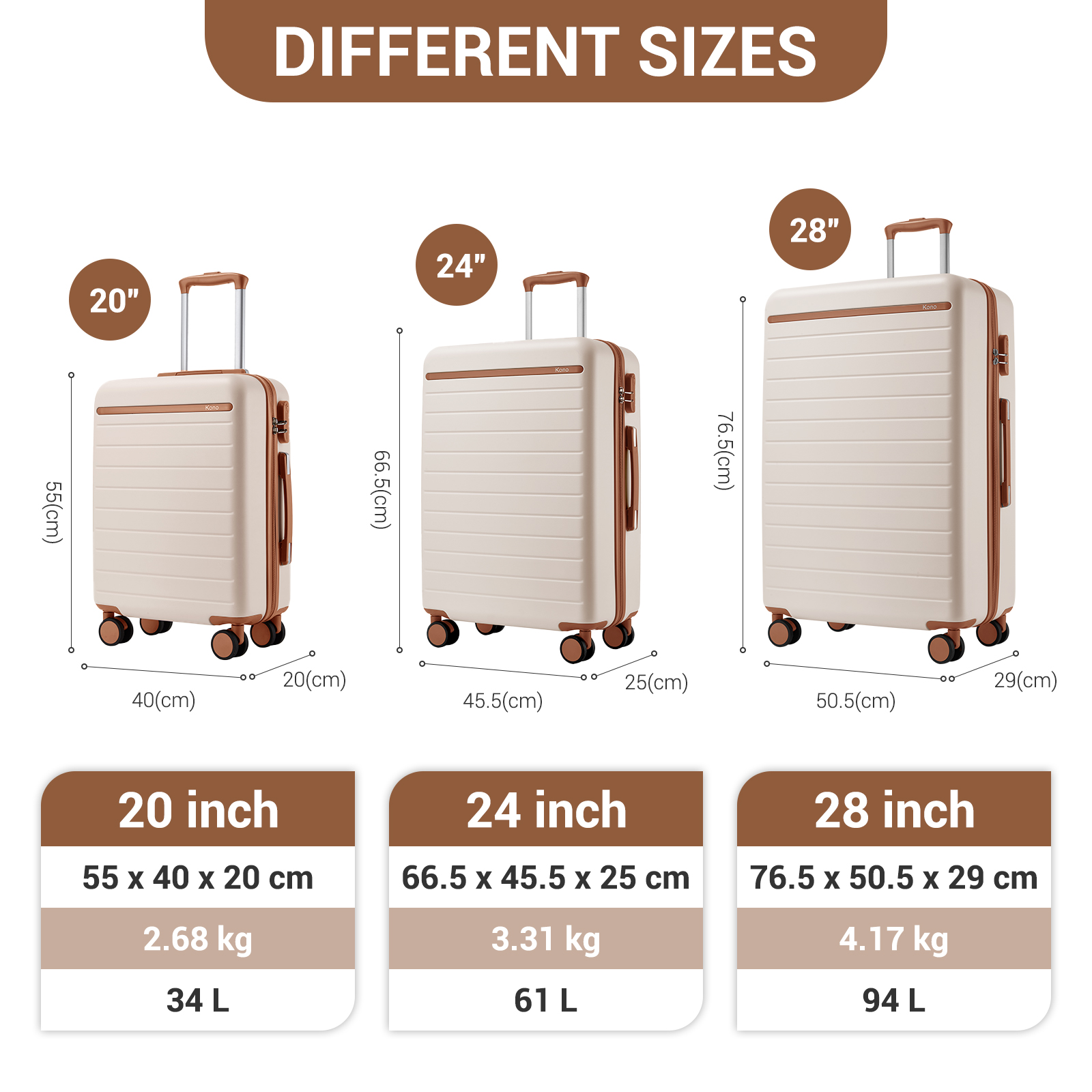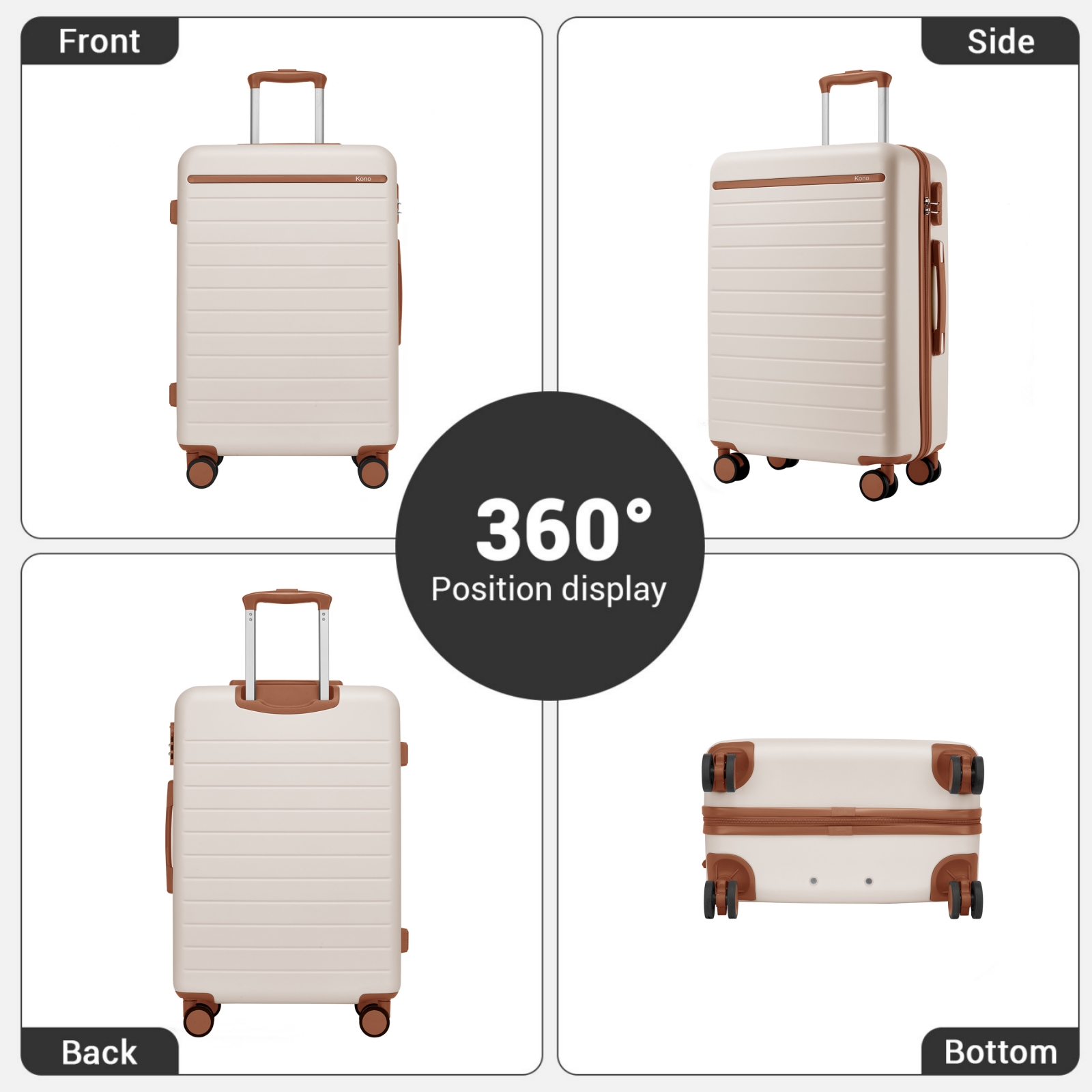 KSK2584 - Kono Scratch-Resistant 3-Piece Hard Shell Luggage Set with Horizontal Stripe Design, Brown Accents & Spinner Wheels - Cream and Brown