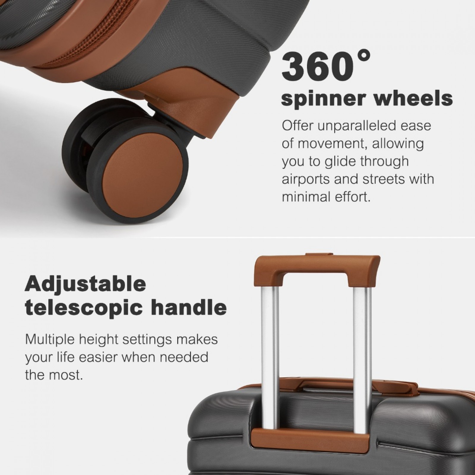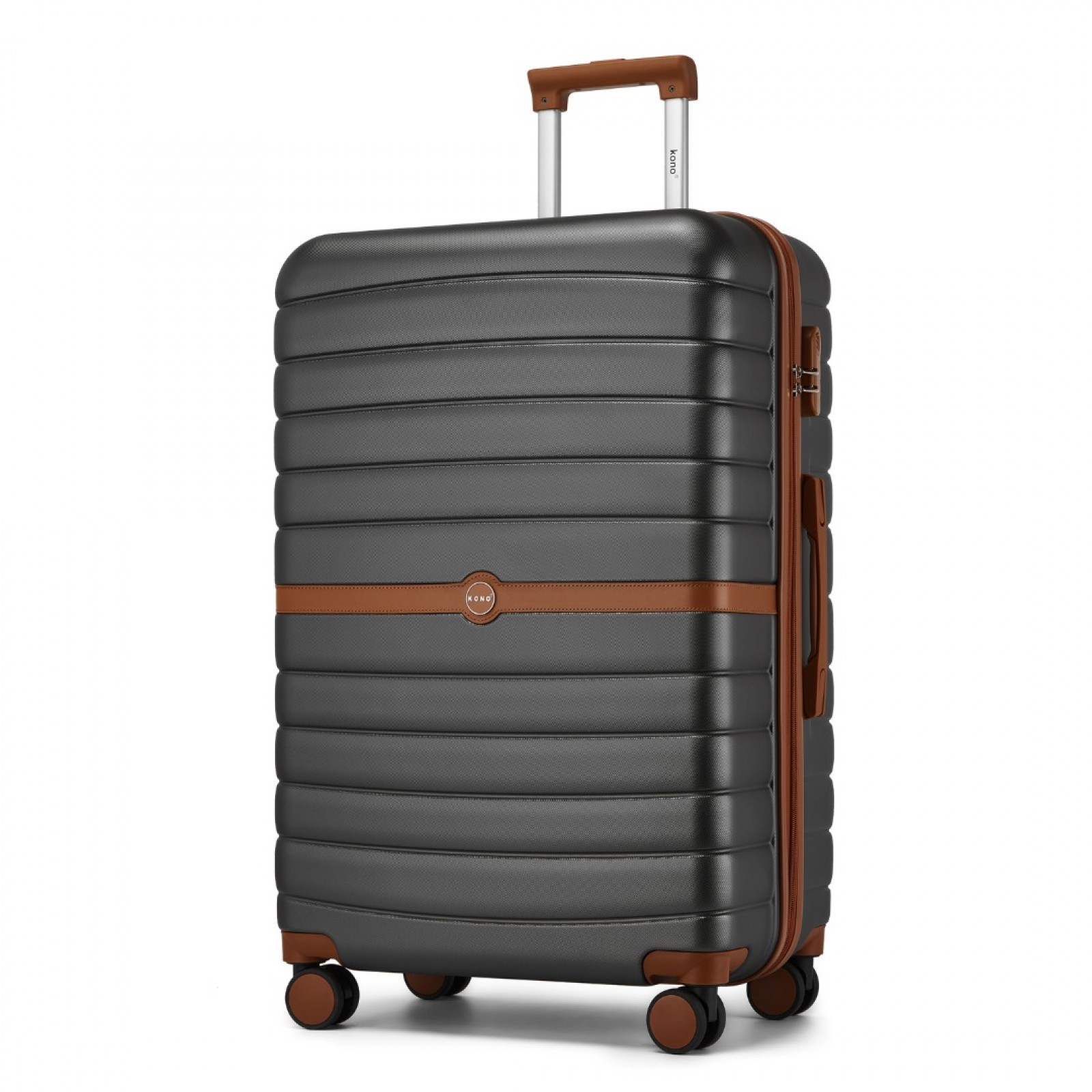 KSK2592 - Kono ABS+PC 28-Inch Striped Design with Colour-Block Details Large Checked Luggage for Longer Travels - Grey and Brown