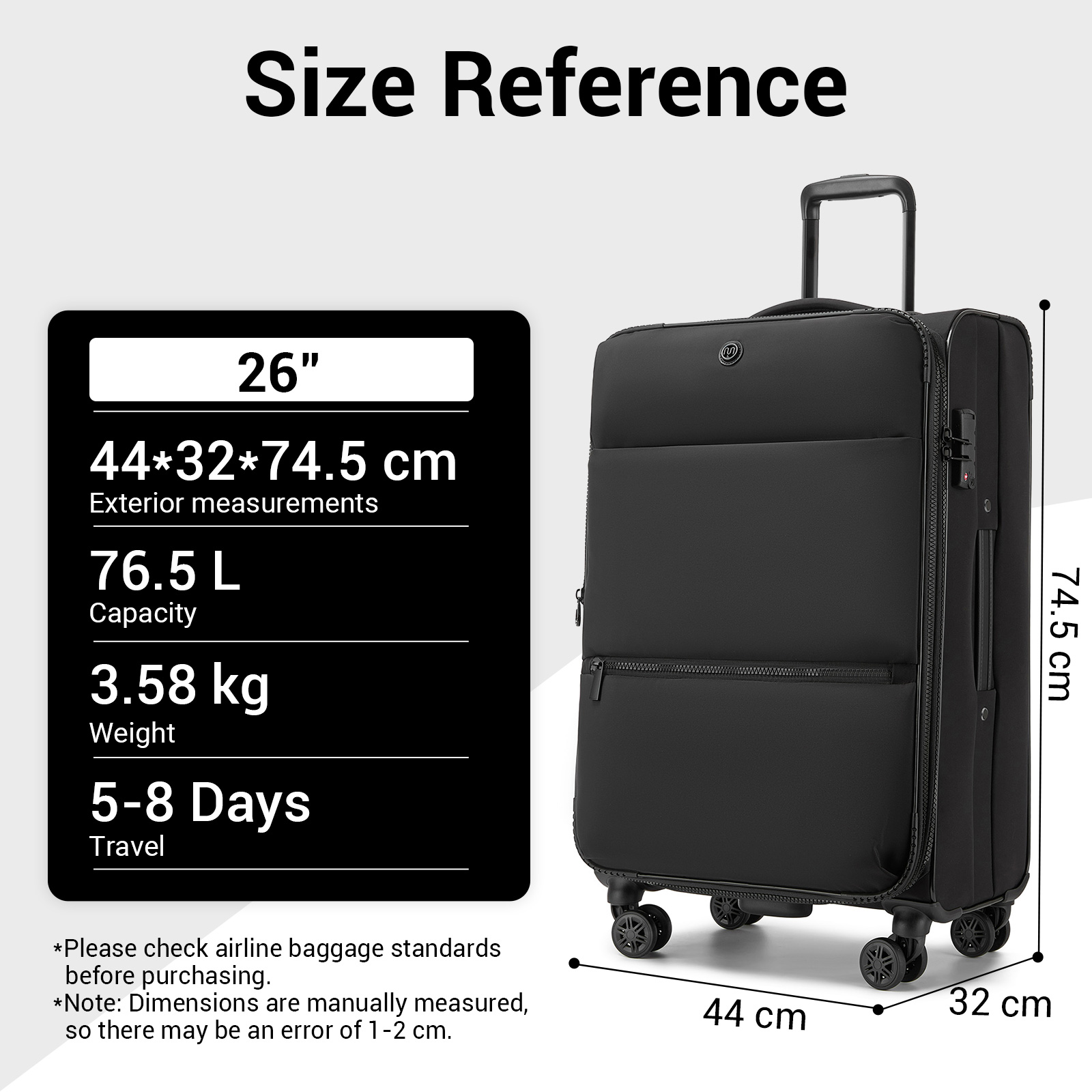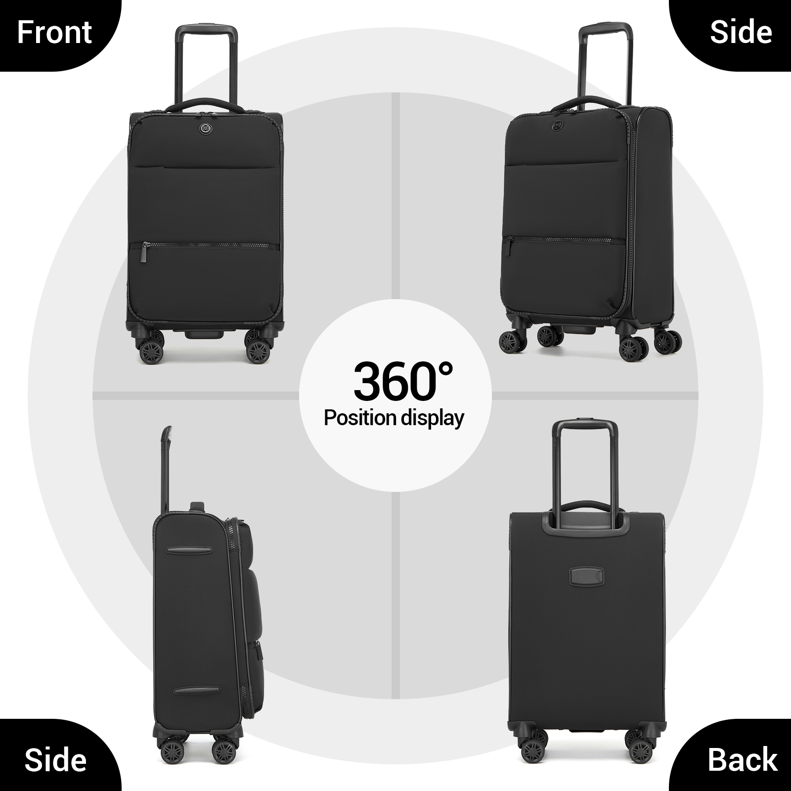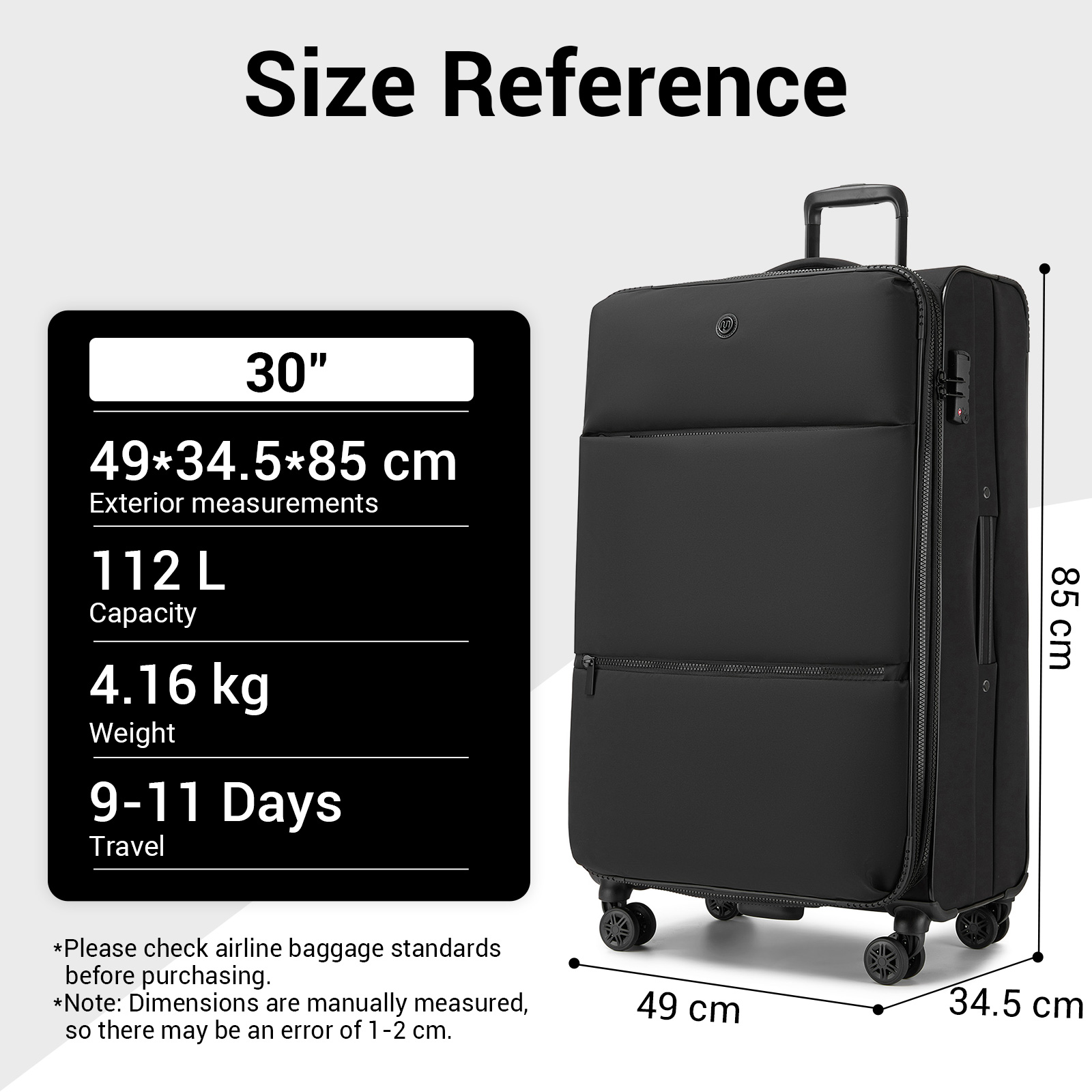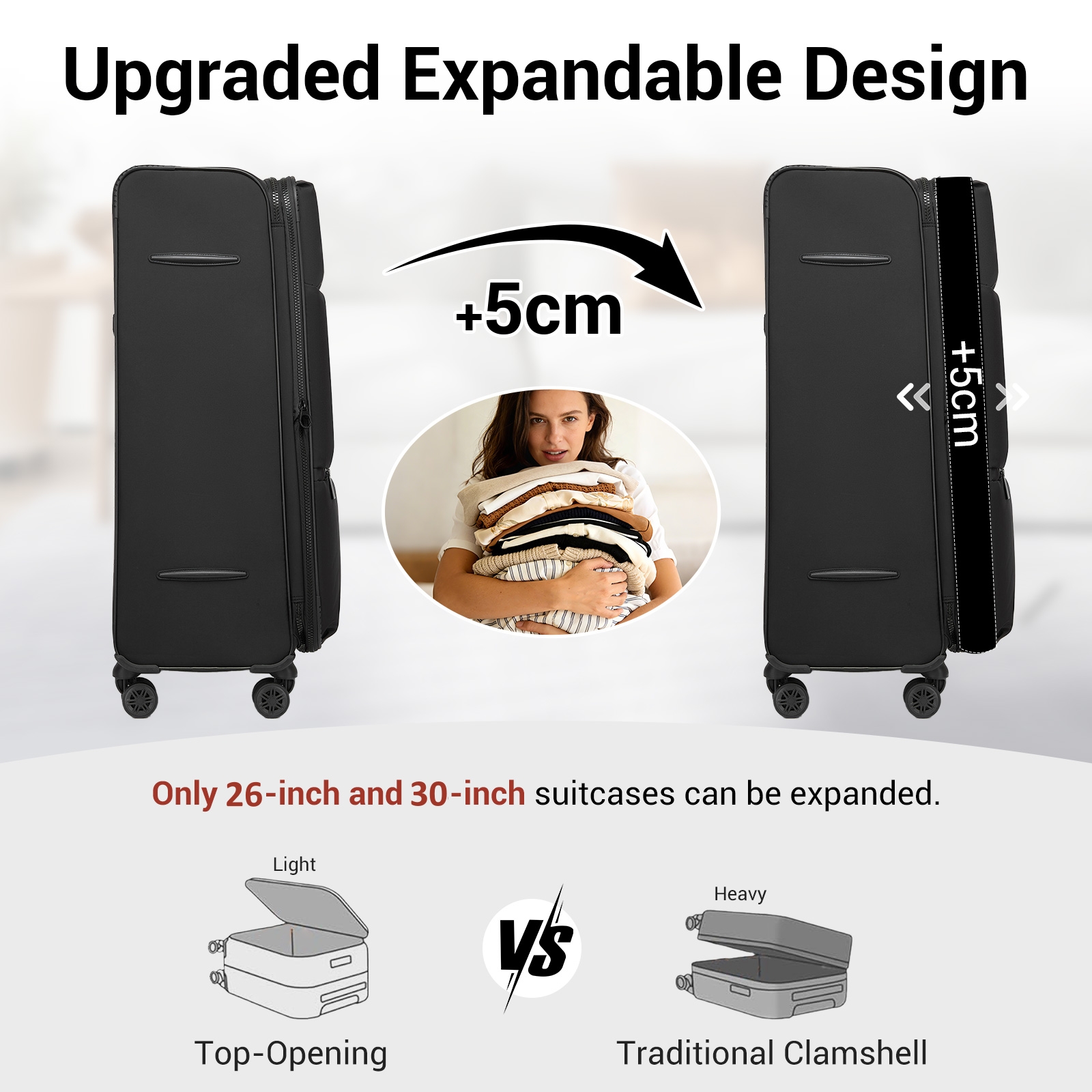 KSN2593 - 3 Piece Softshell Expandable Luggage Set 20/26/30 Inch, Lightweigh Suitcase with Silent Wheels & Organised Interior for Travel - Black