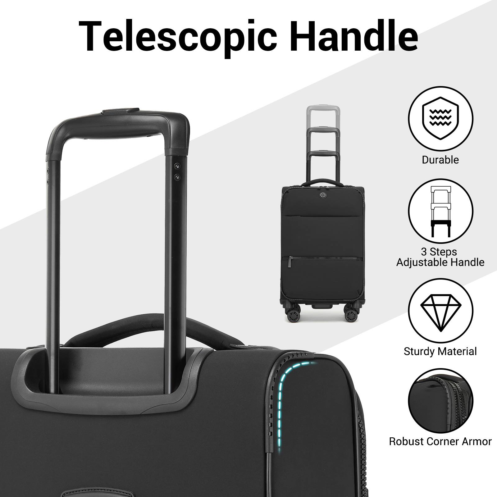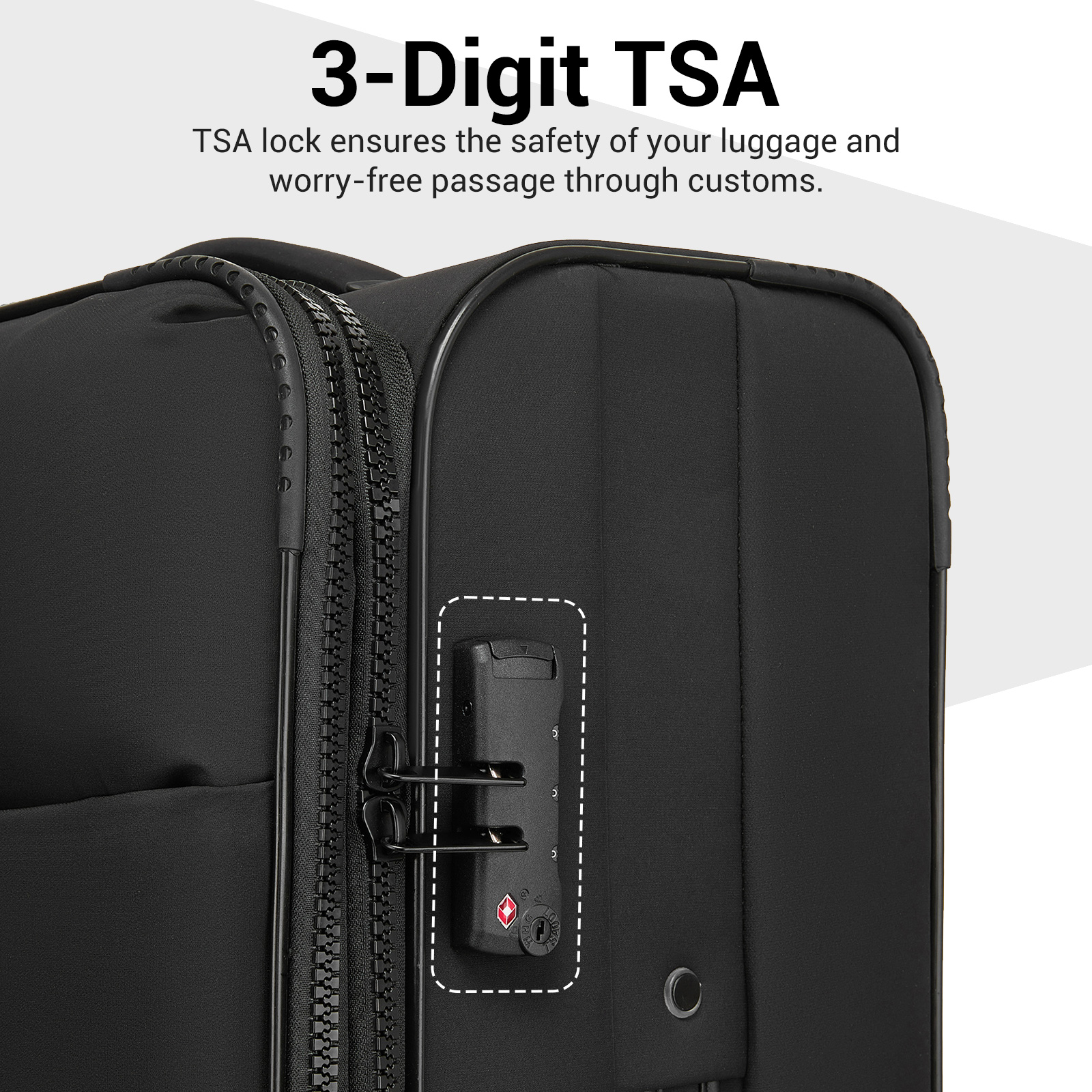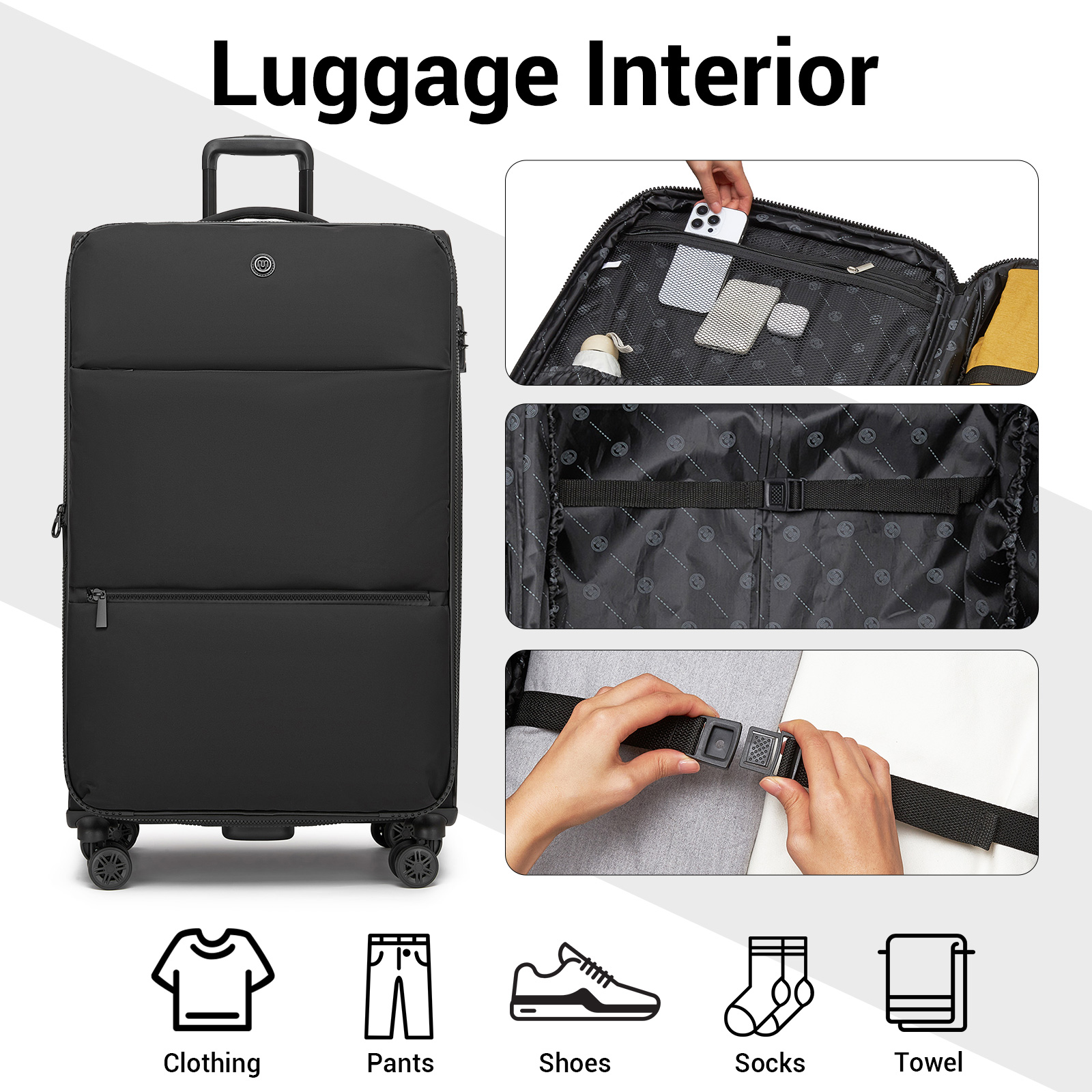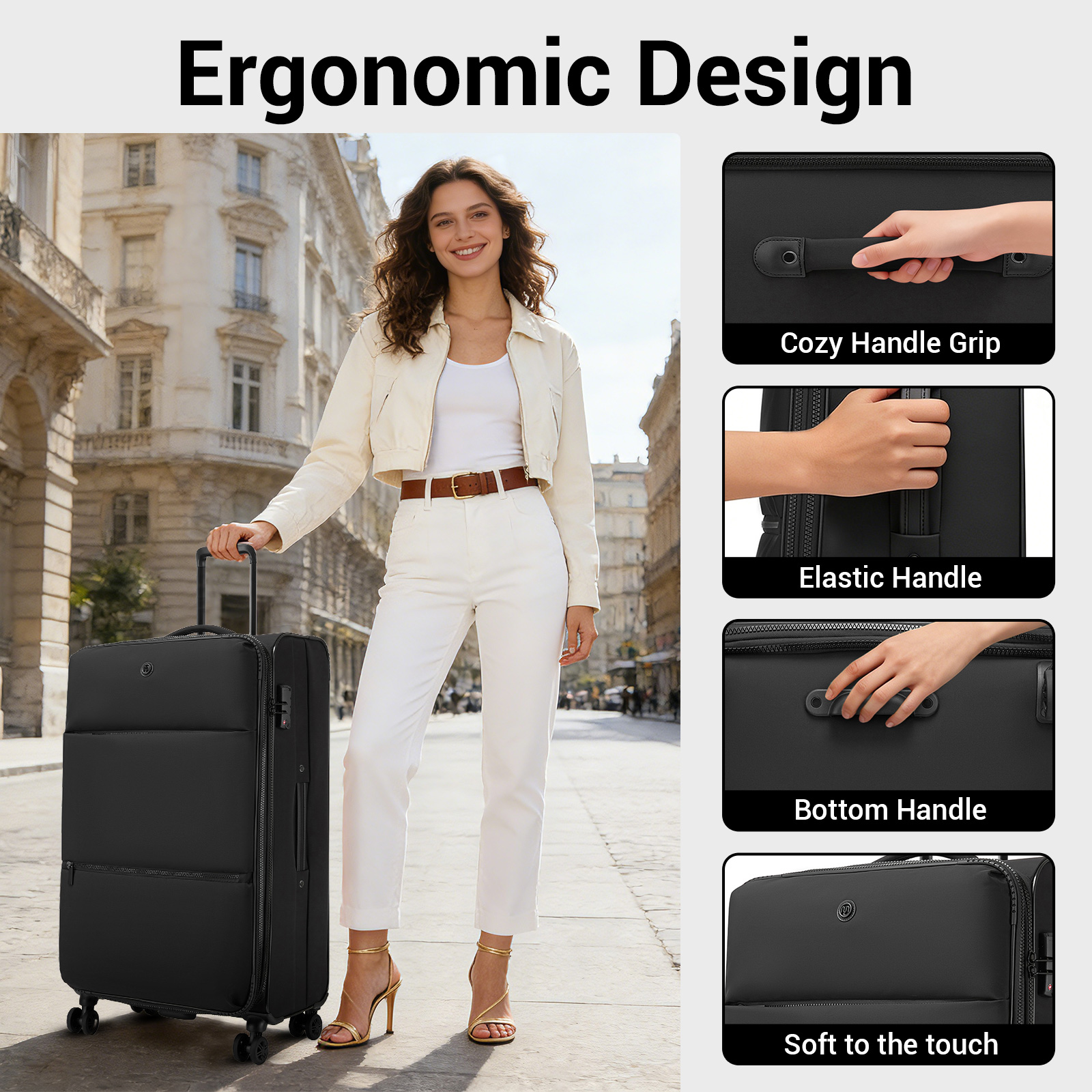 KSN2593 - 3 Piece Softshell Expandable Luggage Set 20/26/30 Inch, Lightweigh Suitcase with Silent Wheels & Organised Interior for Travel - Black