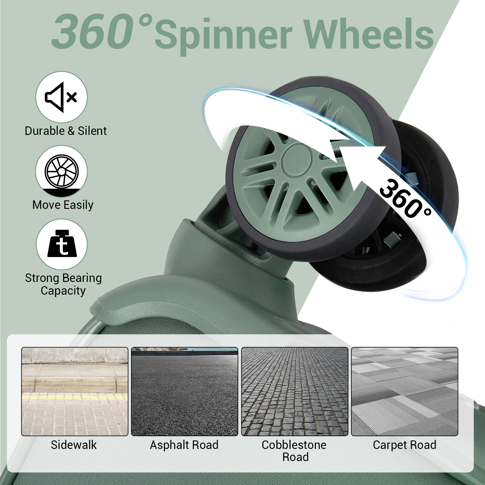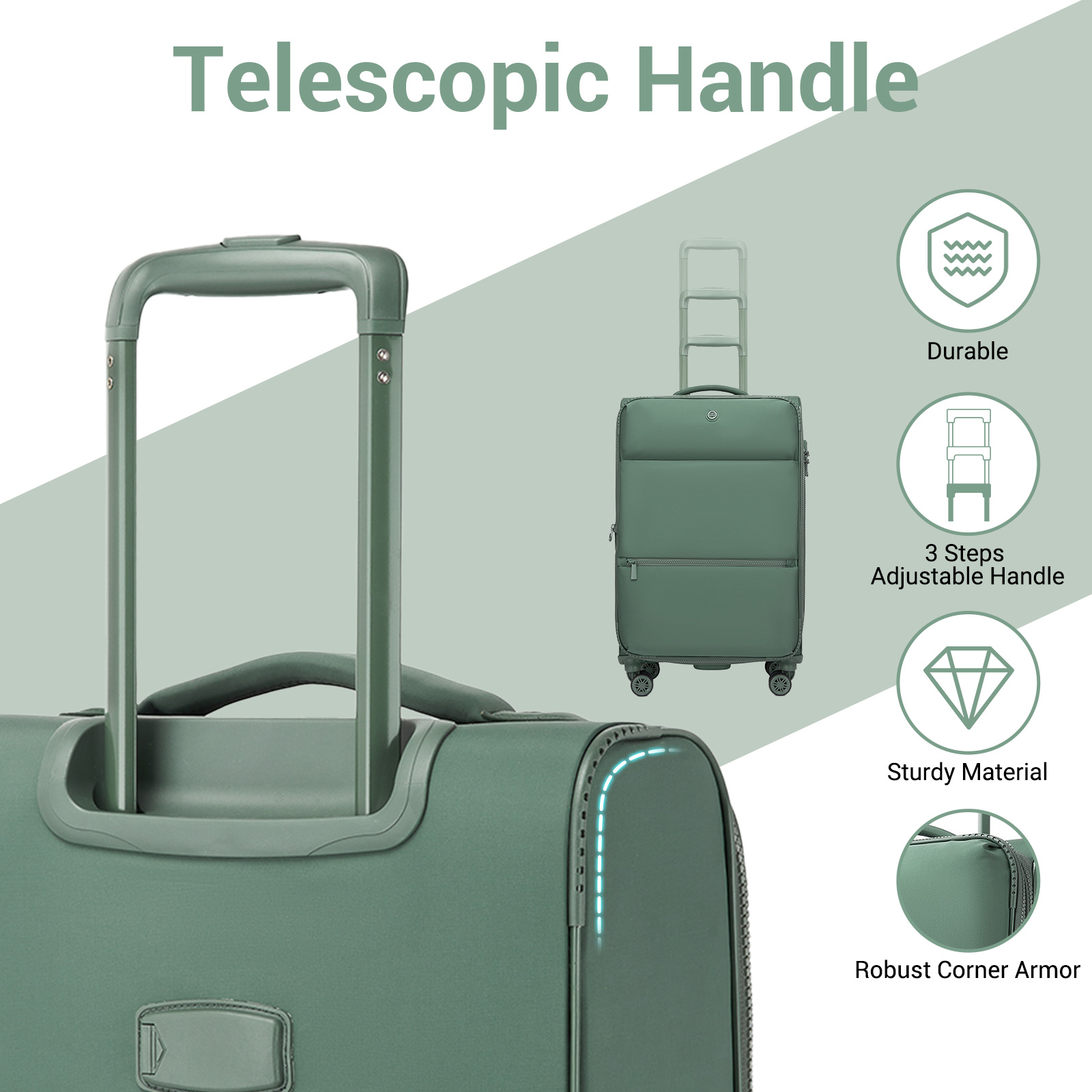 Adjustable telescopic handle and smooth TPE silent spinner wheels offer excellent manoeuvrability.
