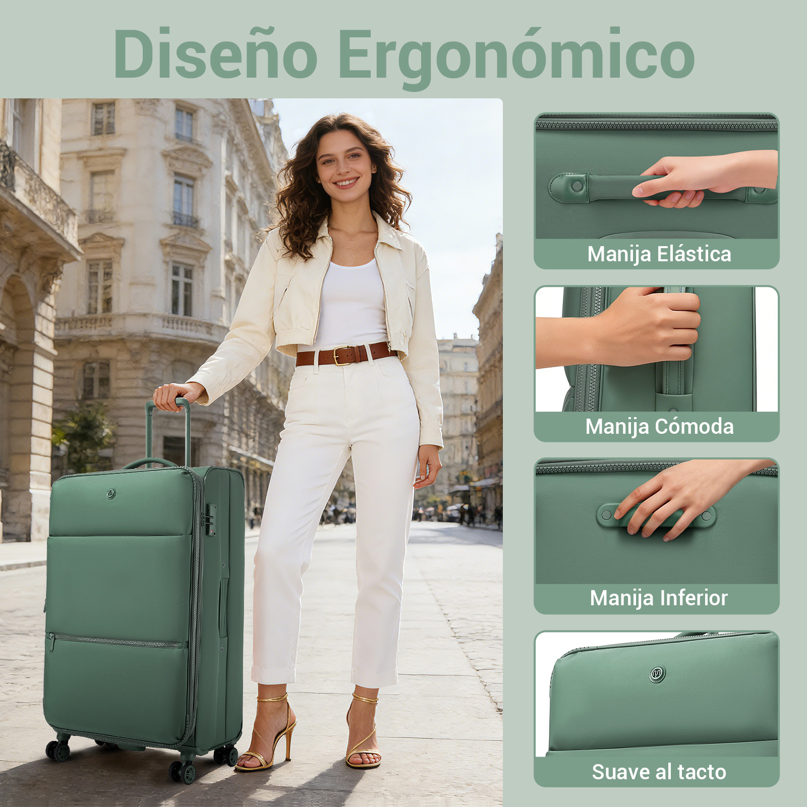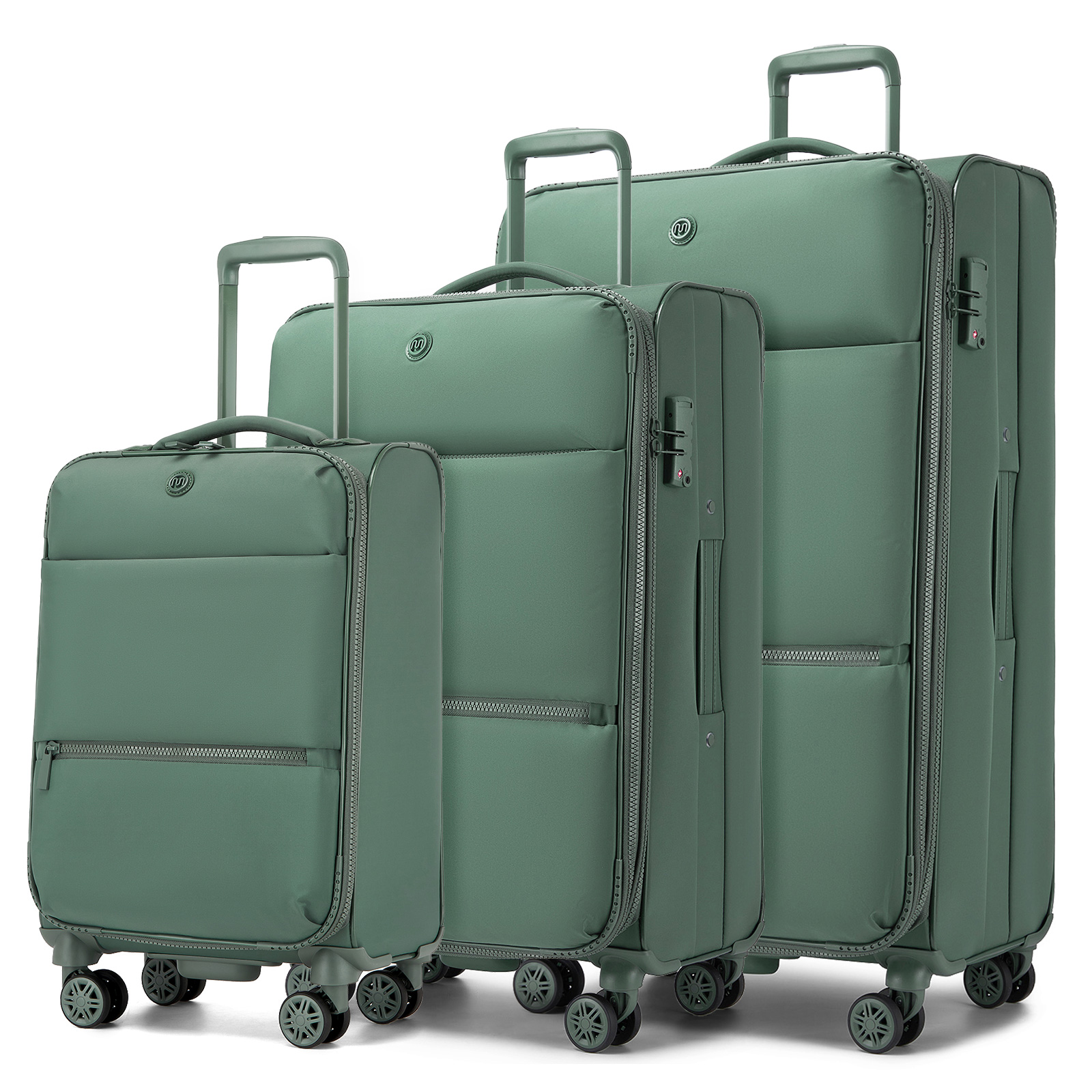 KSN2593 - 3 Piece Softshell Expandable Luggage Set 20/26/30 Inch, Lightweigh Suitcase with Silent Wheels & Organised Interior for Travel - Green
