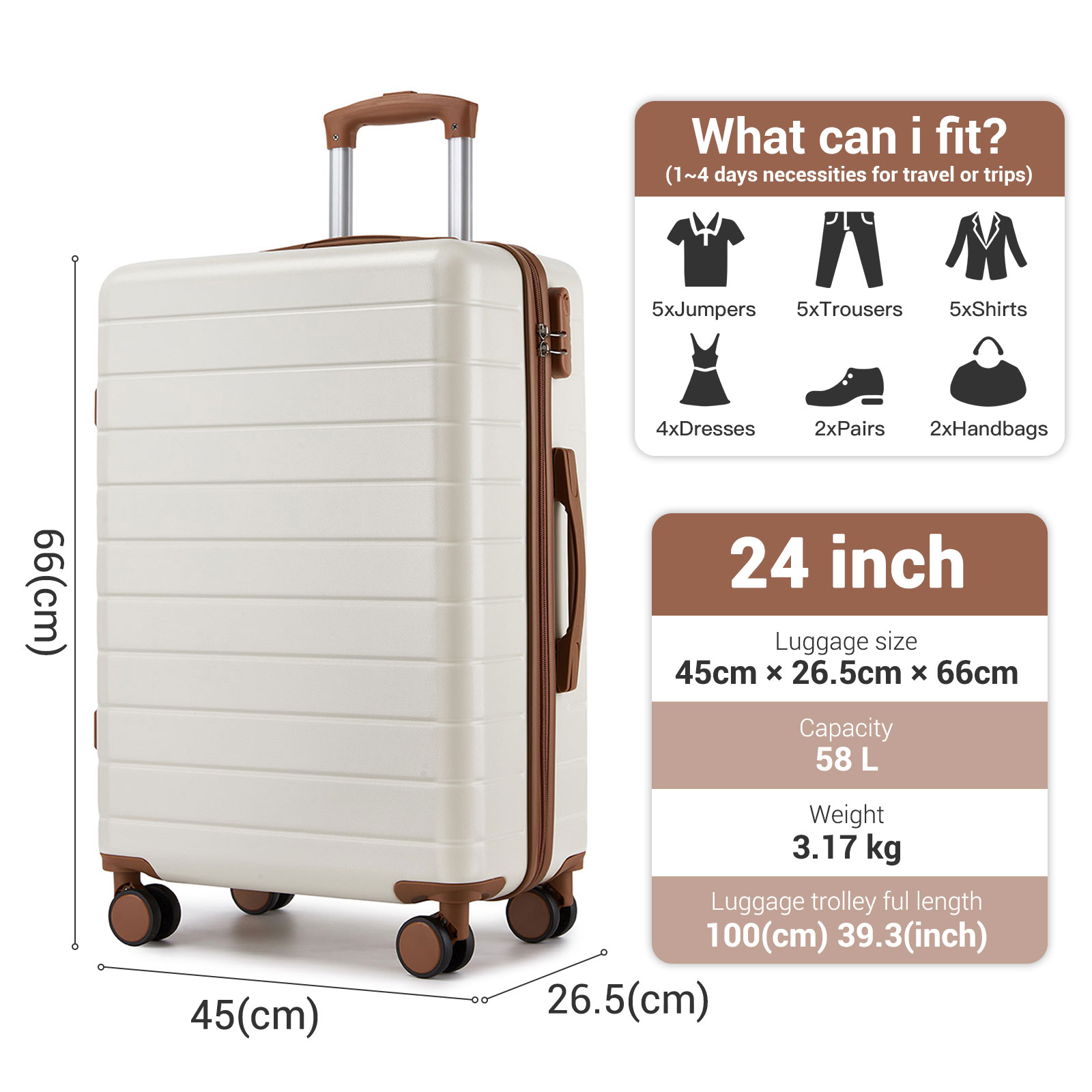 KSN2691 - 24 Inch Checked Luggage, Durable ABS Hard Shell Suitcase with 360 Silent Spinner Wheels & Secure Combination Lock - Cream And Brown