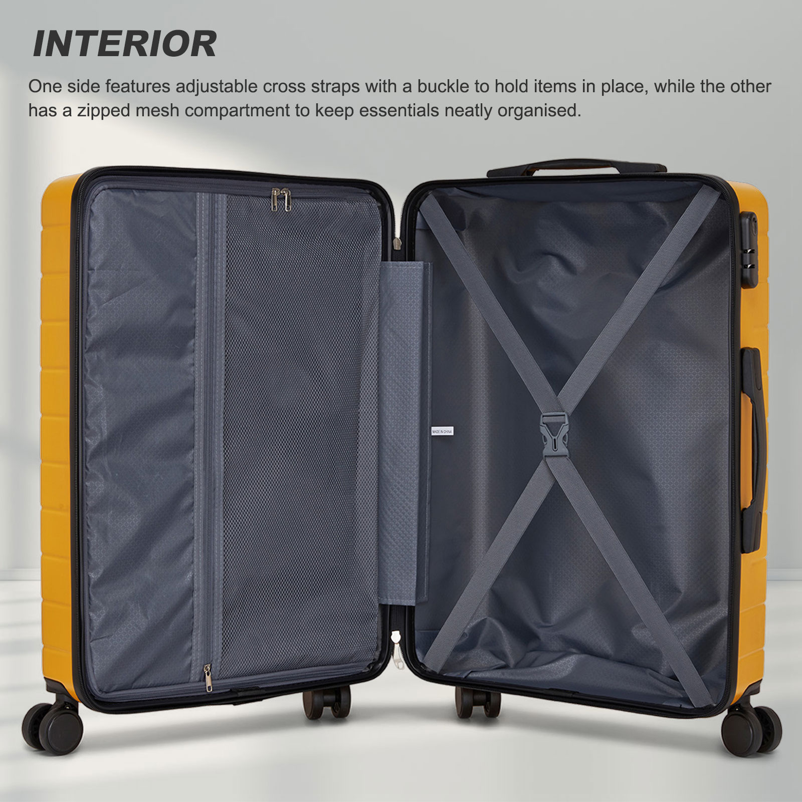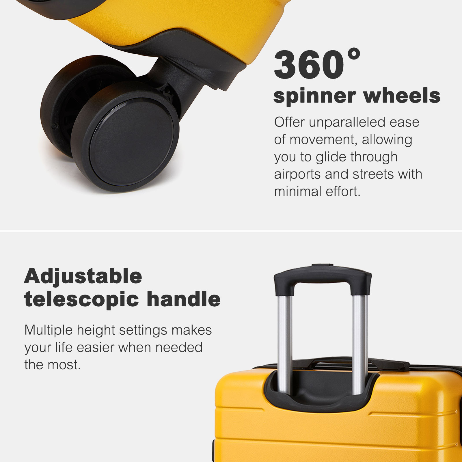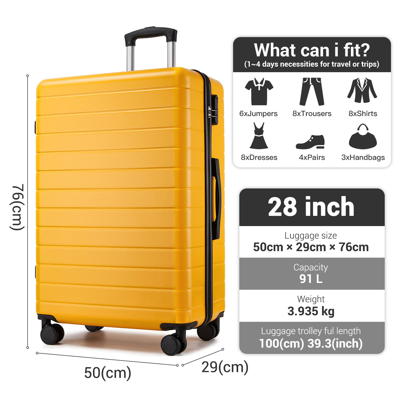 KSN2691 - 28 Inch Large Checked Luggage, Premium ABS Hard Shell Suitcase with 360 Silent Wheels & Secure Combination Lock - Yellow