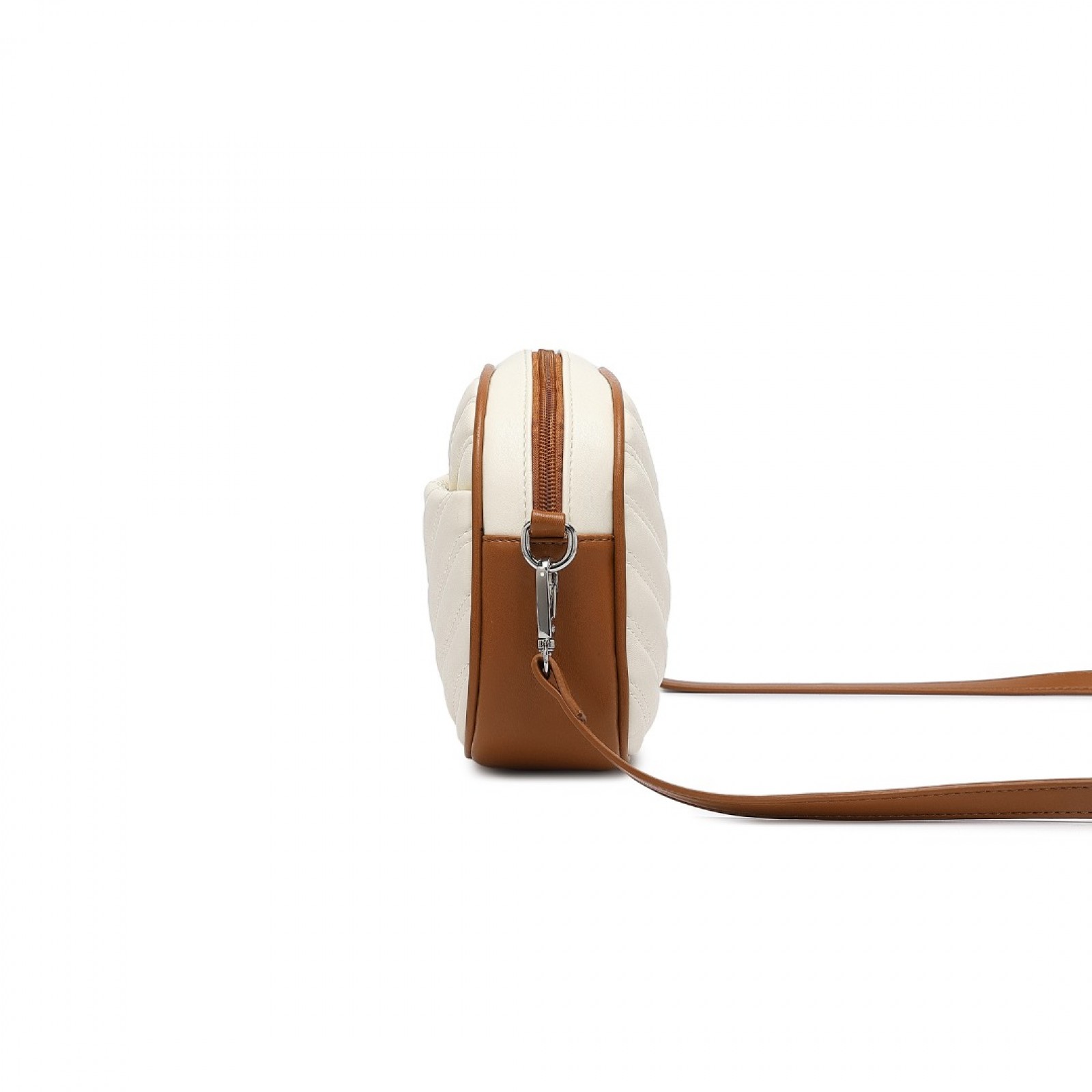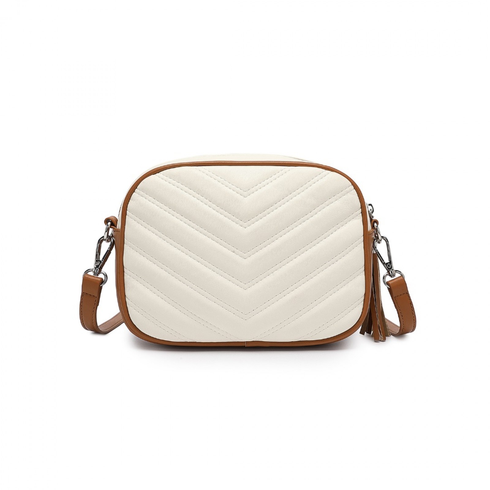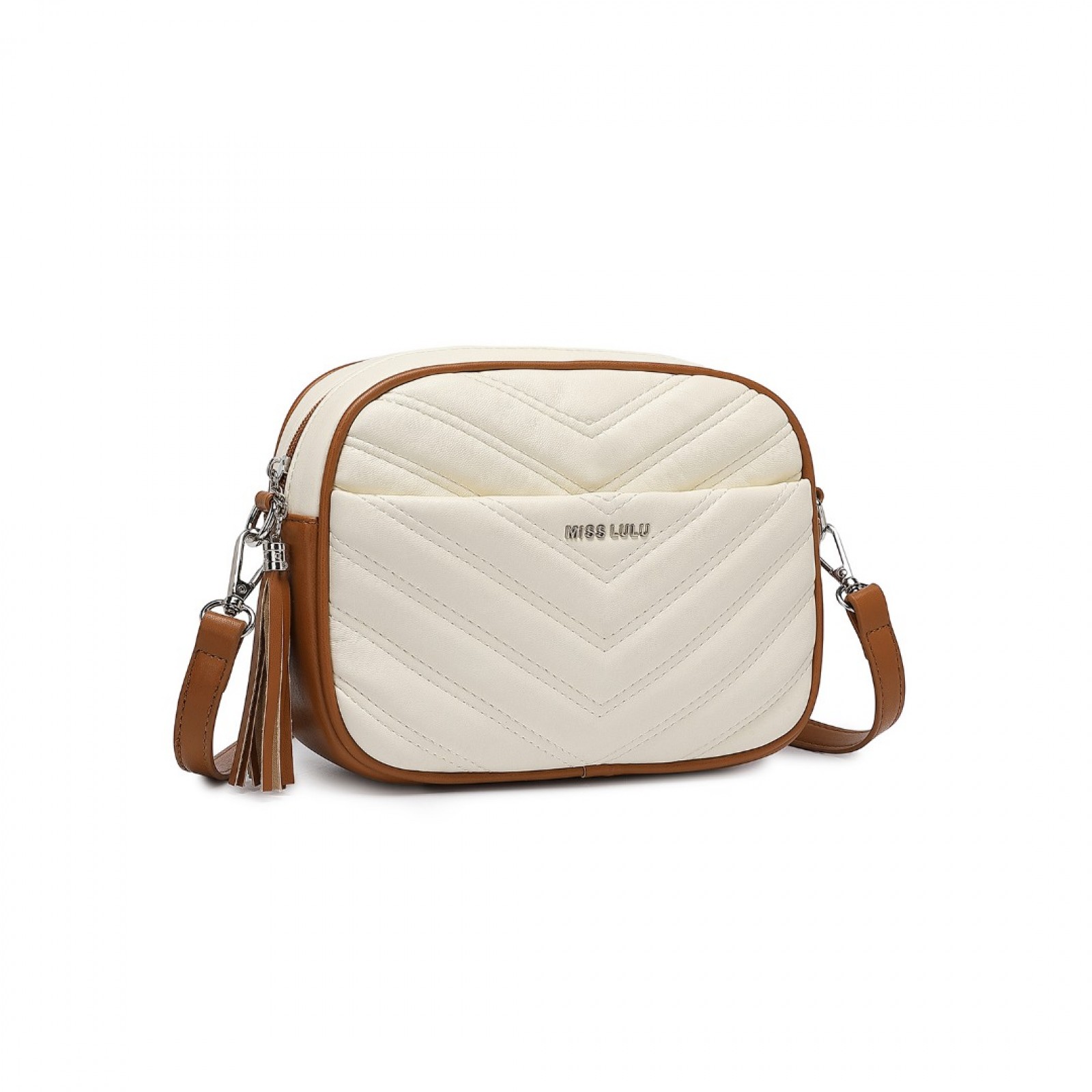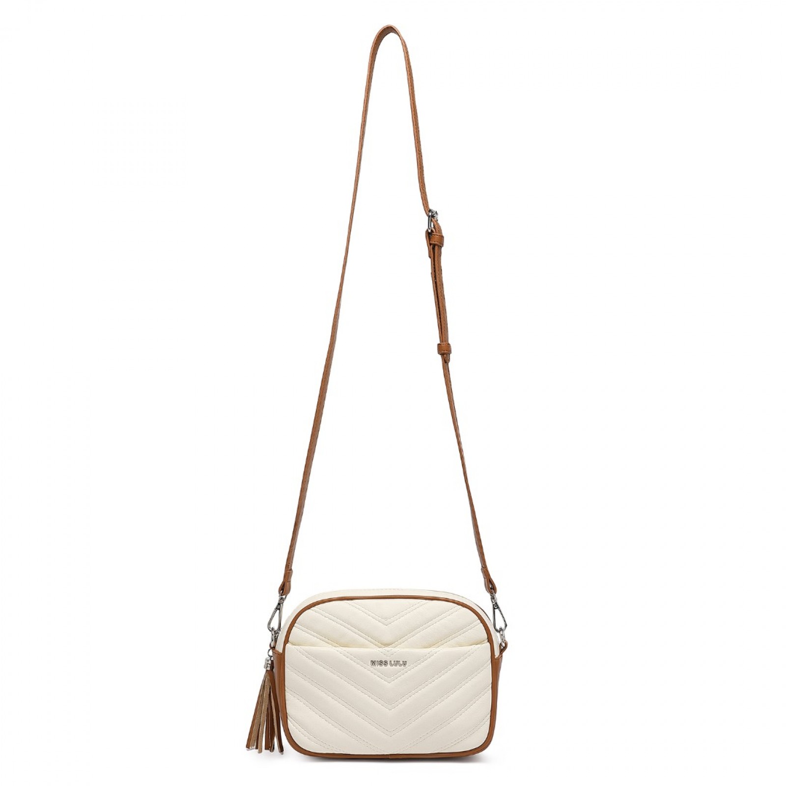 LA2119 - Miss LuLu Lightweight Quilted Leather Cross body Bag - Beige And Brown