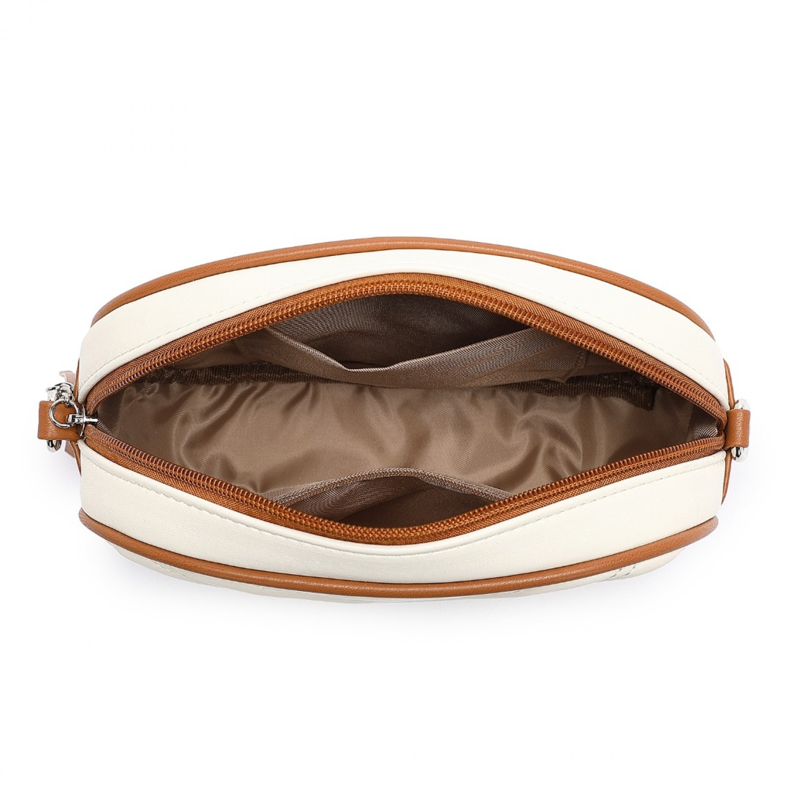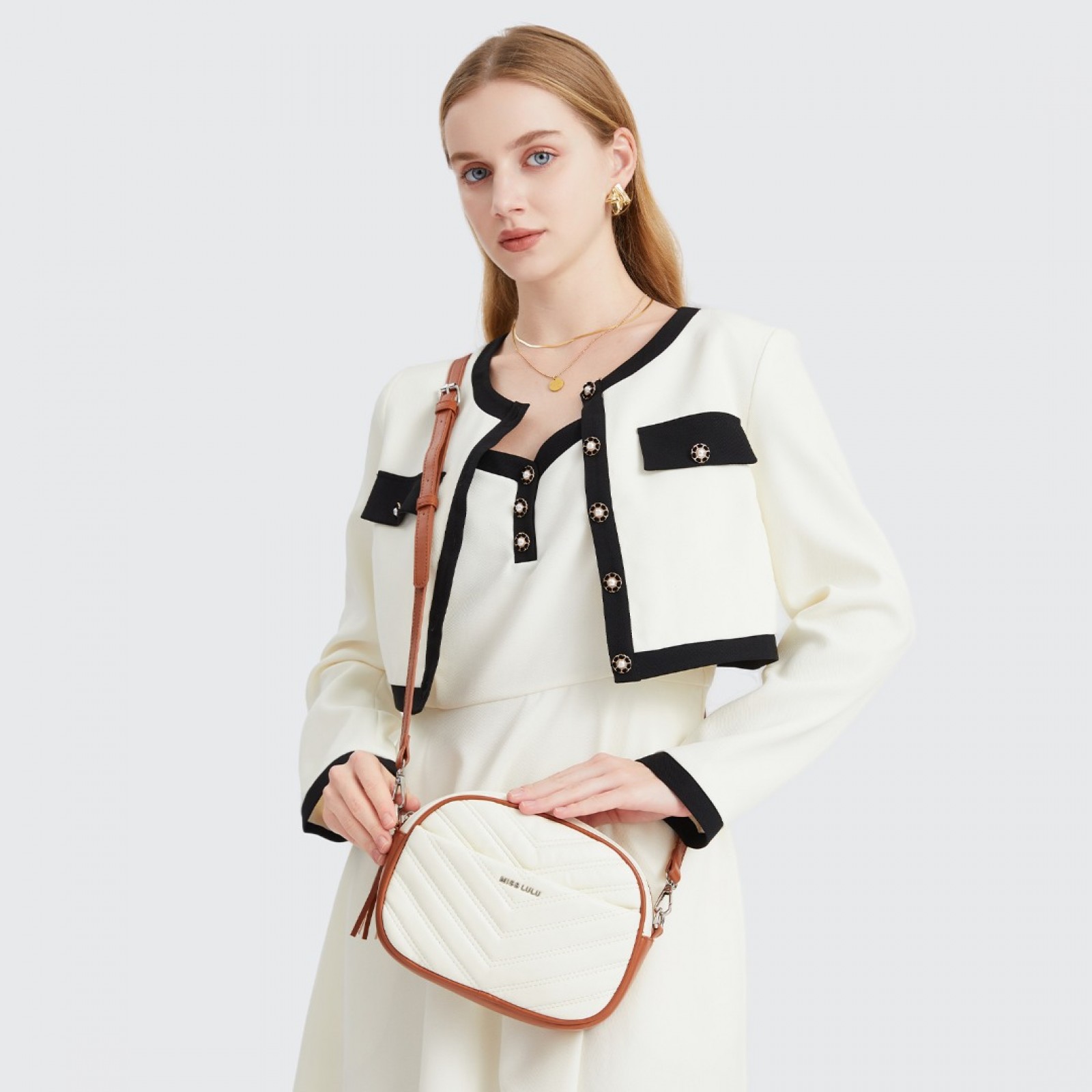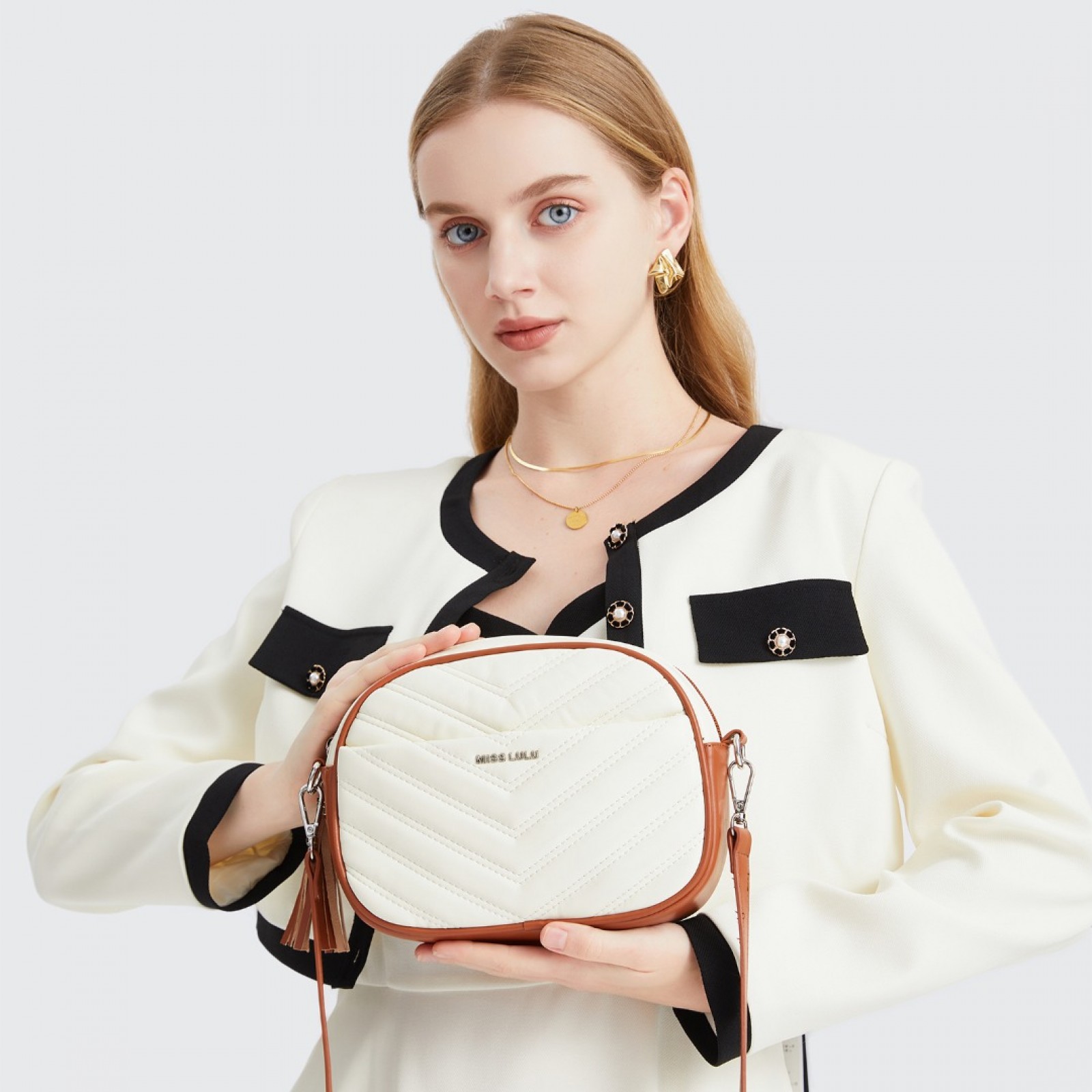 LA2119 - Miss LuLu Lightweight Quilted Leather Cross body Bag - Beige And Brown
