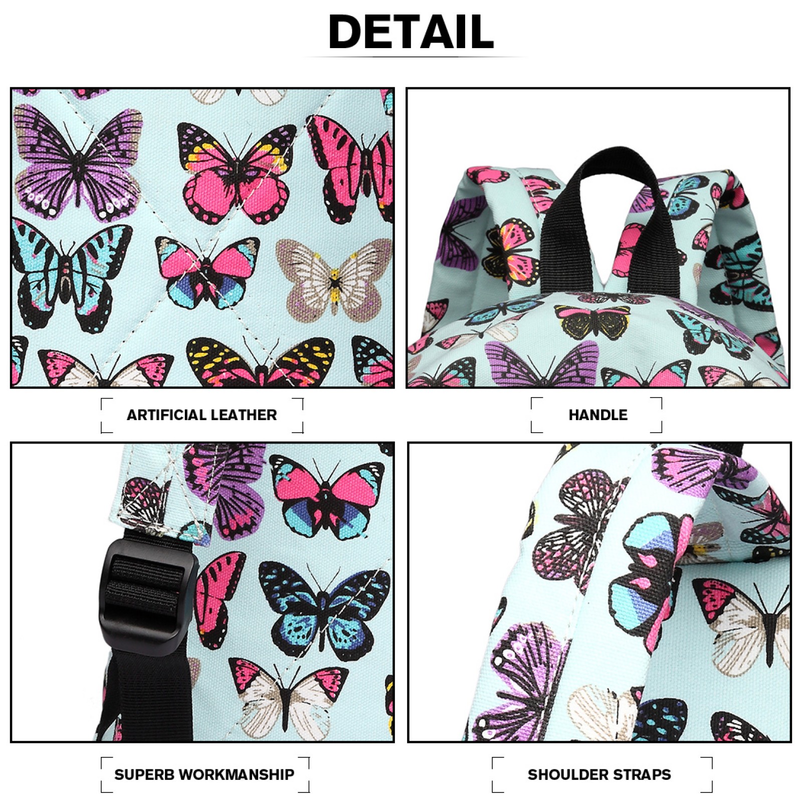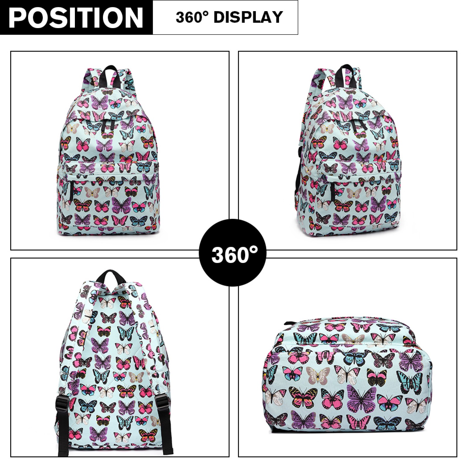 E1401B - Miss Lulu Large Backpack Butterfly Blue