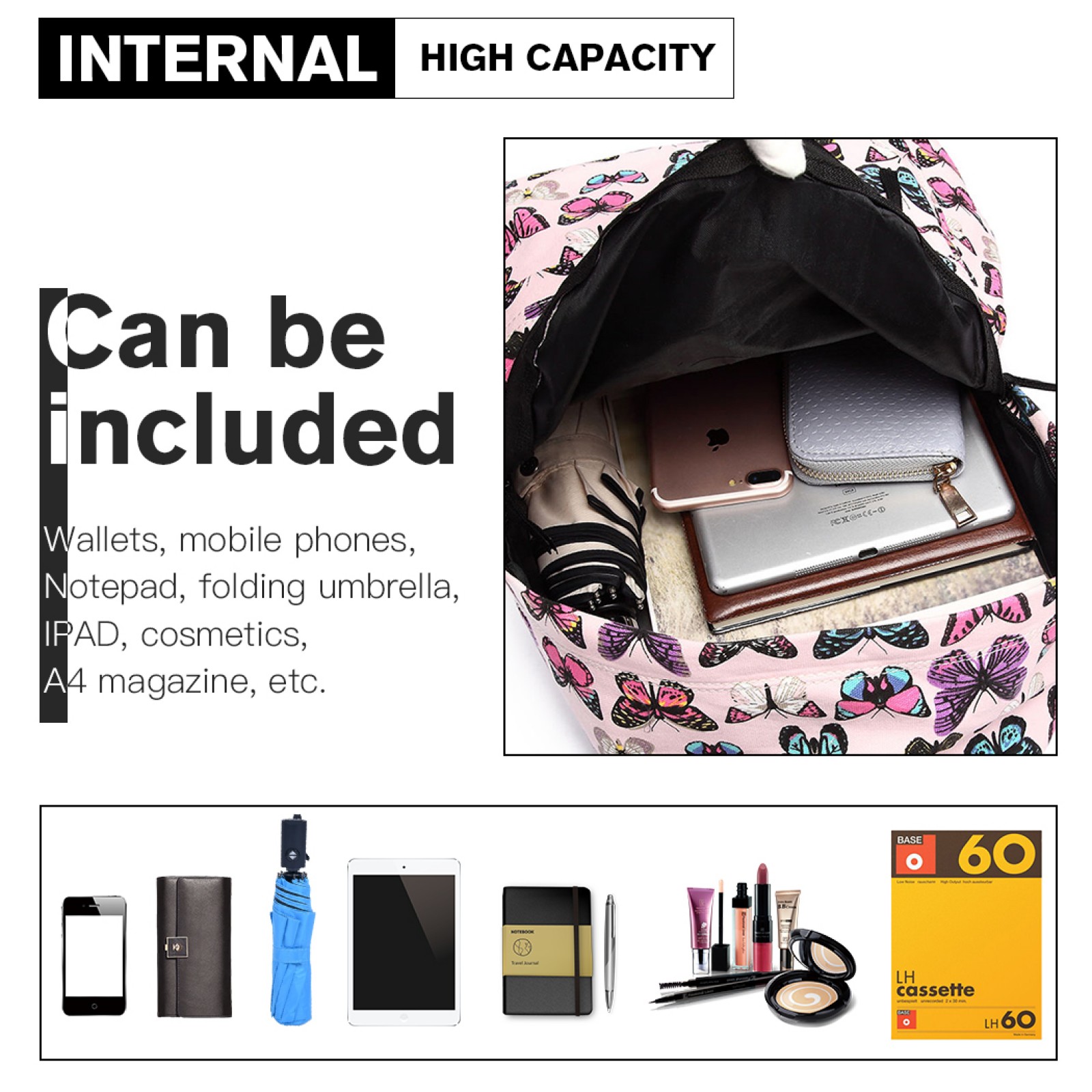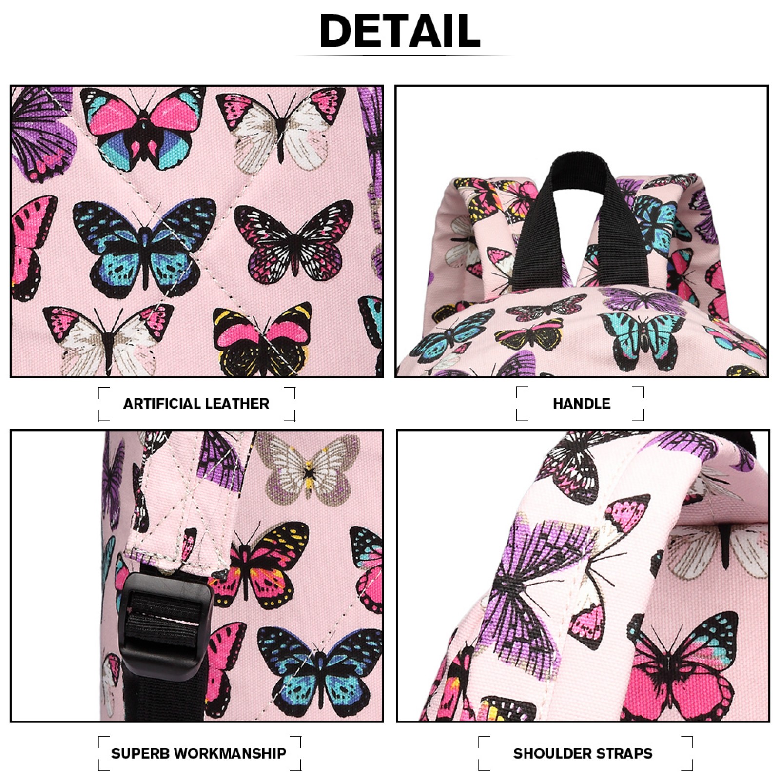 E1401B - Miss Lulu Large Backpack Butterfly Pink