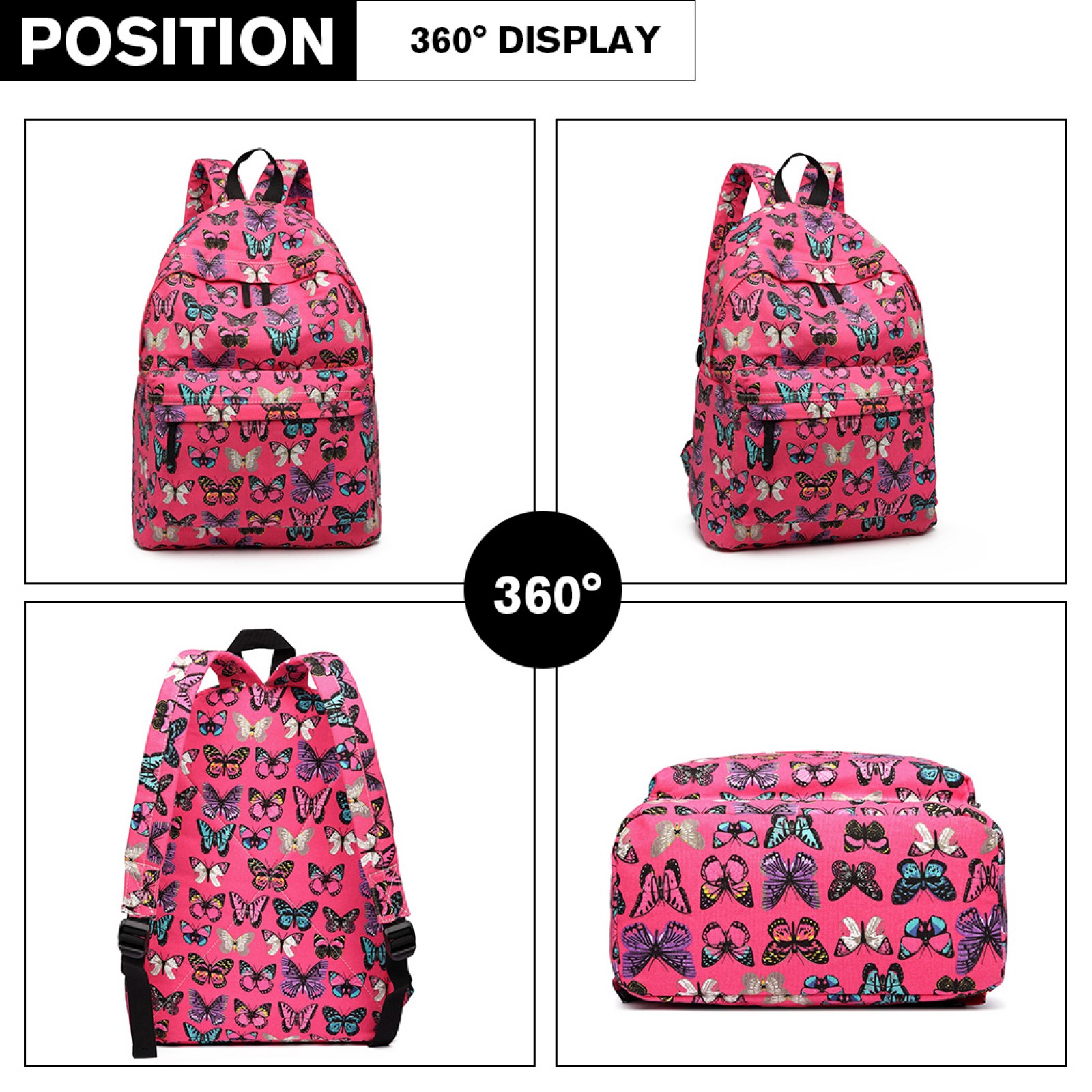 E1401B - Miss Lulu Large Backpack Butterfly Plum